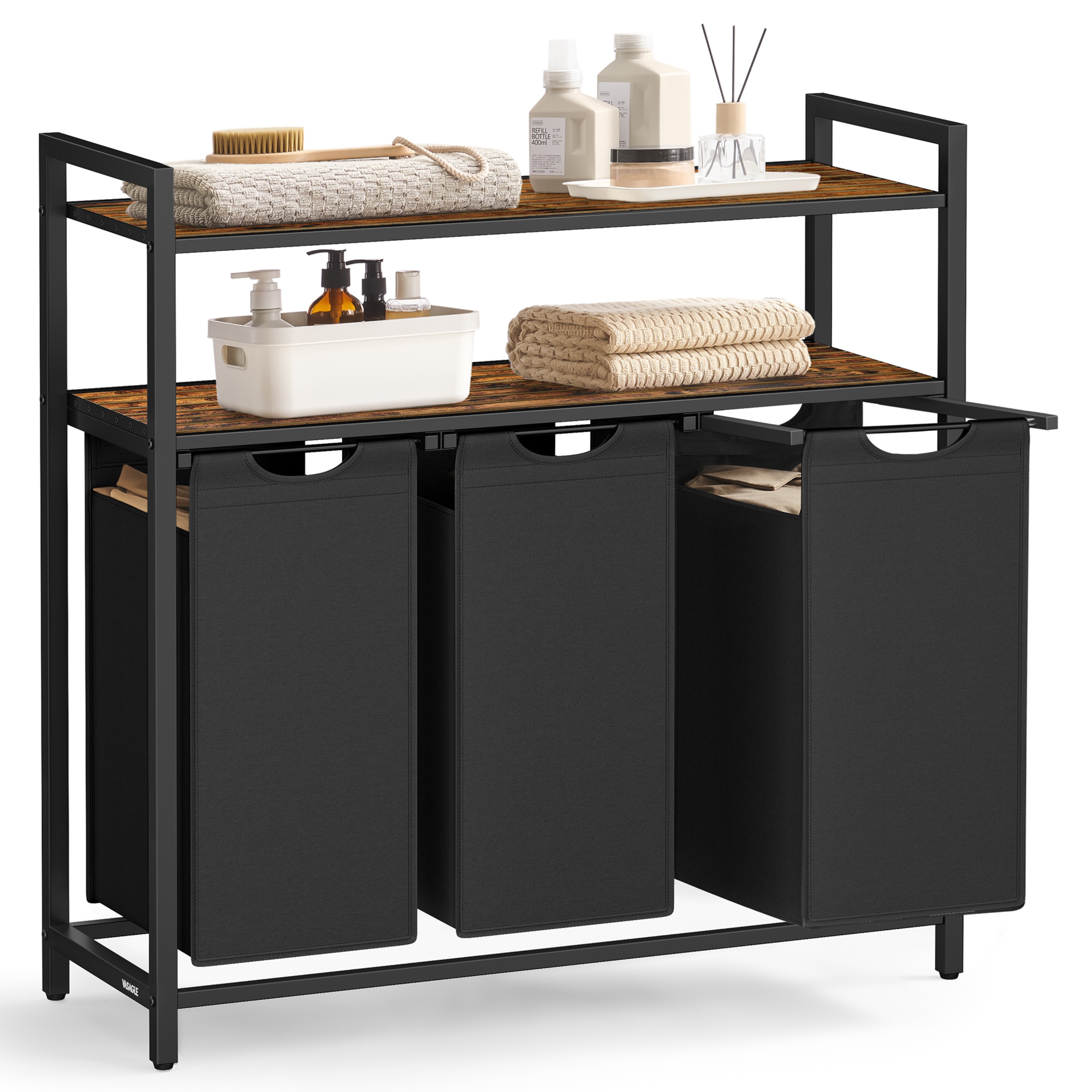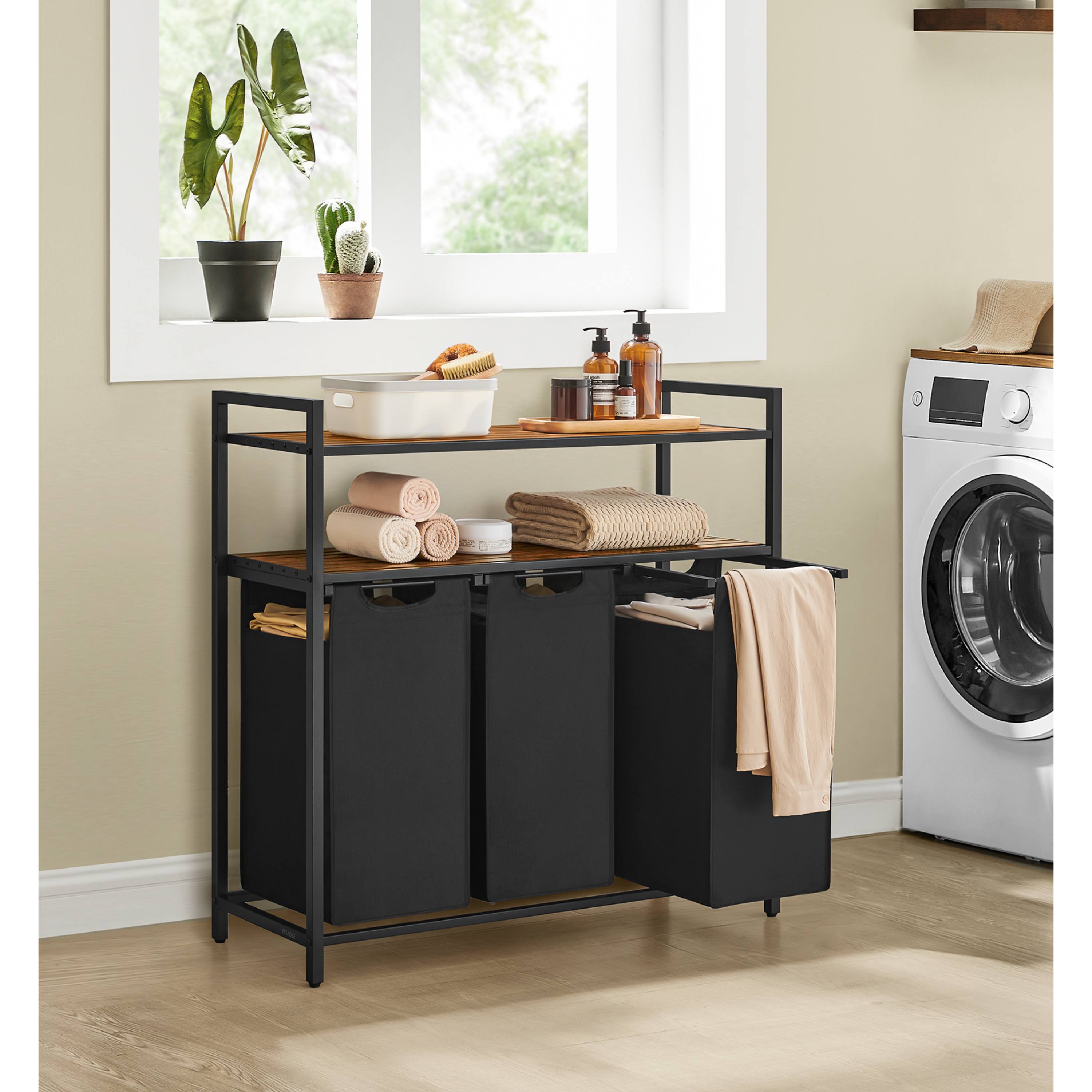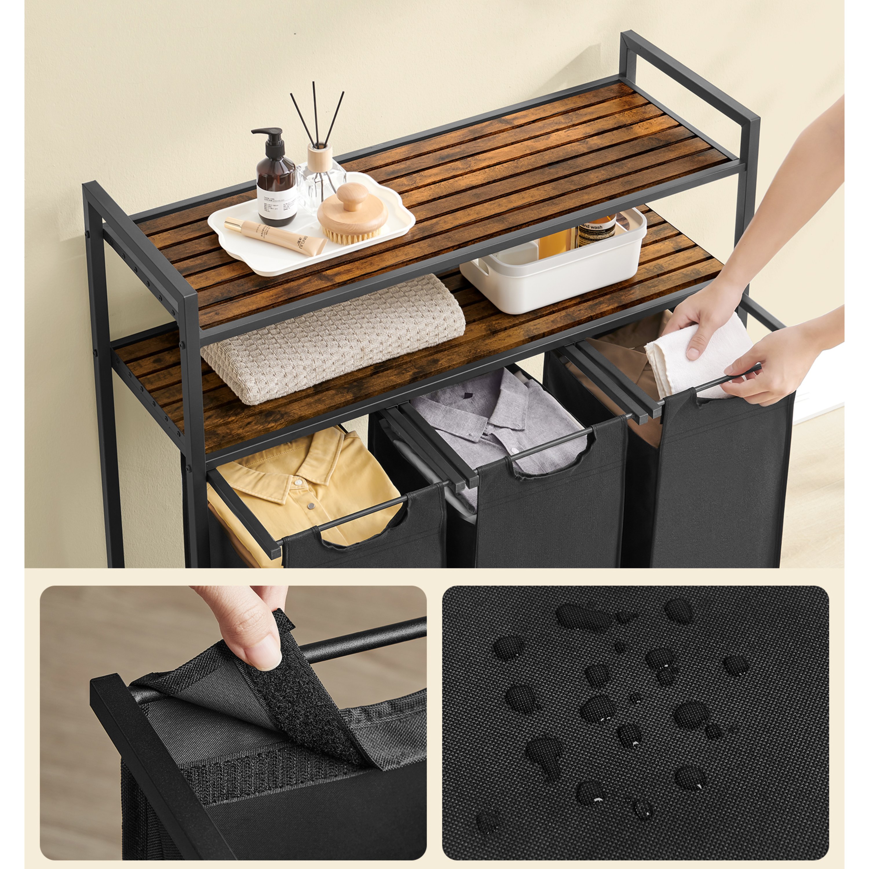 Pevná oceľová konštrukcia zabezpečuje potrebnú stabilitu a nosnosť celého koša. Tri vodeodolné koše, každý s objemom 40 l, sú vybavené plastovým dnom, aby držali tvar aj pri plnom zaťažení. Koše môžete vďaka praktickému suchému zipsu a úchytkám jednoducho odopnúť a odniesť k práčke. Súčasťou konštrukcie je aj horná odkladacia polica s nosnosťou až 20 kg.
