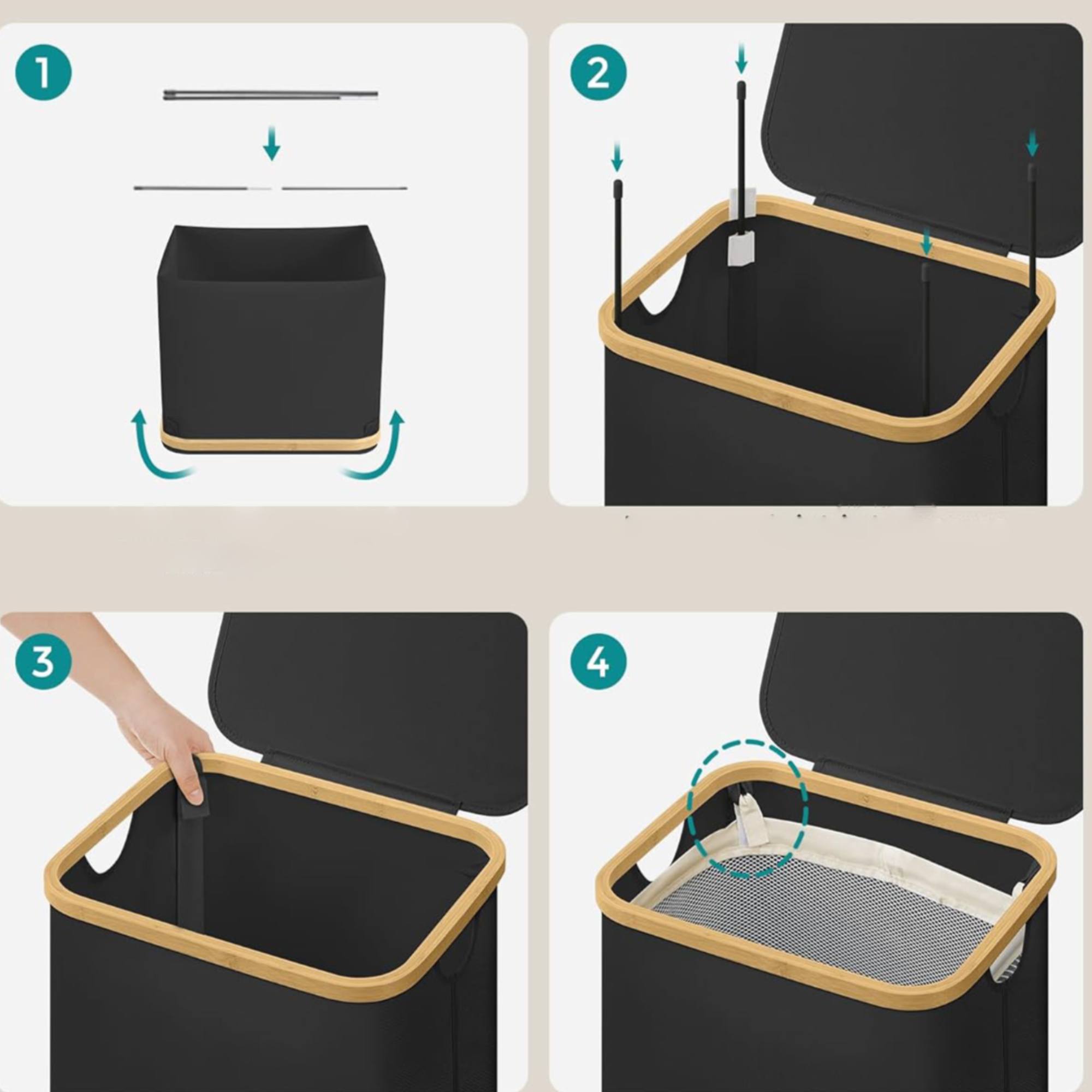 Súčasťou koša je aj sieťované vnútro. To sa dá nielen vybrať a pomocou sťahovacích šnúrok, ktoré poslúžia ako držadlá, pohodlne prenášať, ale môže poslúžiť aj ako prací vak.