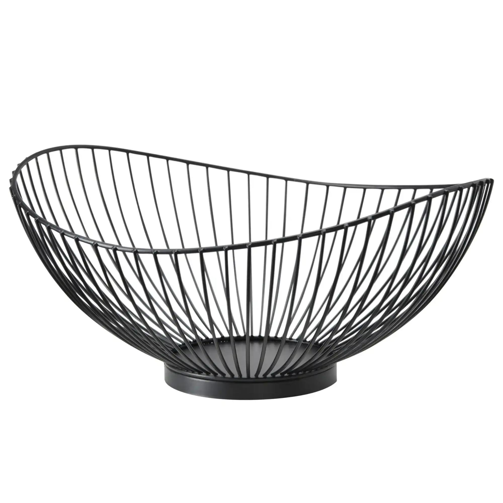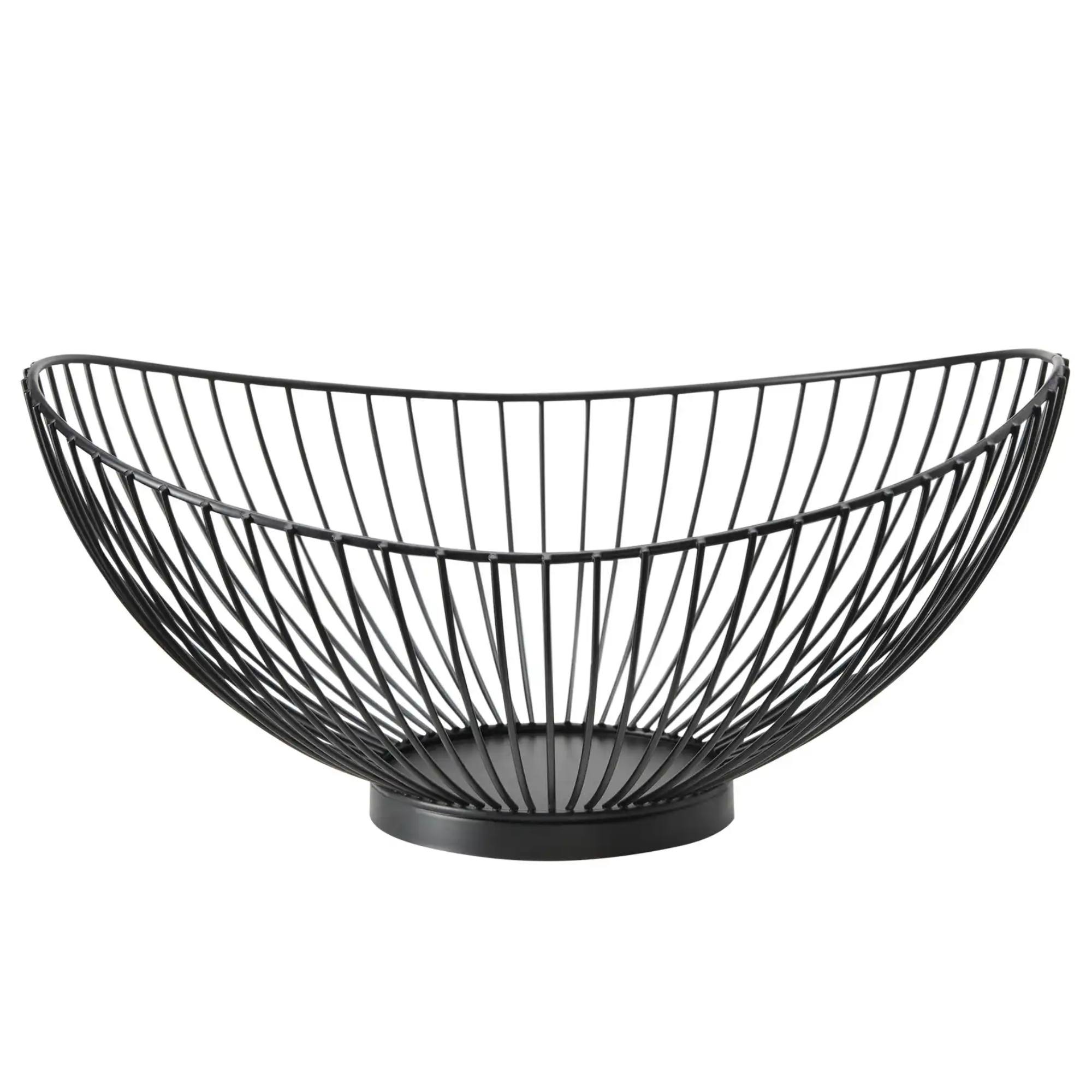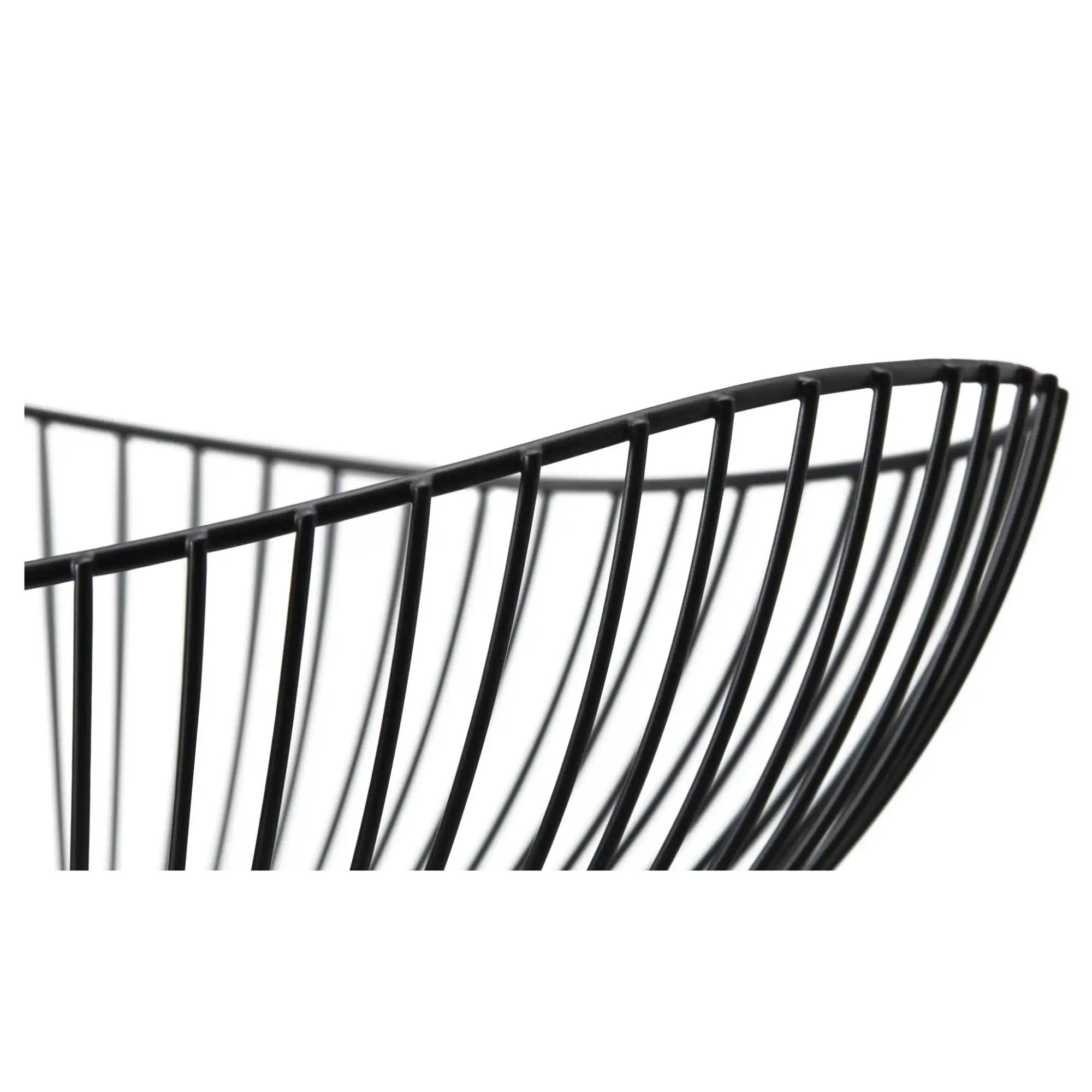 Je vyrobená z čierno lakovaného kovu a tvorená jemnými drôtenými líniami, ktoré jej dodávajú vzdušný a ľahký vzhľad. Mierne asymetrický tvar pôsobí štýlovo a originálne, čím sa misa stáva nielen praktickým, ale aj dekoratívnym doplnkom. Pevná základňa zaisťuje stabilitu na stole, kuchynskej linke a polici.