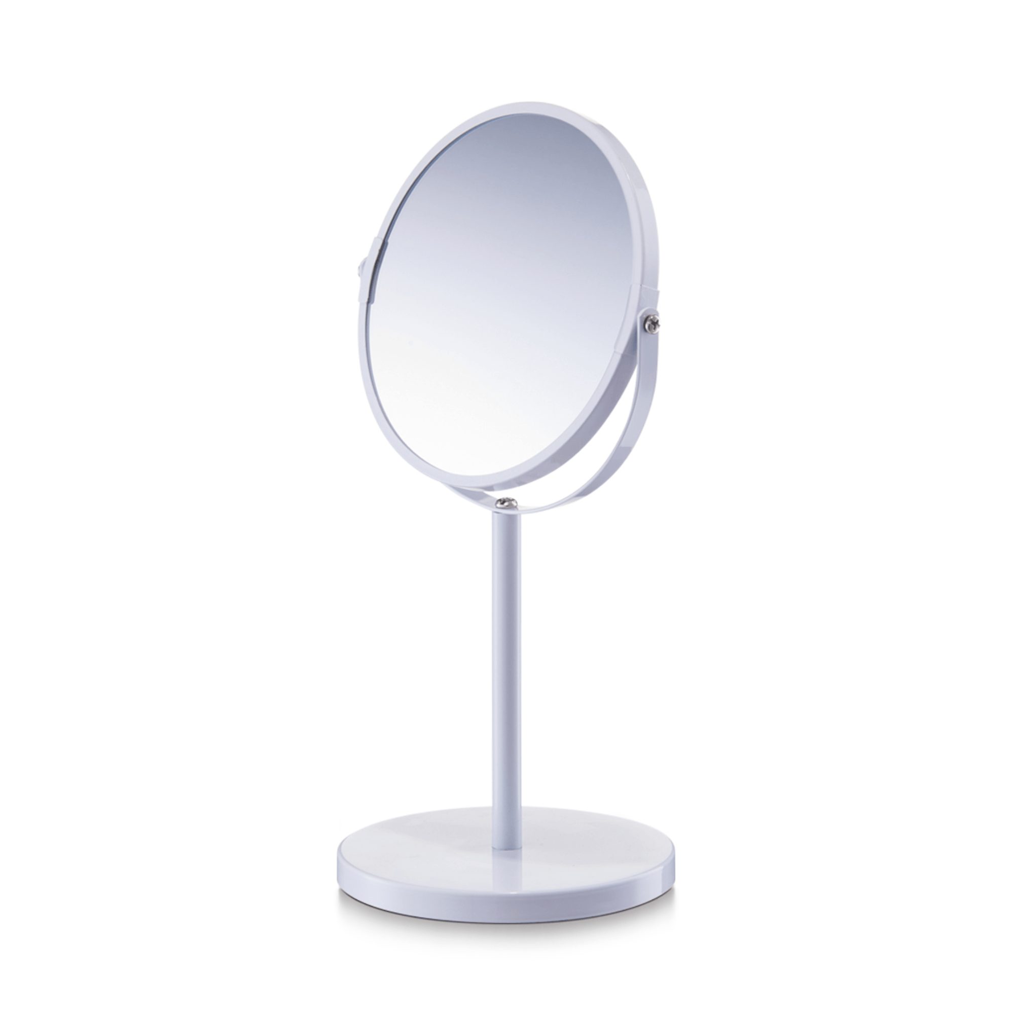 Praktické kozmetické zrkadlo 704 je nevyhnutným pomocníkom do kúpeľní či spální, ktorý vám pomôže udržať bezchybný vzhľad. Vyrobené je z kvalitného pochrómovaného kovu a vybavené otočnou zrkadlovou plochou okrúhleho tvaru. Z jednej strany sa jedná o klasické zrkadlo a druhá strana trojnásobne zväčšuje. To oceníte predovšetkým počas líčenia alebo holenia, kedy potrebujete vidieť najmenšie detaily. Stabilitu a bezpečnosť počas používania zaisťuje pevná okrúhla základňa.