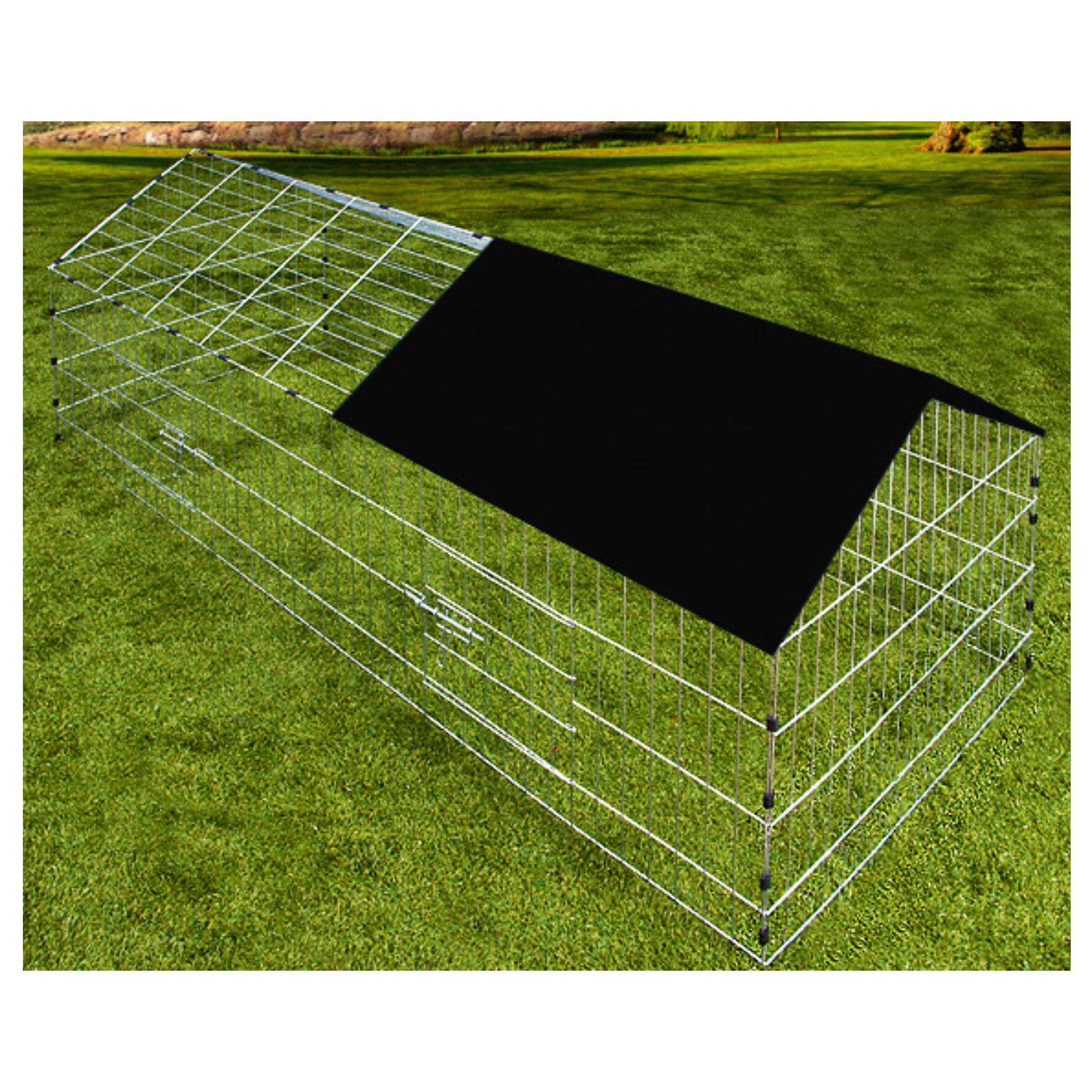 Výbeh má mriežkovanú konštrukciu z pozinkovanej ocele, ktorá zaručuje dlhšiu životnosť a stabilitu pri vonkajšom používaní. S rozmerom 75x180 cm ponúka dostatok priestoru na zábavu aj oddych. Konštrukcia je vybavená 2 dvierkami s bezpečným uzáverom a odnímateľnou ochranou proti slnku, ktorú možno jednoducho premiestniť podľa potreby.