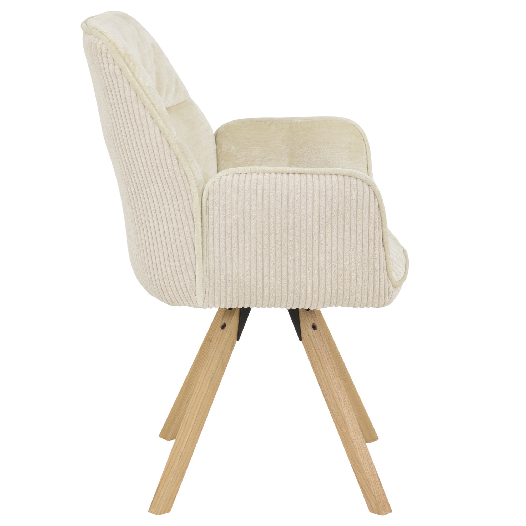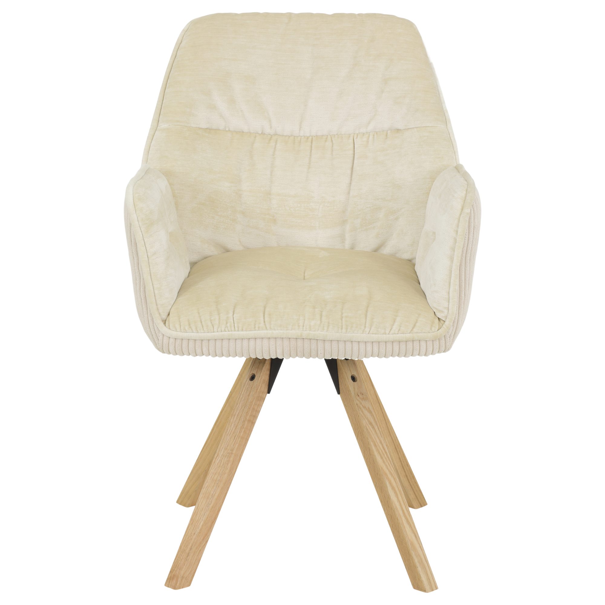 Potiahnuté je hladkou tkaninou zamatového a menčestrového vzhľadu zo 100% polyesteru, ktorá vytvára na dotyk príjemný povrch. Celú konštrukciu podopierajú vysoké nohy z masívneho dreva s otočnou funkciou až o 270 °.