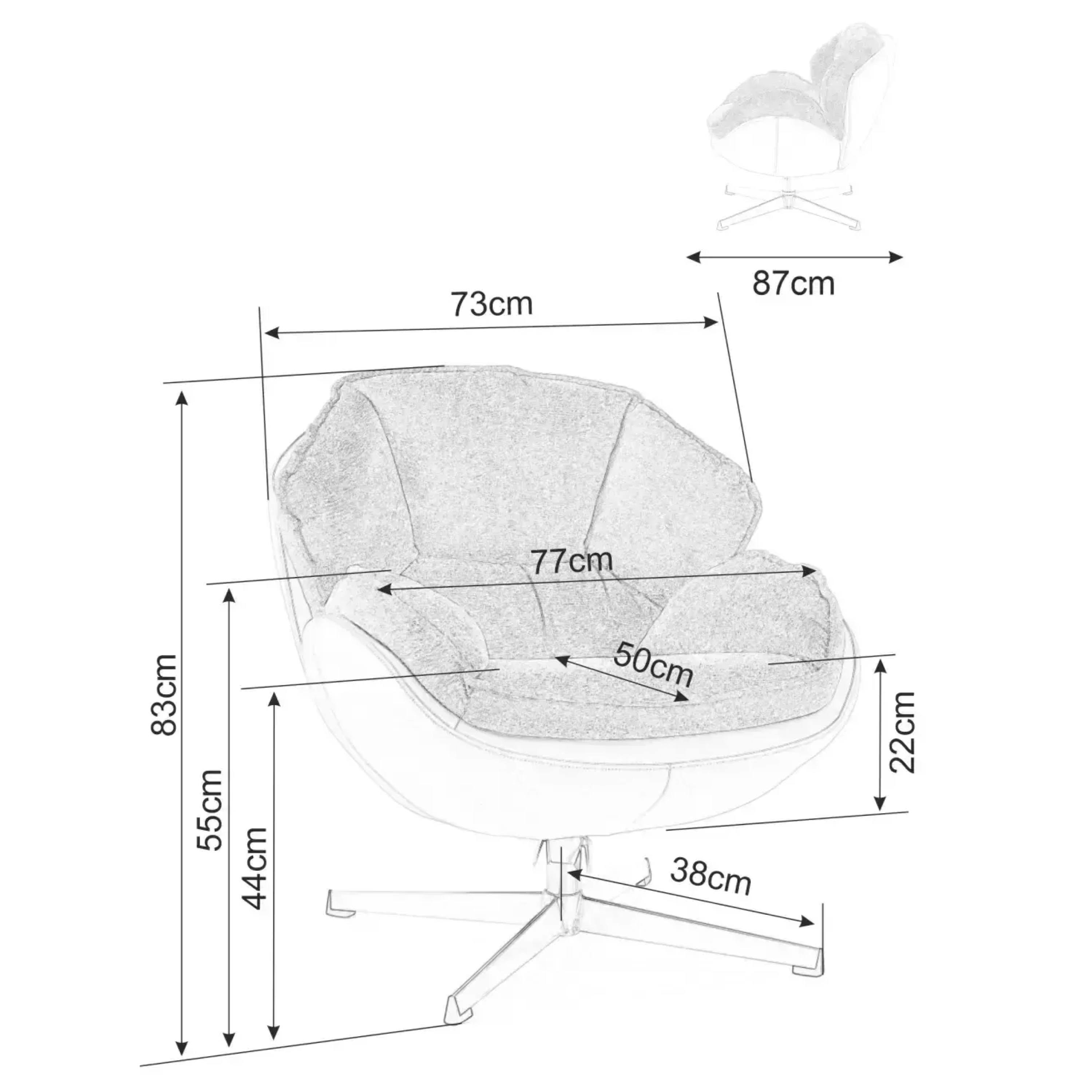Penové jadro, výrazné prešívanie a poťah príjemný na dotyk poskytnú zázemie na relaxáciu. Konštrukcia z kovu zaistí stabilitu a je navyše otočná, takže si kreslo môžete natočiť podľa potreby. Kreslo je celočalúnené a vy ho tak môžete bez problémov postaviť aj voľne do priestoru.