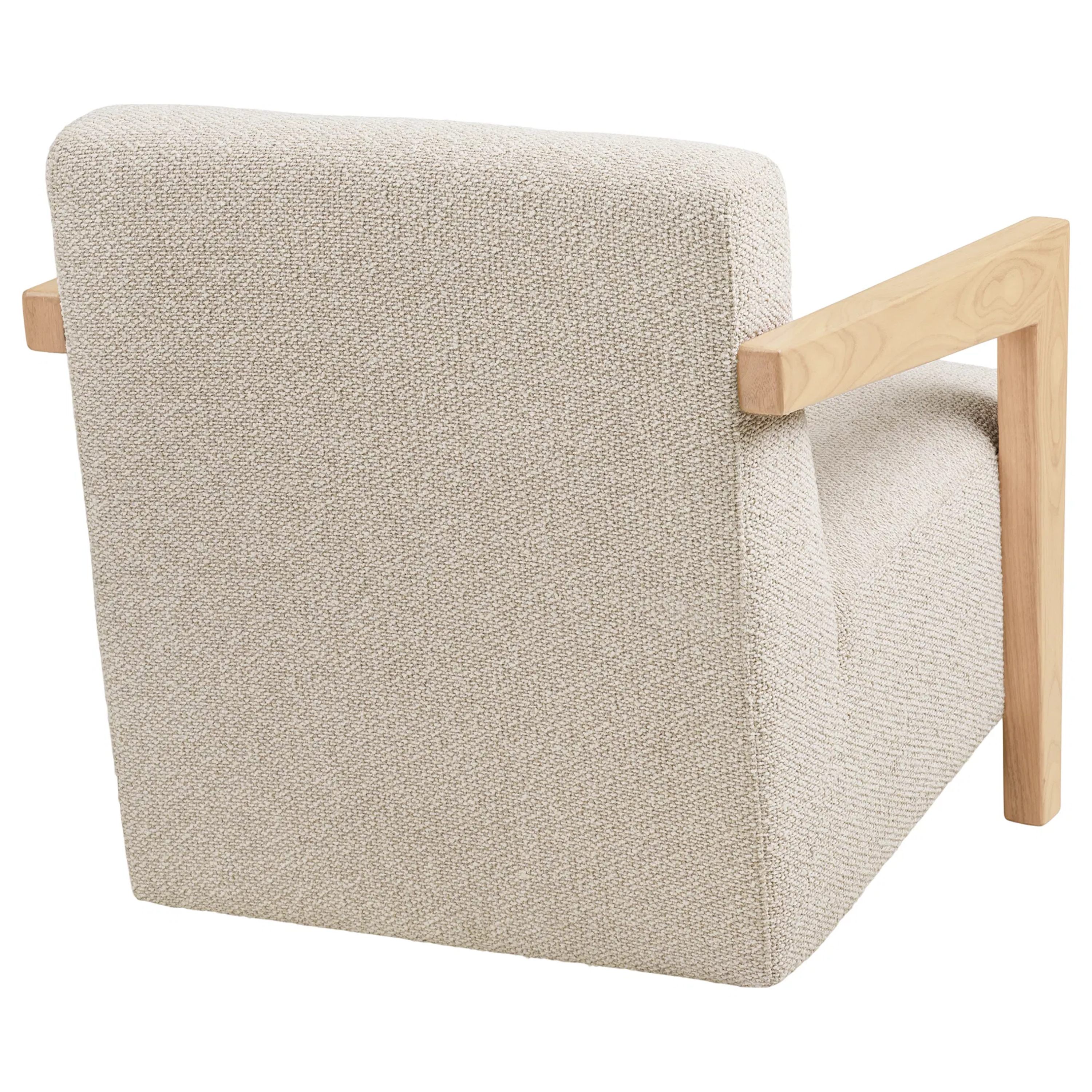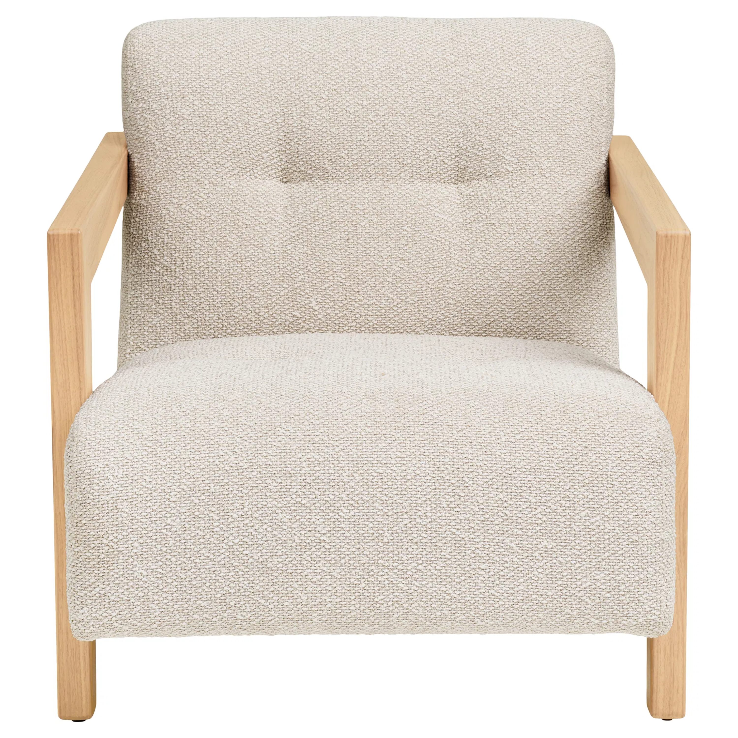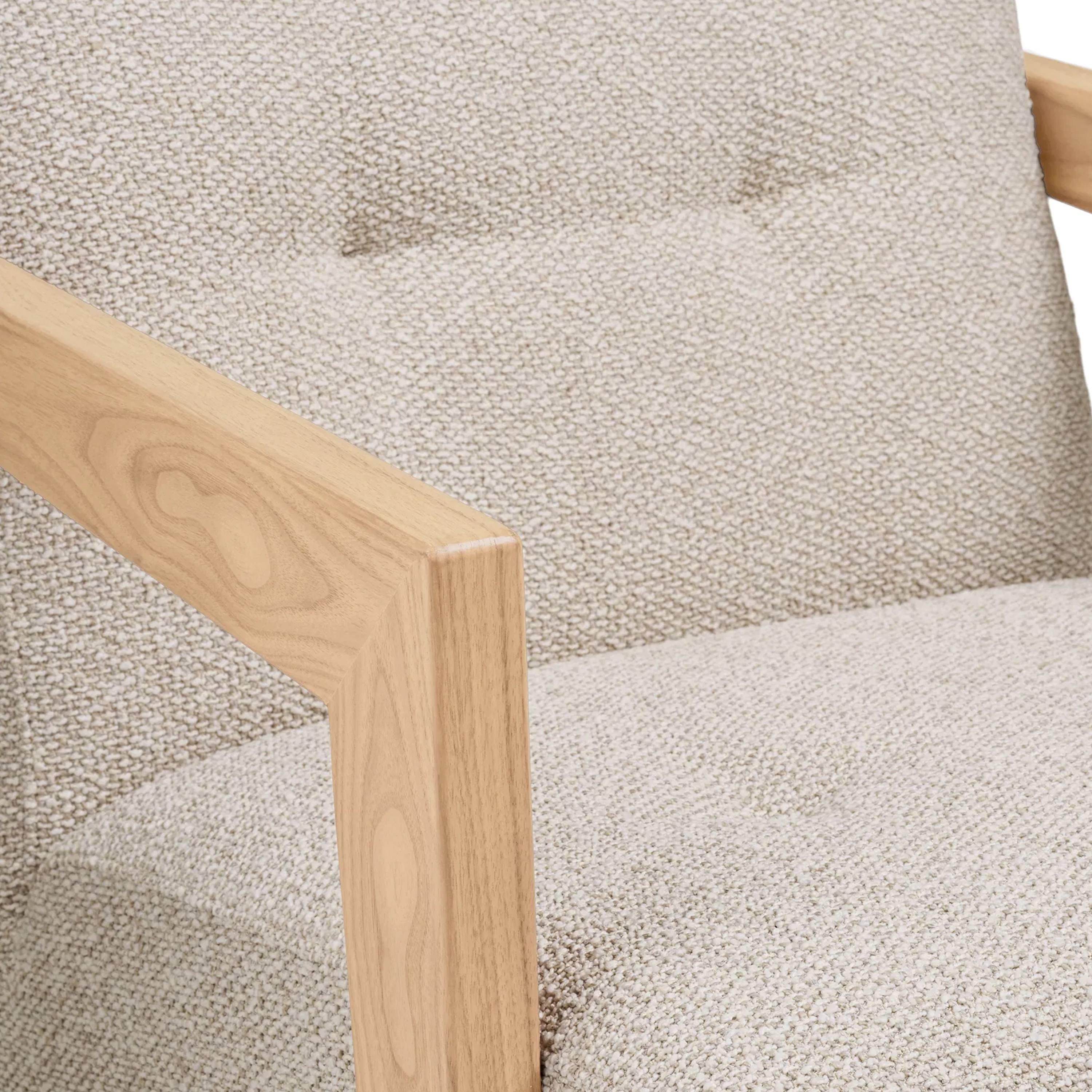 Konštrukcia je potiahnutá hladkou tkaninou v béžovej farbe, ktorá vytvára na dotyk príjemný povrch. Celočalúnené prevedenie je vhodné aj na umiestnenie do voľného priestoru. Zaoblené tvary a penové jadro zaručia komfortné sedenie. Celú konštrukciu podopierajú nohy z masívneho dreva, ktoré dotvárajú celkový elegantný vzhľad. Oceníte ich aj z praktického hľadiska, pretože umožňujú jednoduché upratovanie pod kreslom.