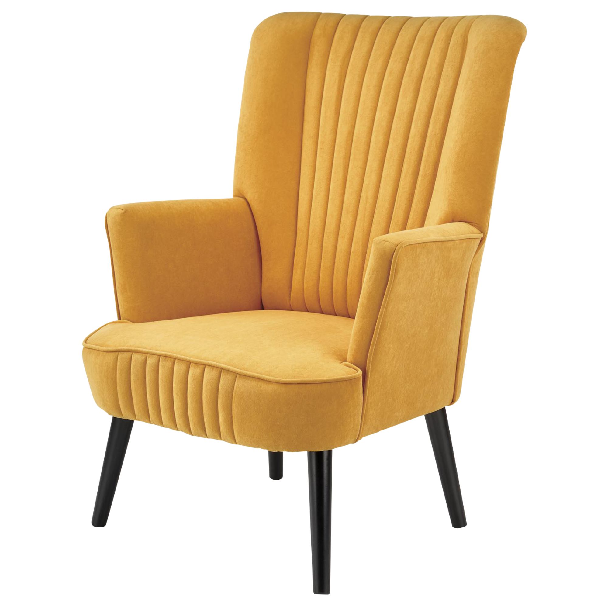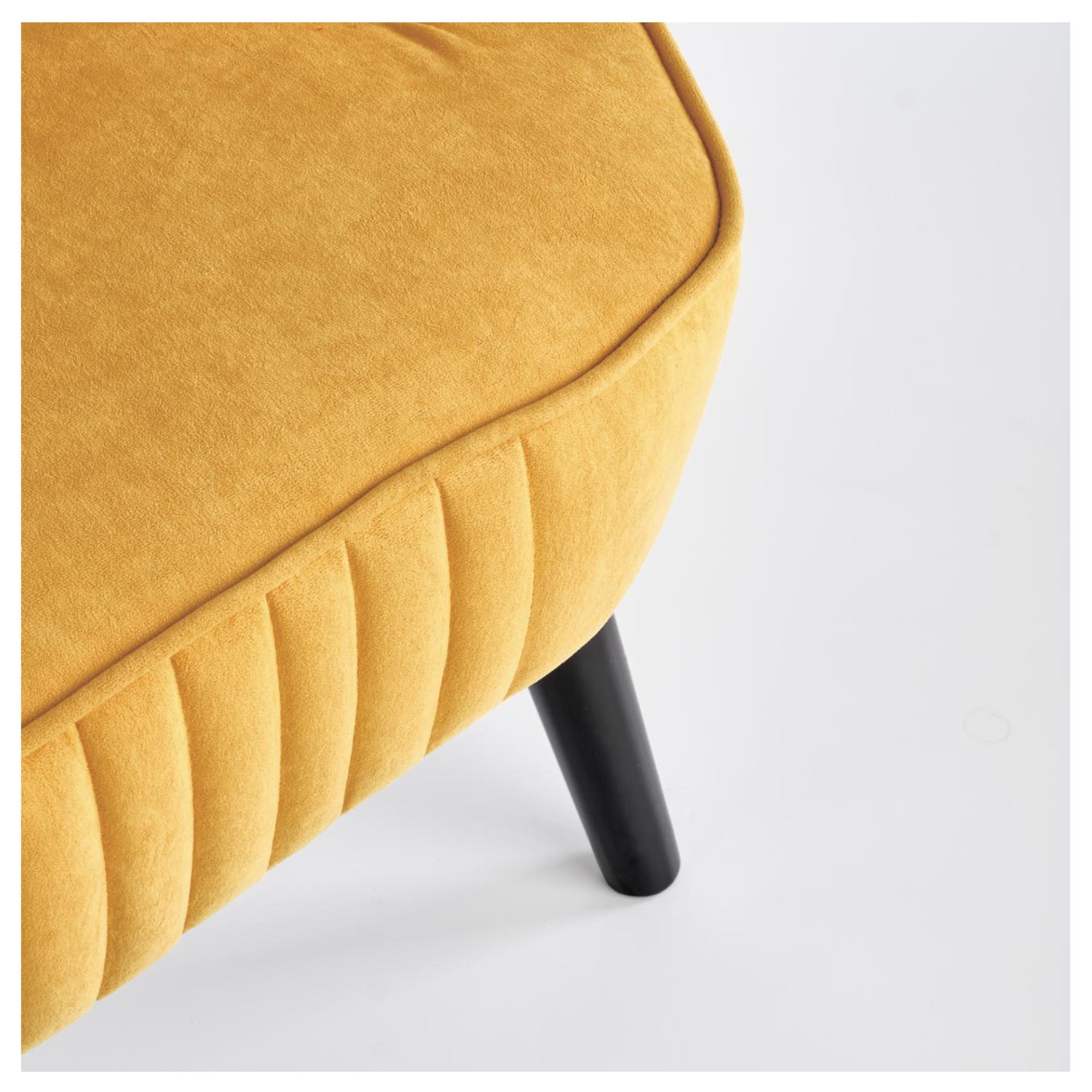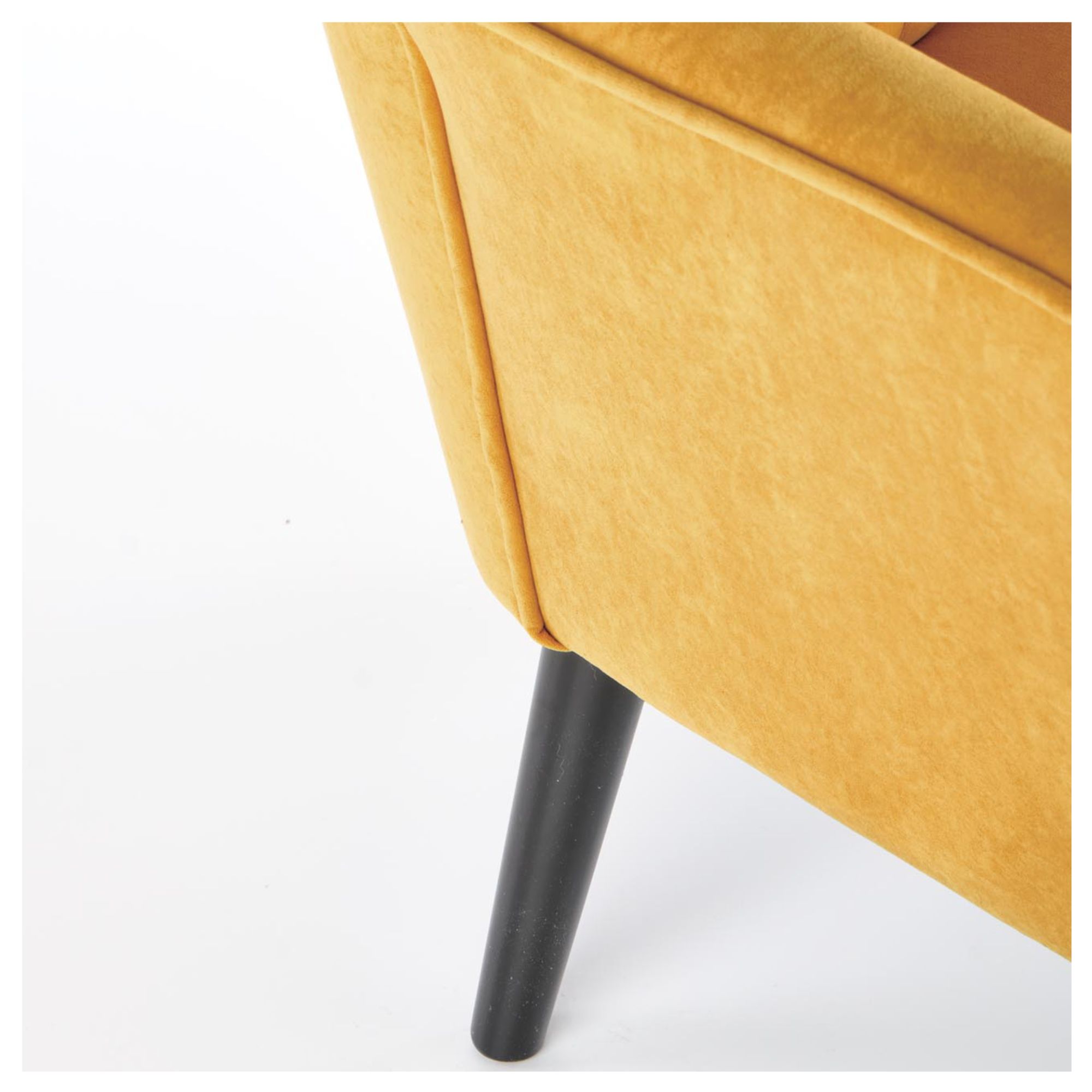 Konštrukcia je čalúnená hladkou tkaninou zamatového vzhľadu, ktorá je veľmi príjemná na dotyk. Vďaka komfortnému sedadlu s penovou výplňou, zaobleným podrúčkam a vysokému chrbtovému operadlu si môžete dopriať zaslúžený odpočinok. Chrbát je z prednej strany ozdobený výrazným prešívaním, ktoré vytvára elegantný vzhľad. Celú konštrukciu podopierajú vysoké nohy z masívneho dreva dodávajúce kreslu potrebnú stabilitu.