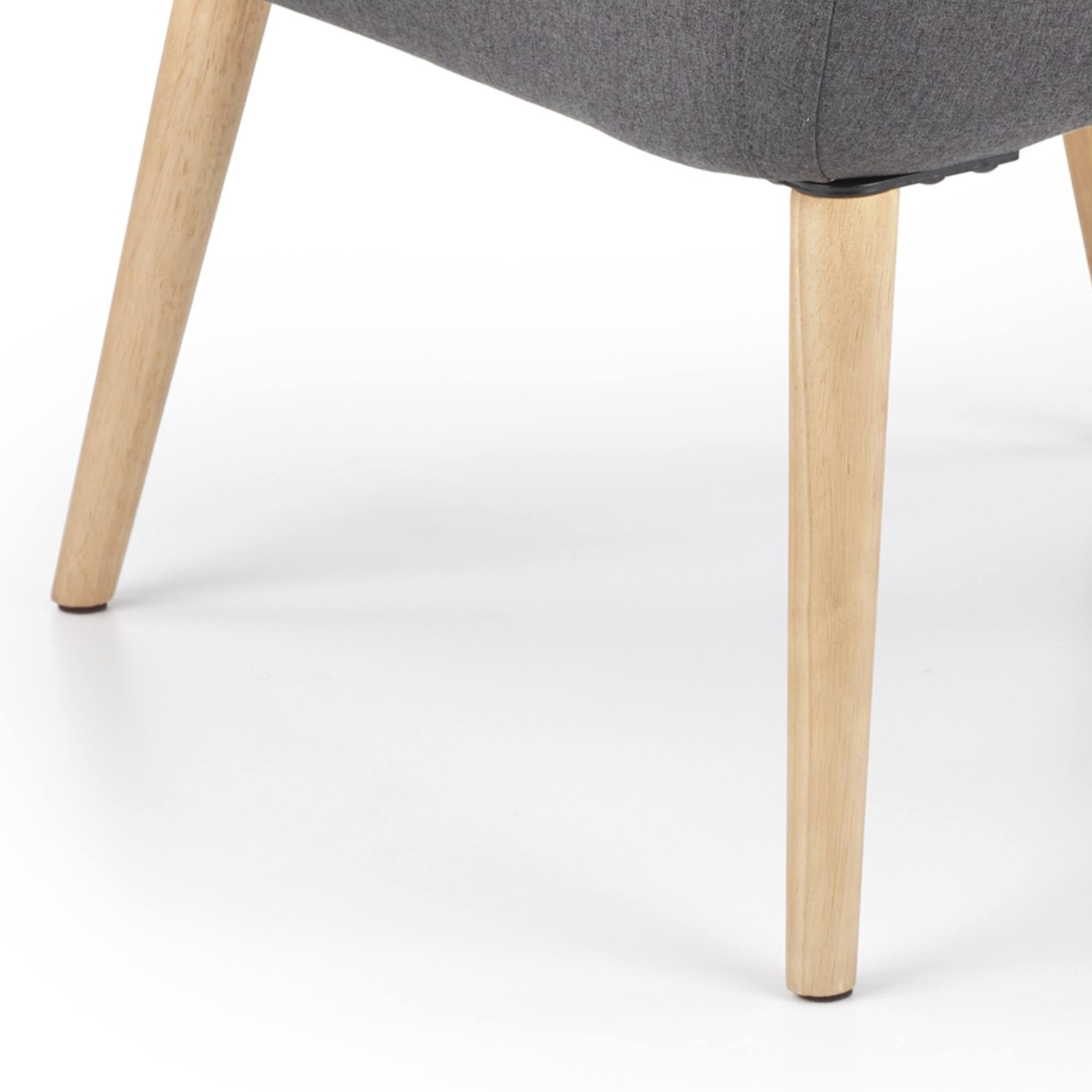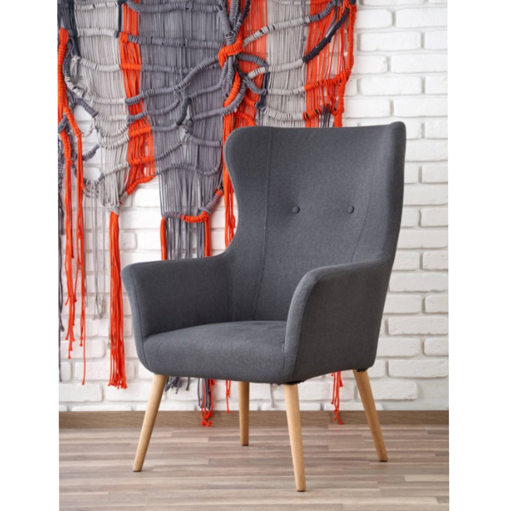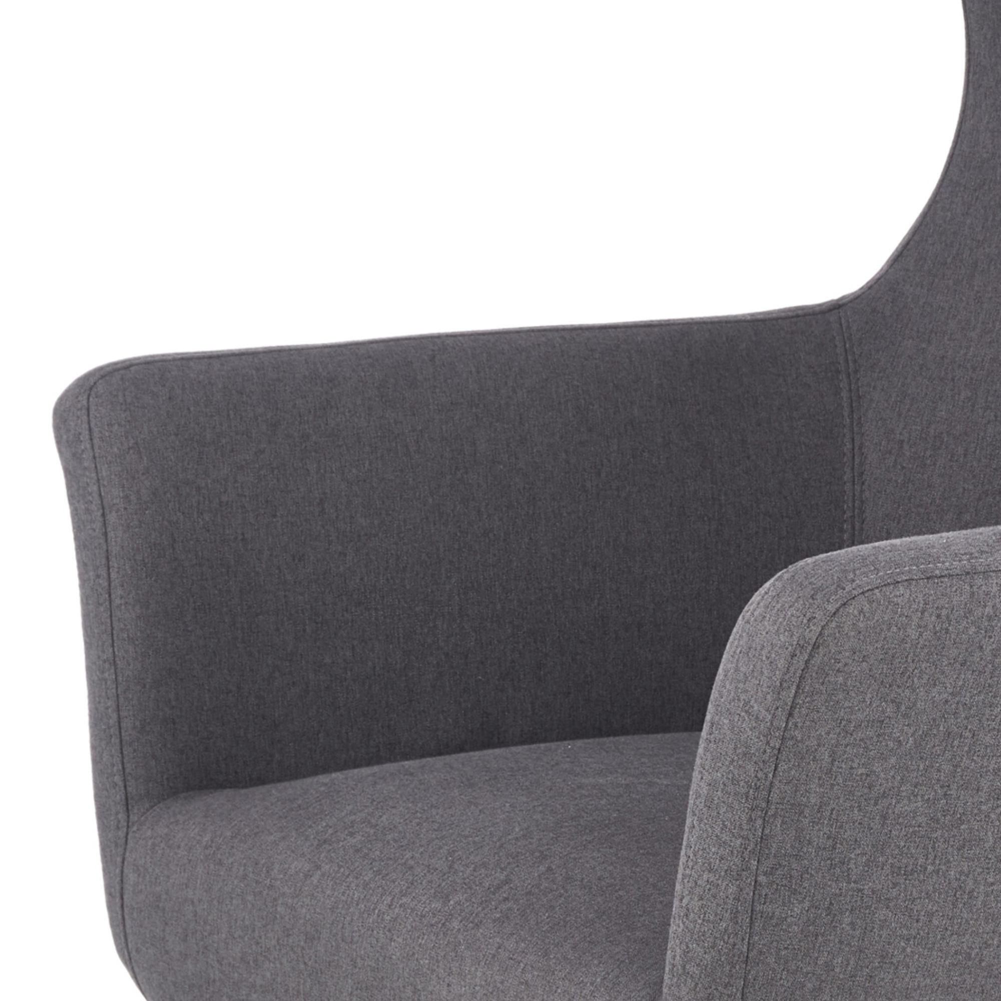 Sedadlo s penovým jadrom spolu s operadlom sú potiahnuté hladkou látkou príjemnou na dotyk. Zaoblené tvary kresla, vysoká zadná opierka priamo zvádza k relaxácii a vy sa budete v kresle cítiť kráľovsky. Nôžky z masívneho kaučuka zdôrazňujú elegantný vzhľad kresla a zaistia jeho stabilitu.