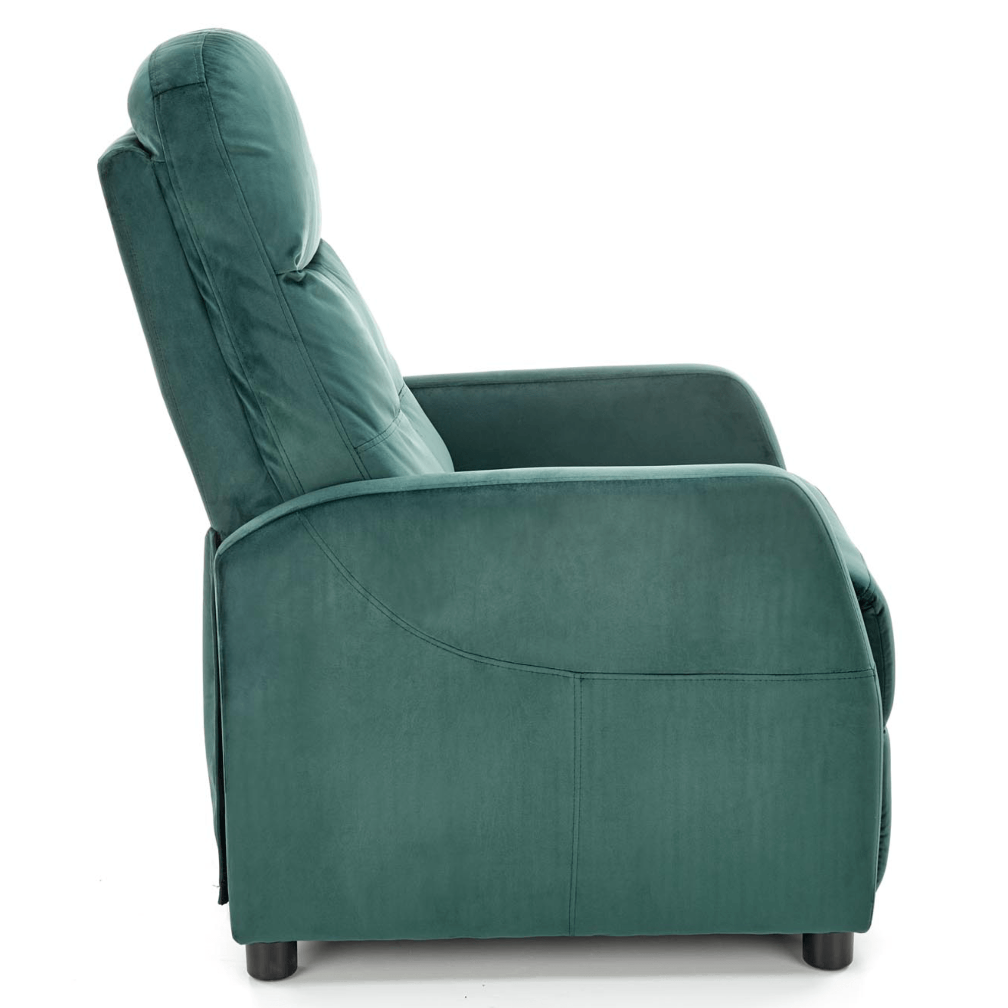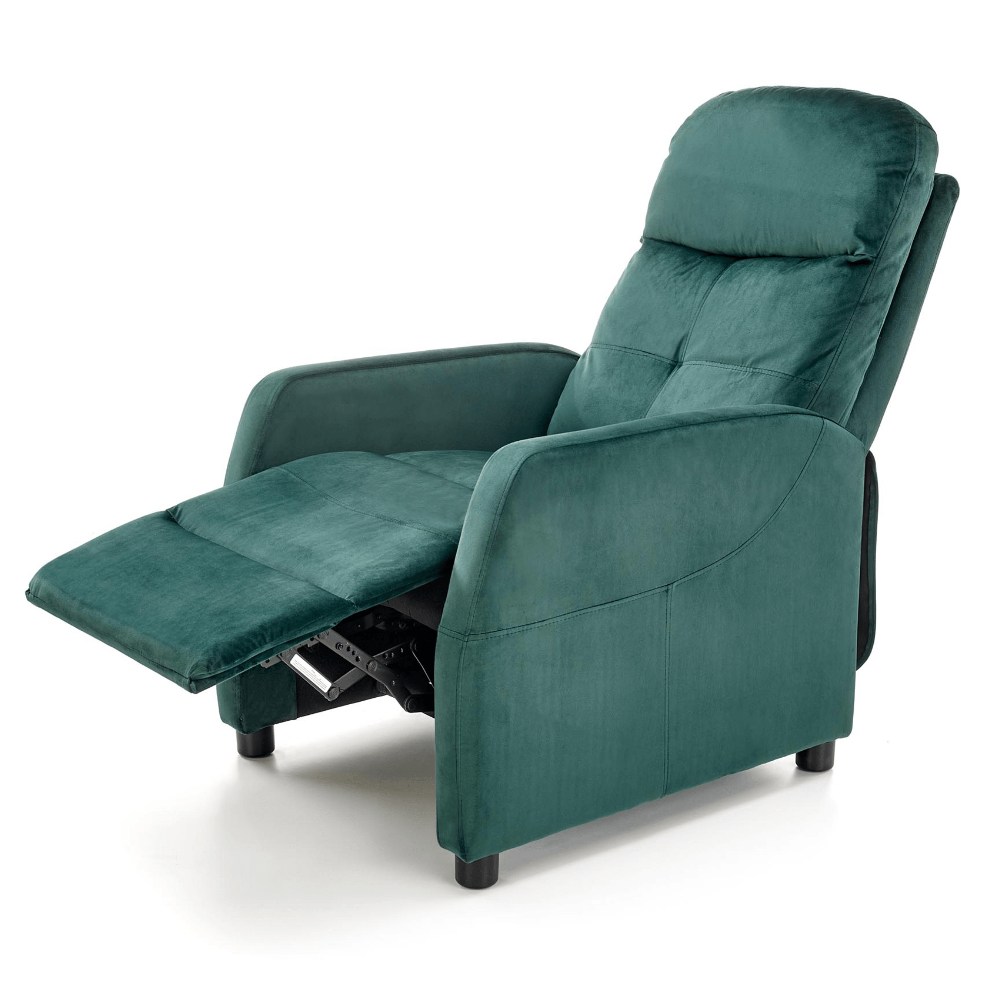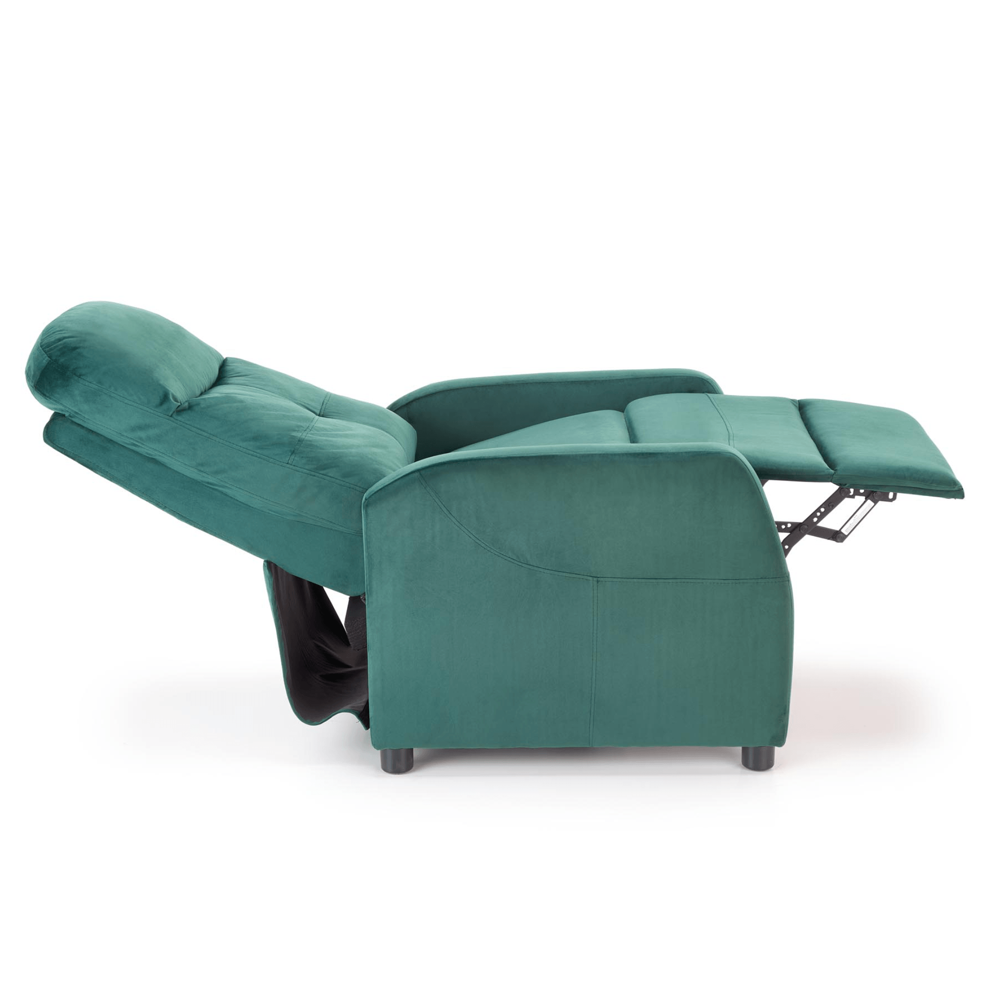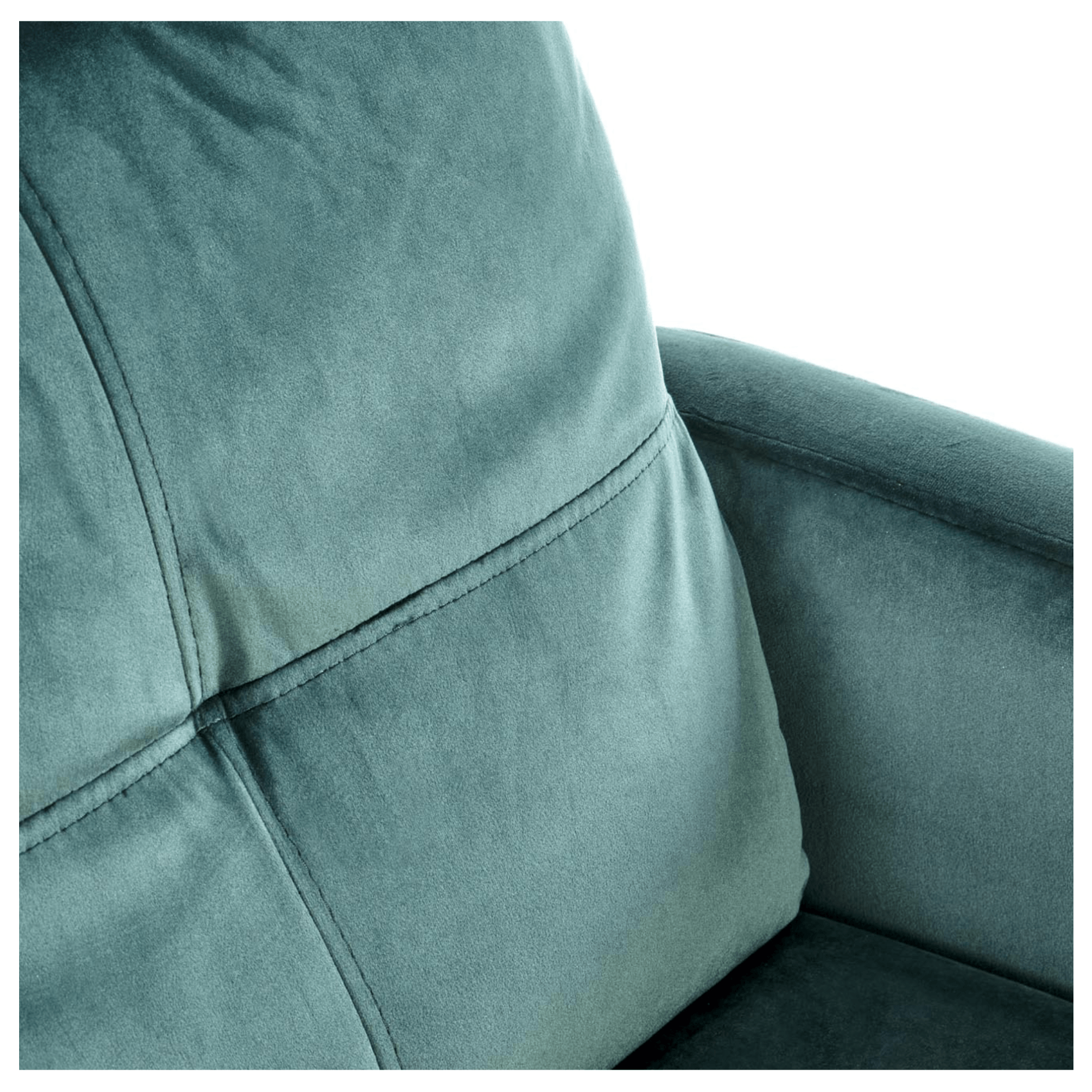 Konštrukcia je potiahnutá hladkou, na dotyk príjemnou poťahovou tkaninou zamatového vzhľadu. O maximálne pohodlie sa postará výraznejšie čalúnenie sedadla a chrbtového operadla. Pomocou jednoduchého manuálneho ovládania môžete zmeniť uhol naklopenia a premeniť tak kreslo na pohodlnú leňošku. S maximálnou hĺbkou 135 cm a podloženými nohami si doprajete ten najvyšší komfort. Kreslo je čalúnené zo zadnej strany tou istou poťahovou látkou ako zvyšok konštrukcie. Môžete ho tak bez problémov postaviť voľne do priestoru.
