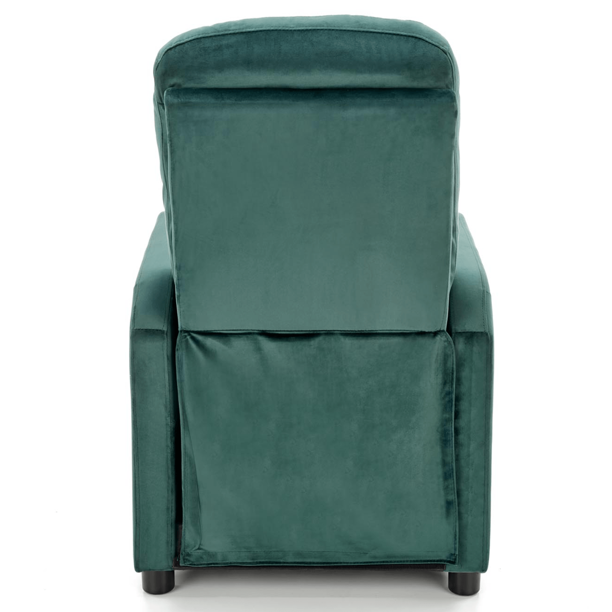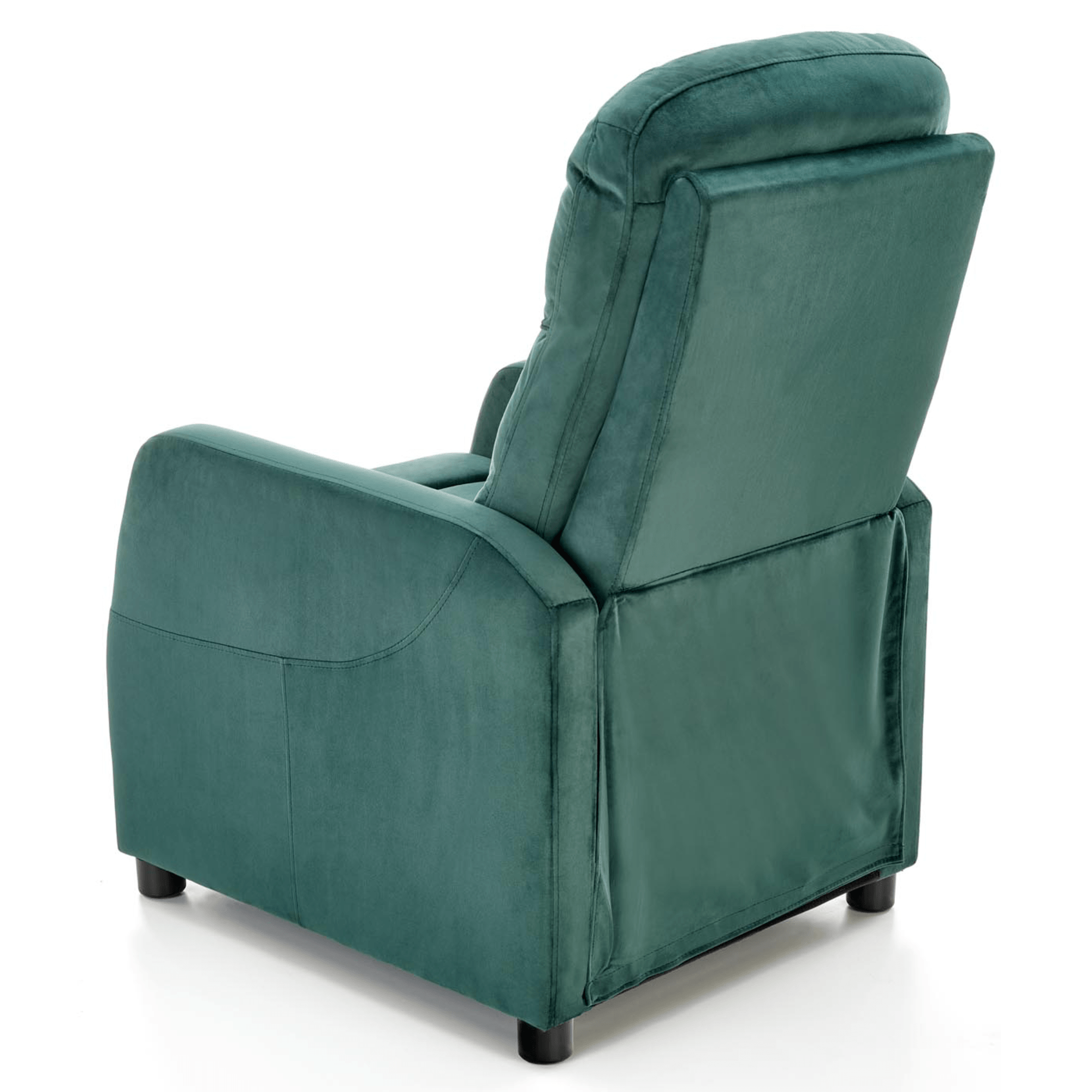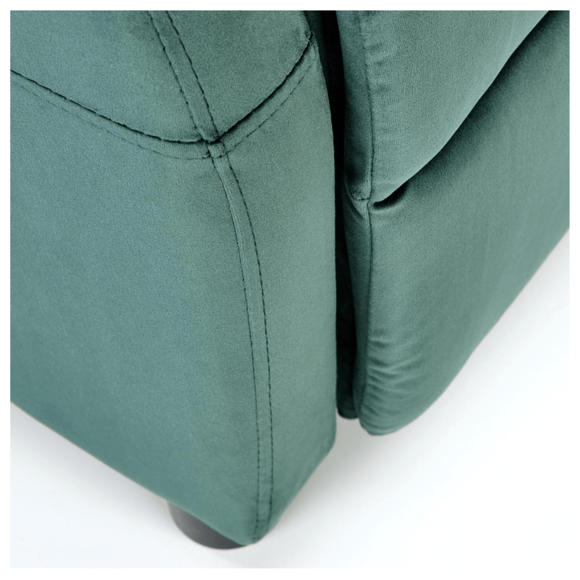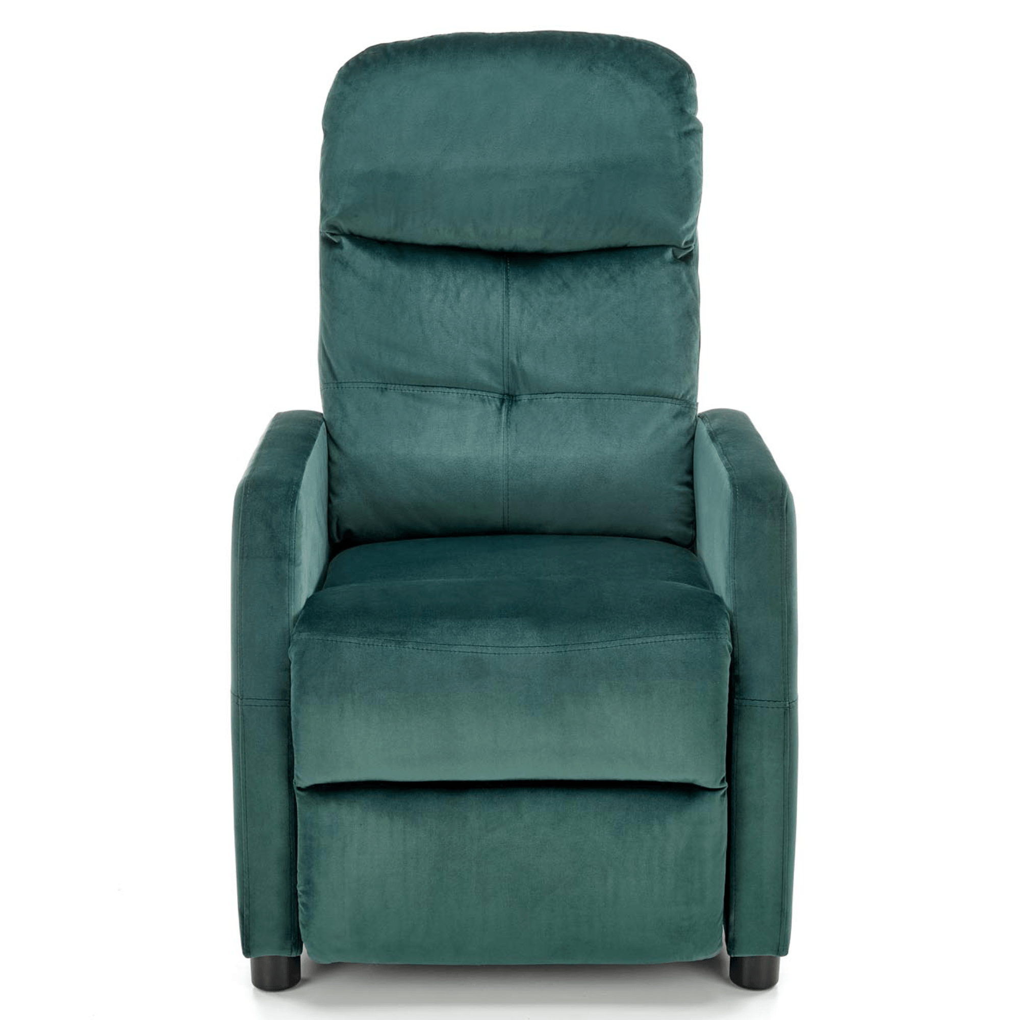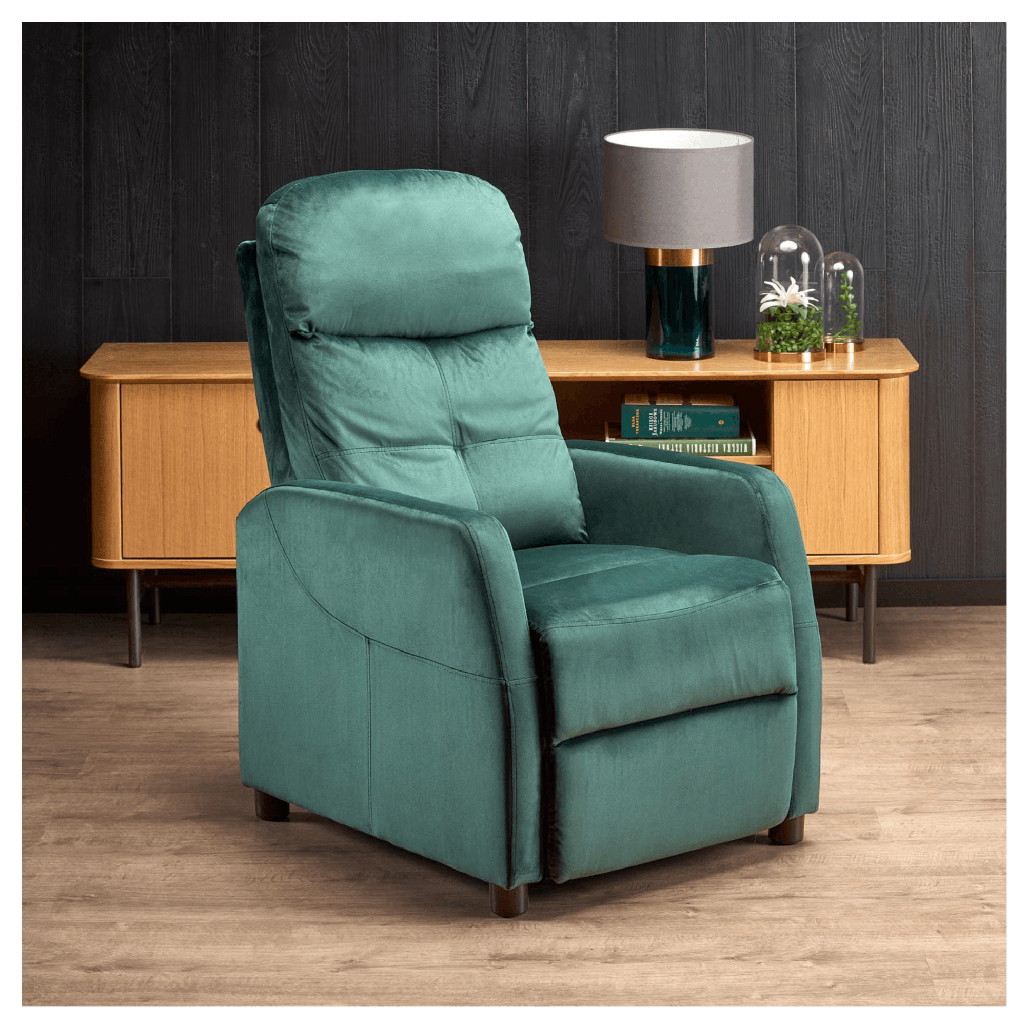 Konštrukcia je potiahnutá hladkou, na dotyk príjemnou poťahovou tkaninou zamatového vzhľadu. O maximálne pohodlie sa postará výraznejšie čalúnenie sedadla a chrbtového operadla. Pomocou jednoduchého manuálneho ovládania môžete zmeniť uhol naklopenia a premeniť tak kreslo na pohodlnú leňošku. S maximálnou hĺbkou 135 cm a podloženými nohami si doprajete ten najvyšší komfort. Kreslo je čalúnené zo zadnej strany tou istou poťahovou látkou ako zvyšok konštrukcie. Môžete ho tak bez problémov postaviť voľne do priestoru.