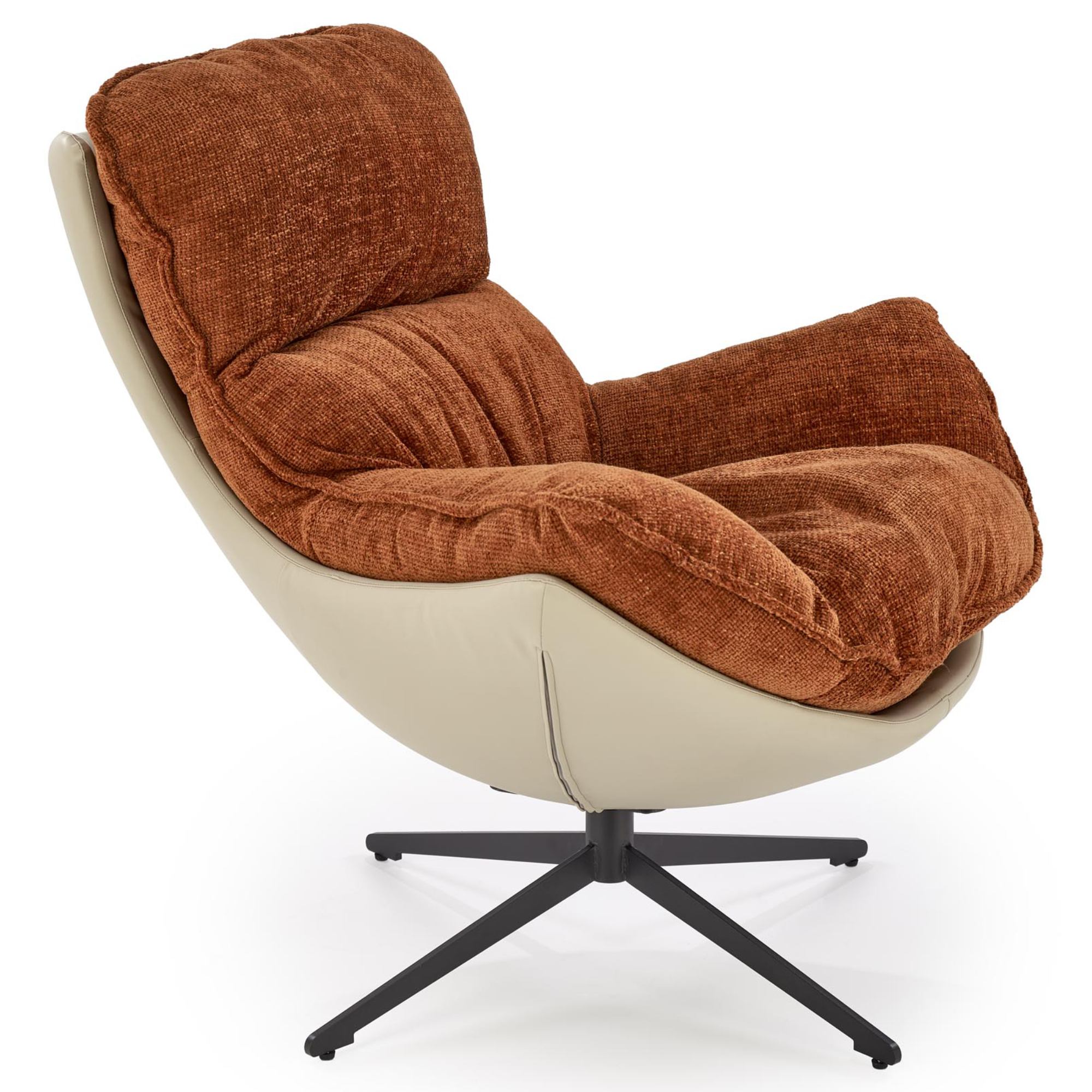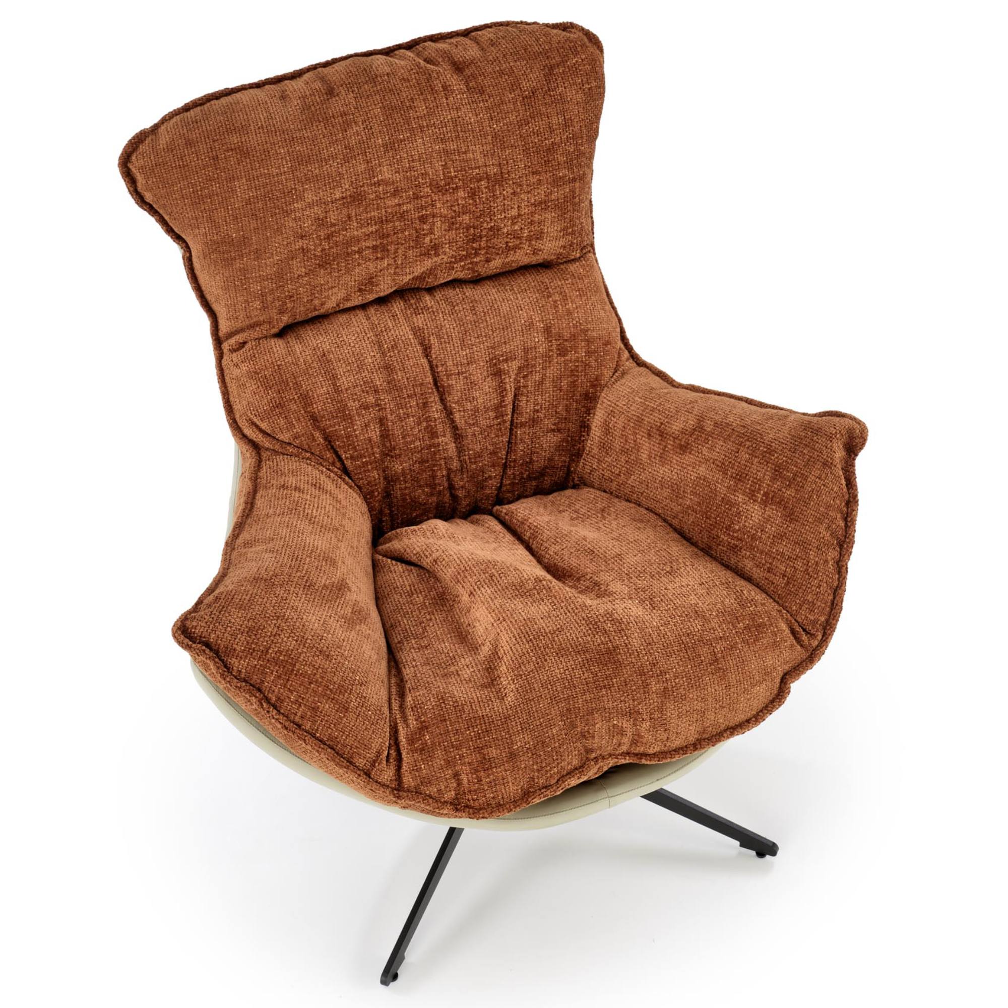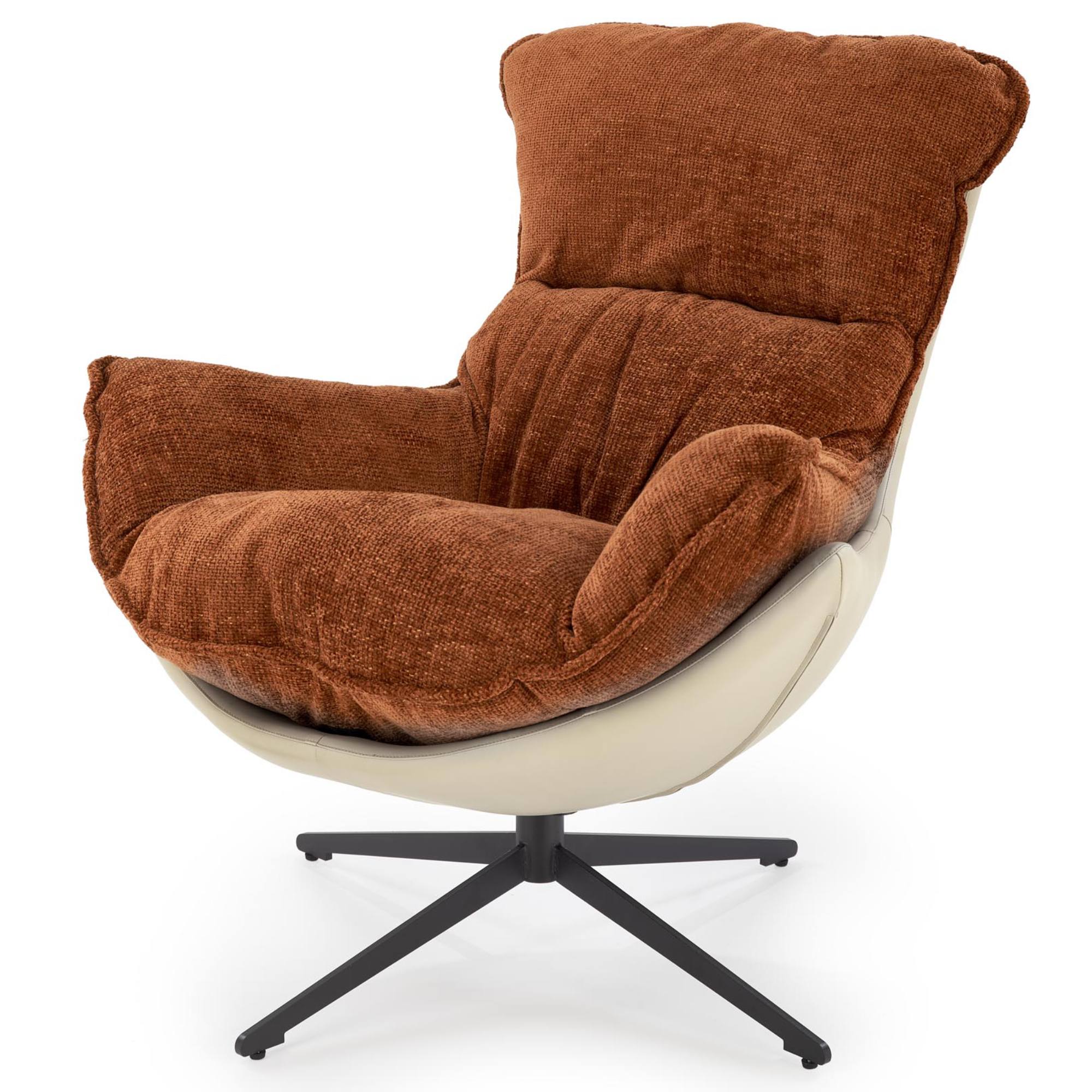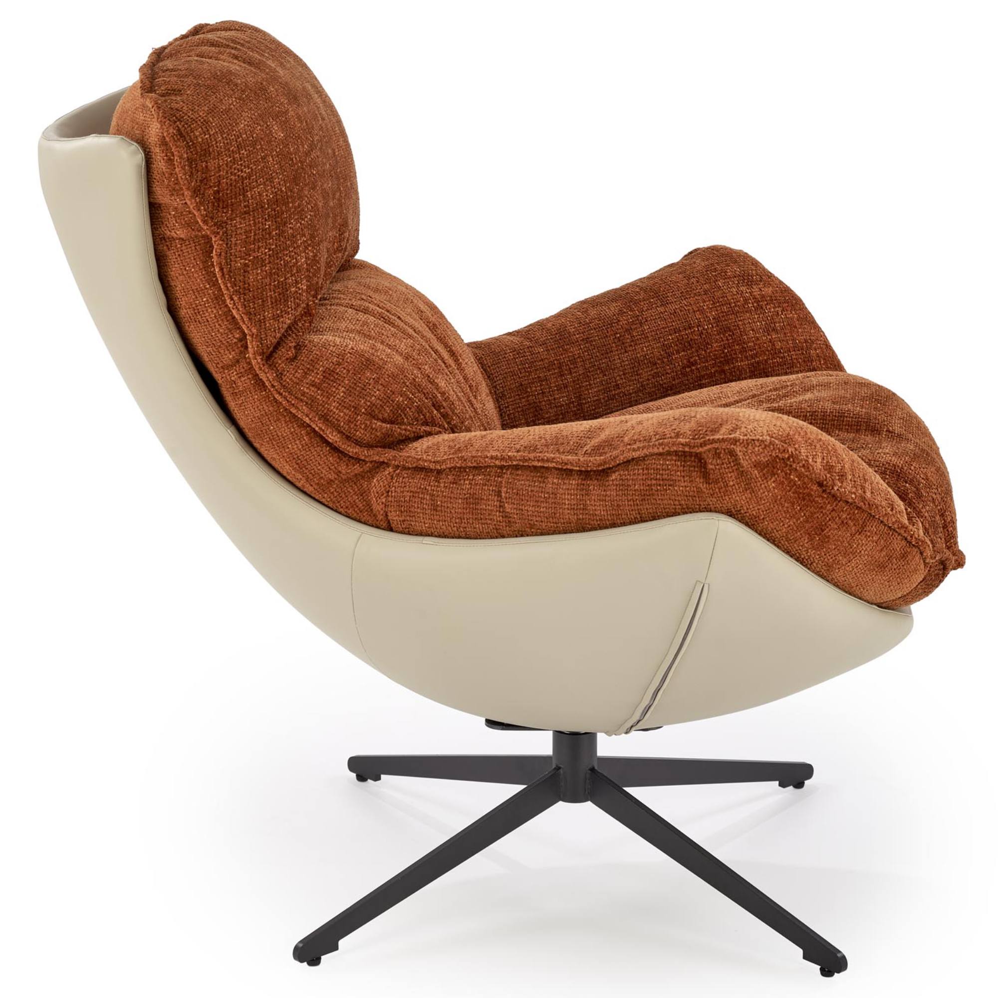 Penové jadro a poťah z hladkej tkaniny a ekokože sú príjemné na dotyk a poskytnú zázemie na relaxáciu. Konštrukcia z kovu zaistí stabilitu a je navyše otočná, takže si kreslo môžete natočiť podľa potreby.