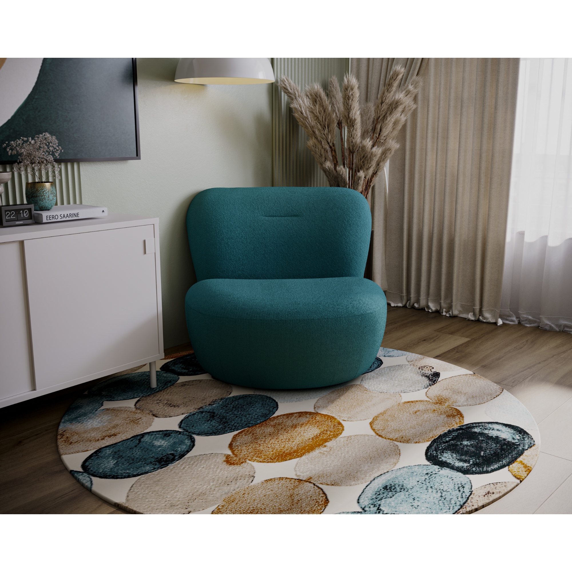 Hladký poťah príjemný na dotyk a konštrukcia so zaoblenými tvarmi vytvára jedinečný vzhľad kresla. Vďaka otočnému mechanizmu je kreslo otočné o 360 ° a vy si ho tak môžete natočiť podľa potreby.