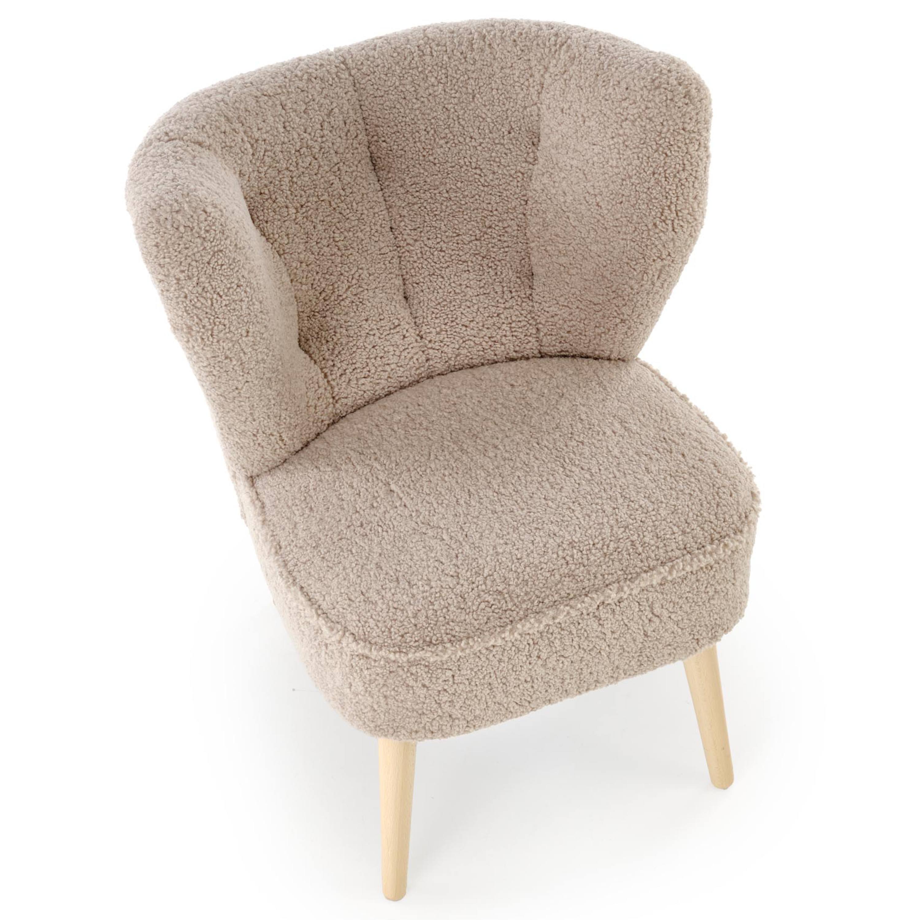 Sedák spolu s operadlom sú potiahnuté poťahovou tkaninou príjemnou na dotyk. Zaoblené tvary kresla lákajú k relaxu a vy si oddýchnete a vychutnáte chvíľky pokoja. Vysoké nožičky z masívneho dreva podčiarkujú elegantný vzhľad kresla a zaručia jeho stabilitu.