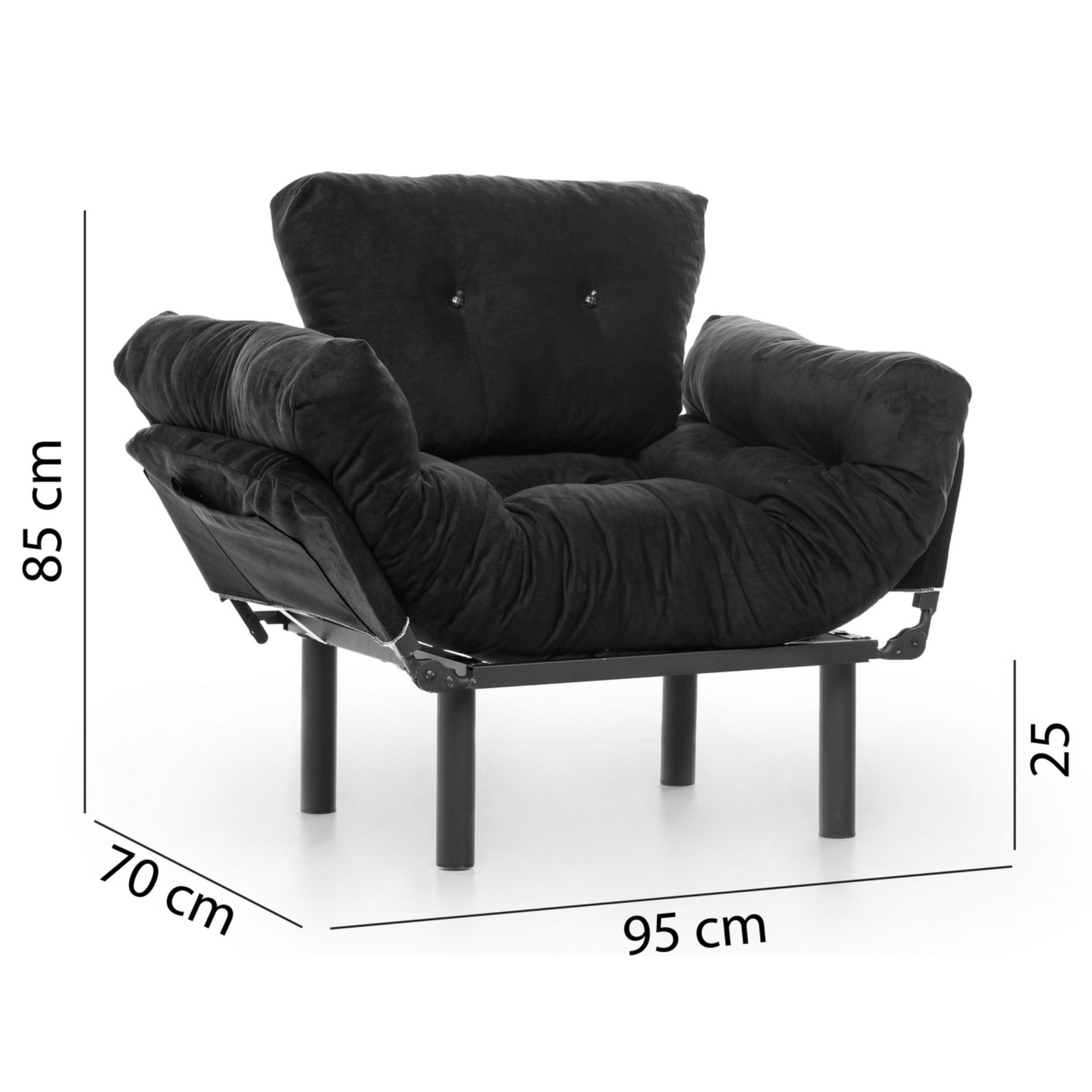 Kovová konštrukcia v kombinácii s penovým jadrom poskytne pohodlné sedenie. Po sklopení podrúčok vytvoríte z kresla provizórne jednolôžko, kde si môžete dopriať popoludňajšiu siestu alebo uložiť na prenocovanie návštevu. Celočalúnené vyhotovenie vám dovolí umiestniť kreslo podľa dispozície interiéru. Aj udržanie poriadku pod kreslom zvládnete hravo. Vďaka vysokým nôžkam je priestor pod kreslom ľahko prístupný. Poťahová látka príjemná na dotyk len umocňuje zážitok z posedenia.
