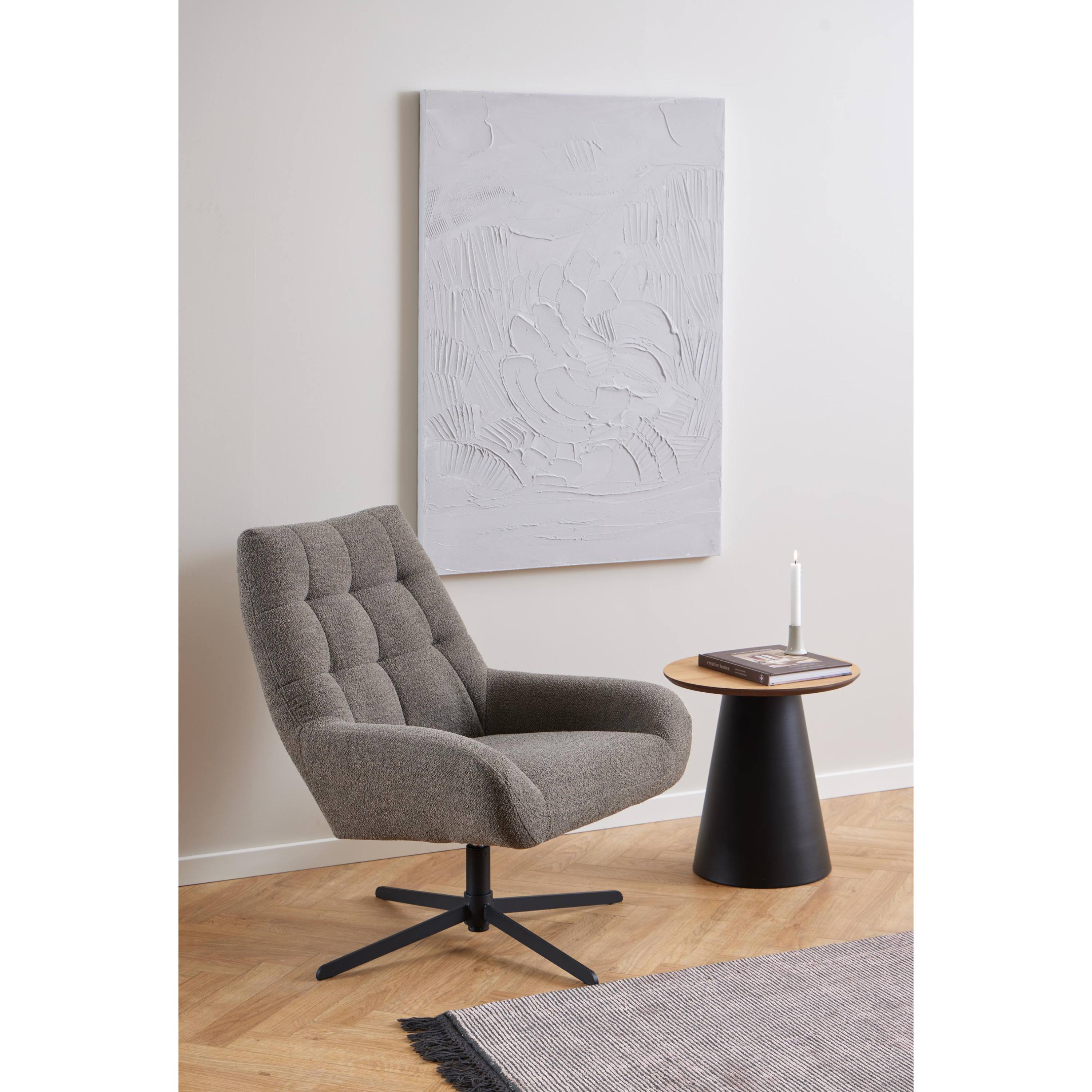 Čalúnené je hladkou tkaninou zo 100 % polyesteru, ktorá vytvára na dotyk príjemný povrch. Celú konštrukciu podopierajú vysoké kovové nohy s otočnou funkciou.