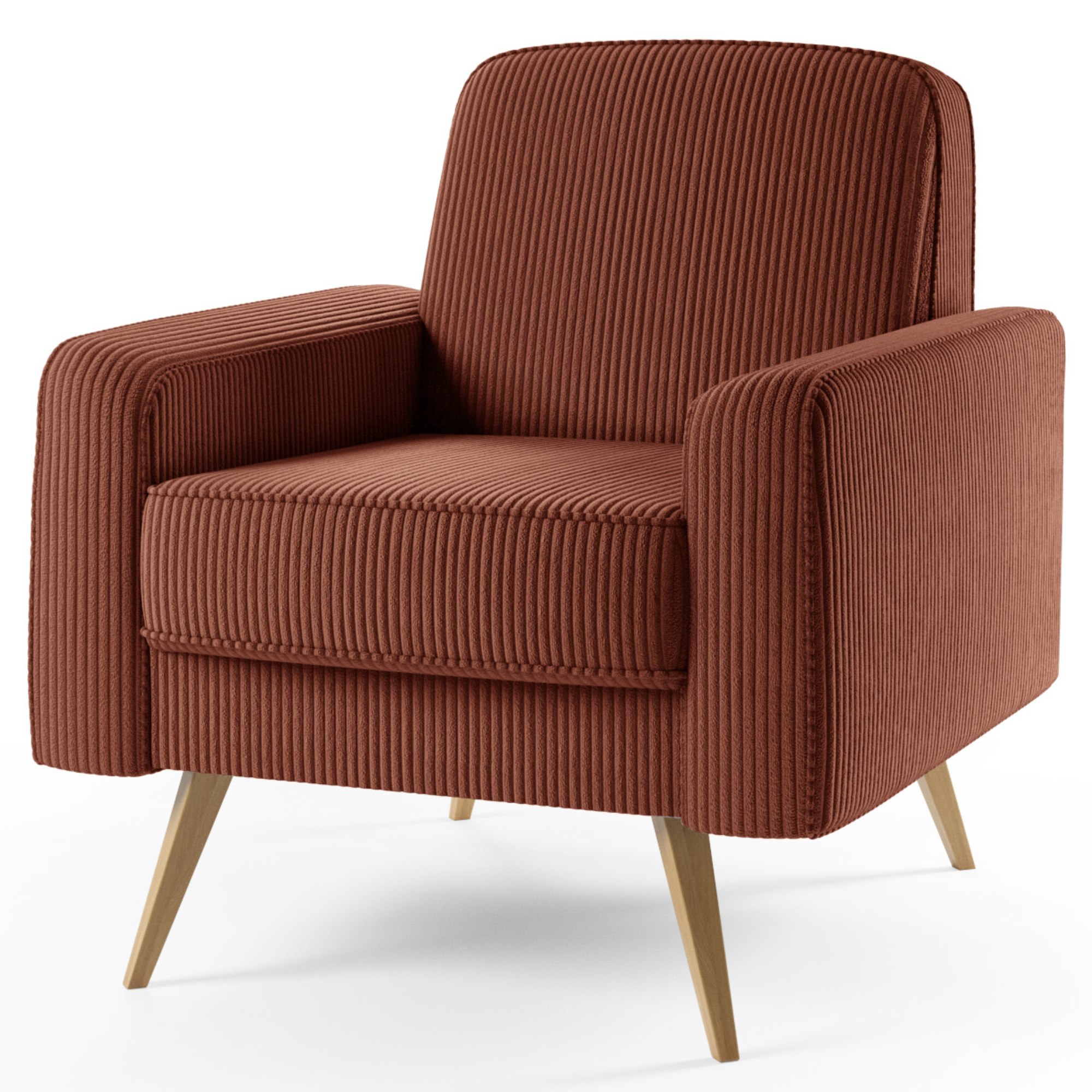 Jeho konštrukcia je potiahnutá mäkkou tkaninou s dlhým vlasom, ktorá na prvý pohľad pripomína menčester. Vďaka hrubému sedadlu s penovou výplňou, chrbtovému operadlu a komfortným podrúčkam vám kreslo dopraje maximálne pohodlie a oporu počas relaxácie. Priestranné sedadlo podopierajú nohy z masívneho dubového dreva v prírodnom odtieni, ktoré kreslu dodávajú potrebnú stabilitu a zároveň vytvárajú elegantnejší dojem.