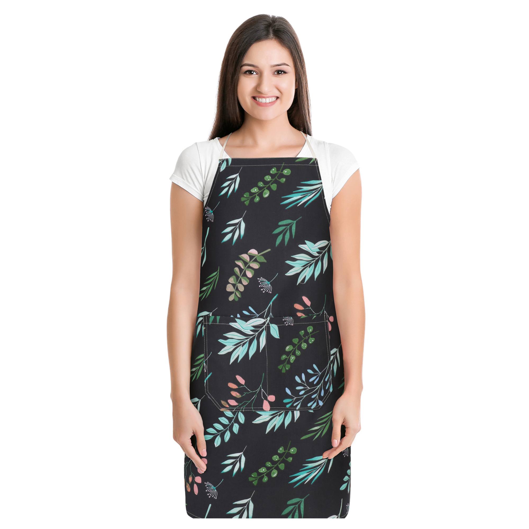 Kuchynská zástera LÍSTKY NA ČIERNEJ s rastlinným motívom je praktickým a štýlovým pomocníkom do kuchyne, ktorý vám spríjemní rutinné aj sviatočné varenie a pečenie. Plátenné vyhotovenie je vyrobené zo 100 % bavlny zaisťujúce priedušnosť a príjemnosť na dotyk. Na drobnosti, ktoré chcete mať po ruke, slúži praktické vrecko. Zásteru jednoducho navlečiete cez hlavu a pripevníte k telu pomocou praktického zaväzovania. Zástera tak spoľahlivo ochráni vaše šaty pred ušpinením či prípadným prepálením.