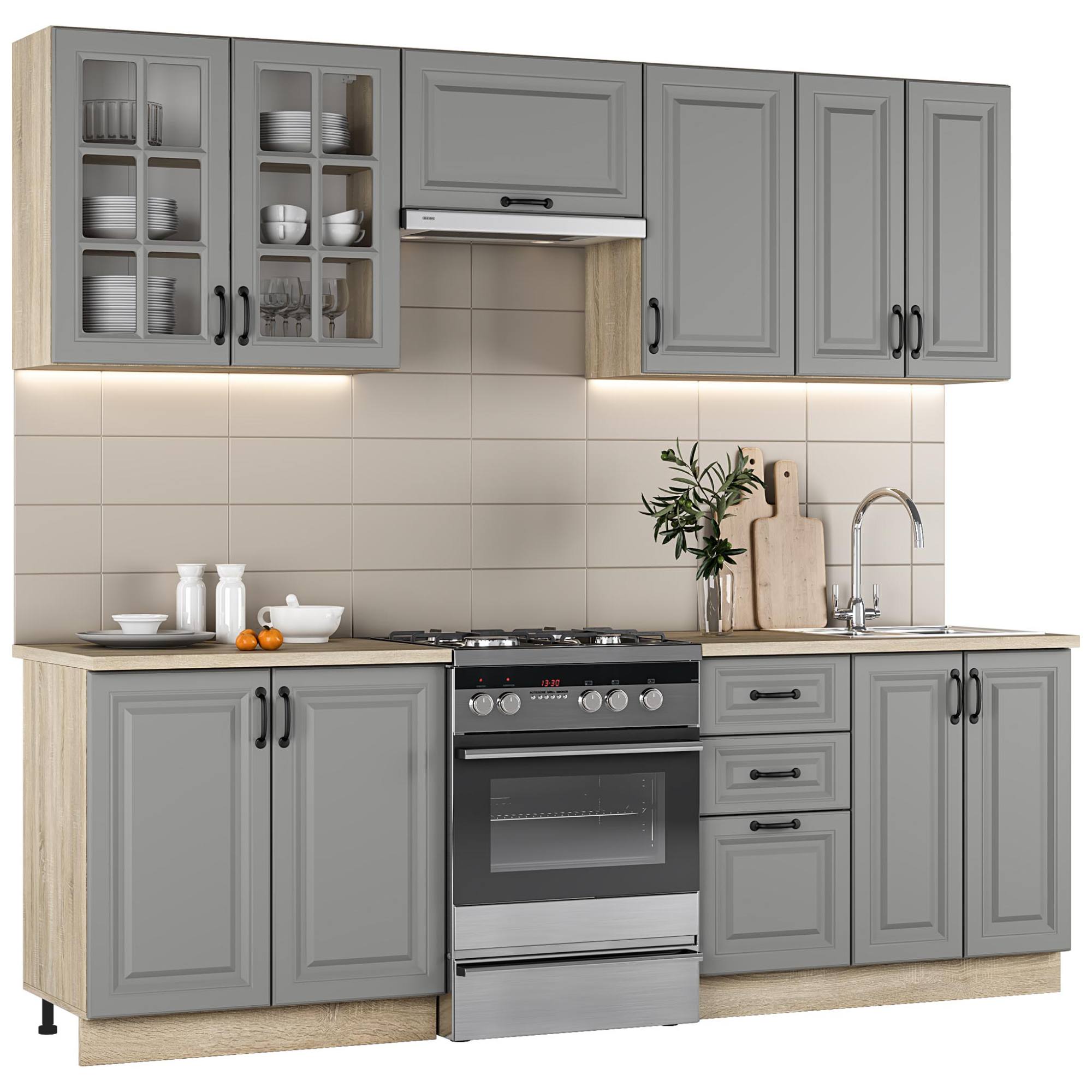 Kuchynská zostava ILAZOBITH 240 - sivá/dub sonoma