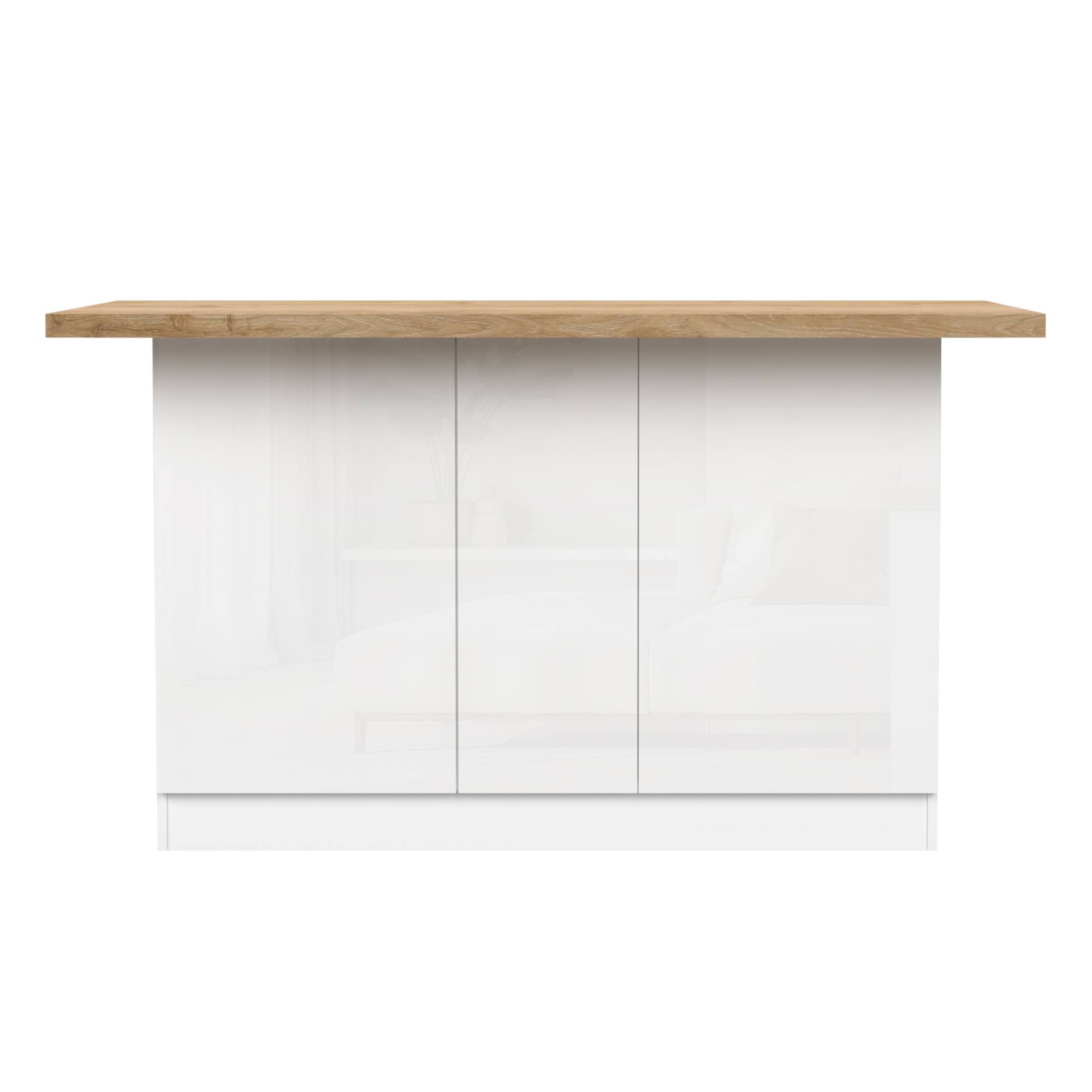 Kuchynský ostrovček ISLAND 160 - biela vysoký lesk/dub