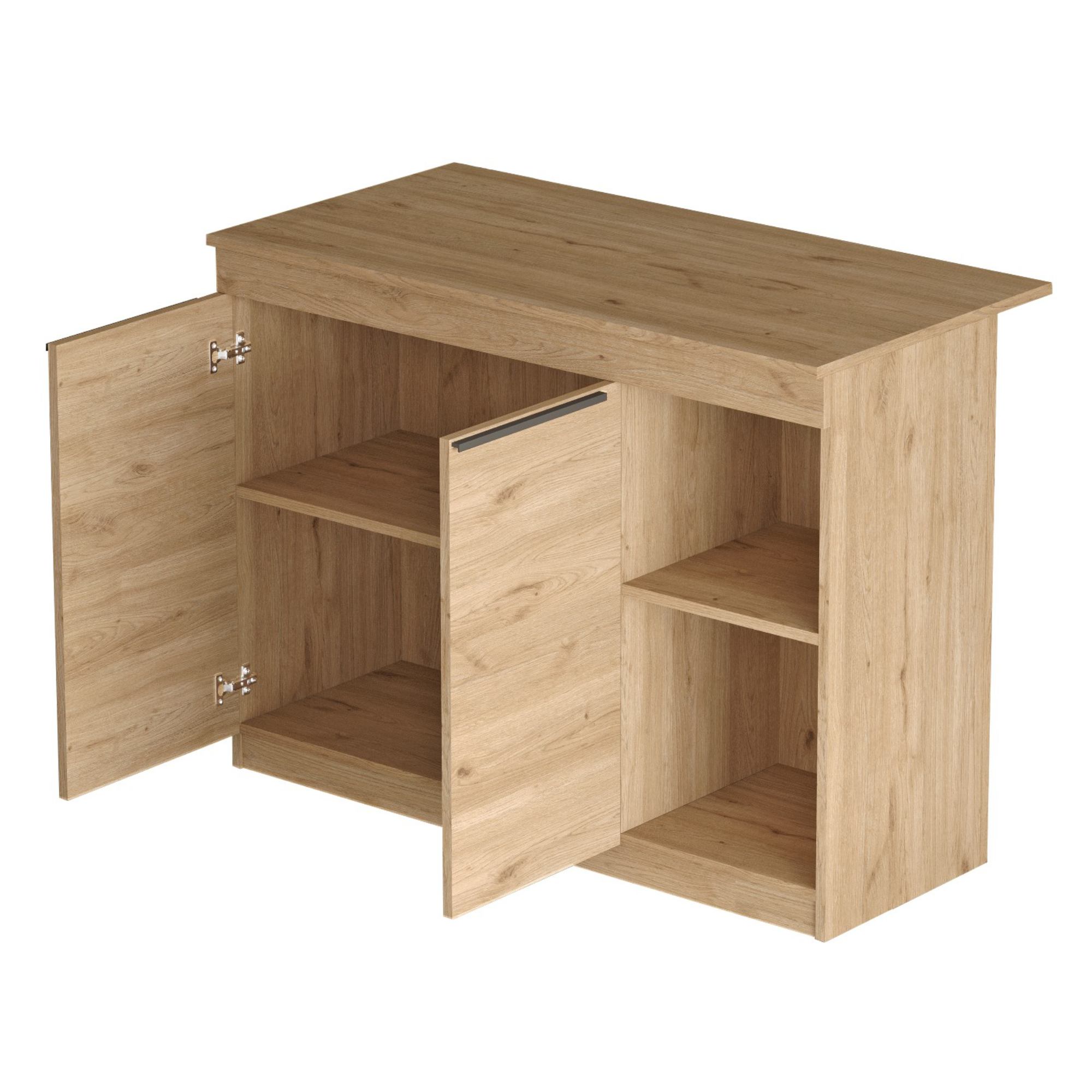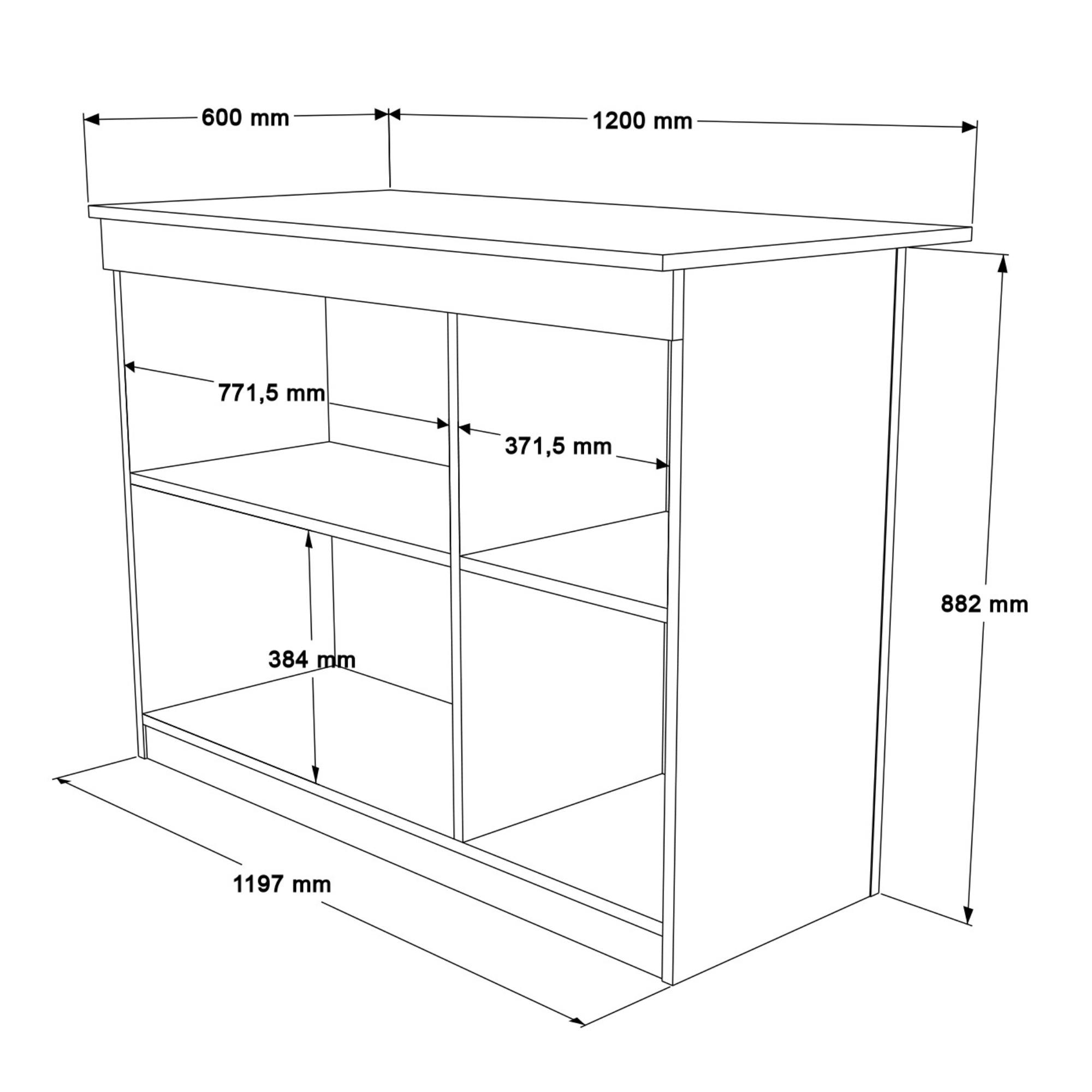 Ostrovček poskytuje dostatok úložného priestoru na všetko, čo v kuchyni potrebujete mať po ruke. Jeho súčasťou sú 2 vložené police, z ktorých 1 je ukrytá za dvierkami. Aby sa s dvierkami ľahšie manipulovalo, sú vybavené rúčkami.