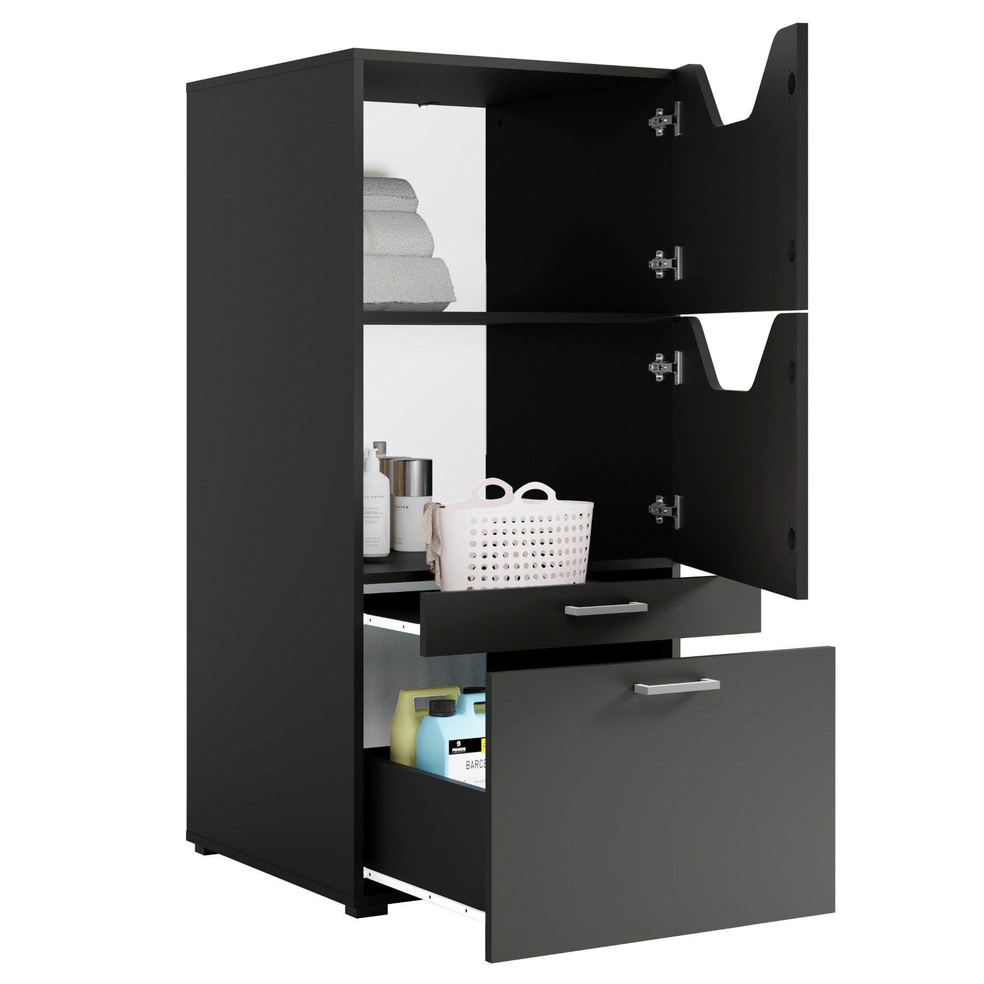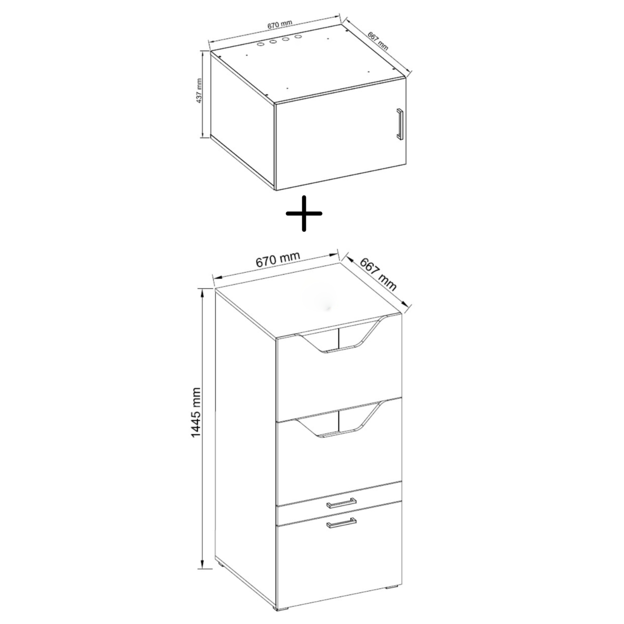 Skriňa ponúka dostatok úložného priestoru. Jej súčasťou je nielen 1 vložená polica, ale aj 2 zásuvky, z ktorých 1 po vysunutí predstavuje praktické miesto na odloženie všetkého, čo potrebujete mať poruke. Pre ľahšiu manipuláciu sú zásuvky vybavené rúčkami. Na skriňu je možné dokúpiť nadstavec, ktorý vám poskytne ďalší úložný priestor.