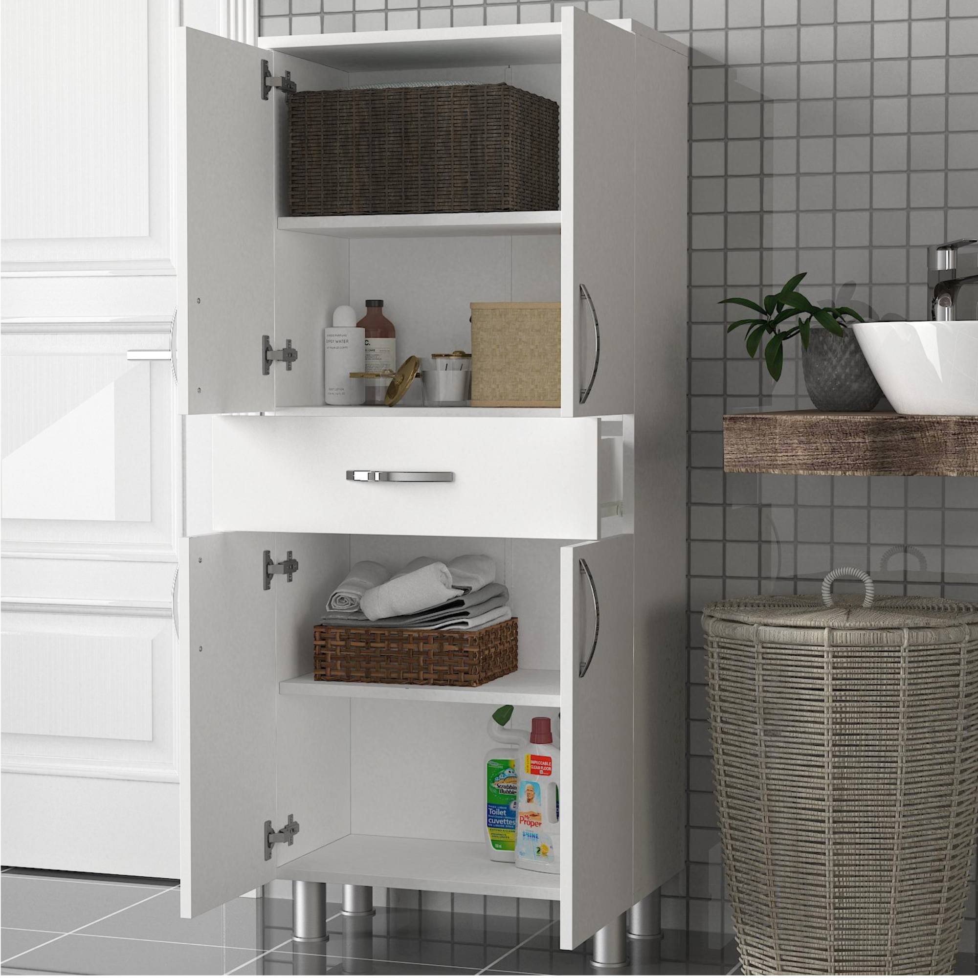 Za jej dvierkami nájdete 2 vložené police, na ktoré môžete prehľadne uložiť všetky predmety, ktoré chcete mať poruke. Nechýba ani priestranná zásuvka. Vďaka tomu, že skrinka poskytuje dostatok úložného priestoru, je skvelou voľbou predovšetkým do menších kúpeľní.