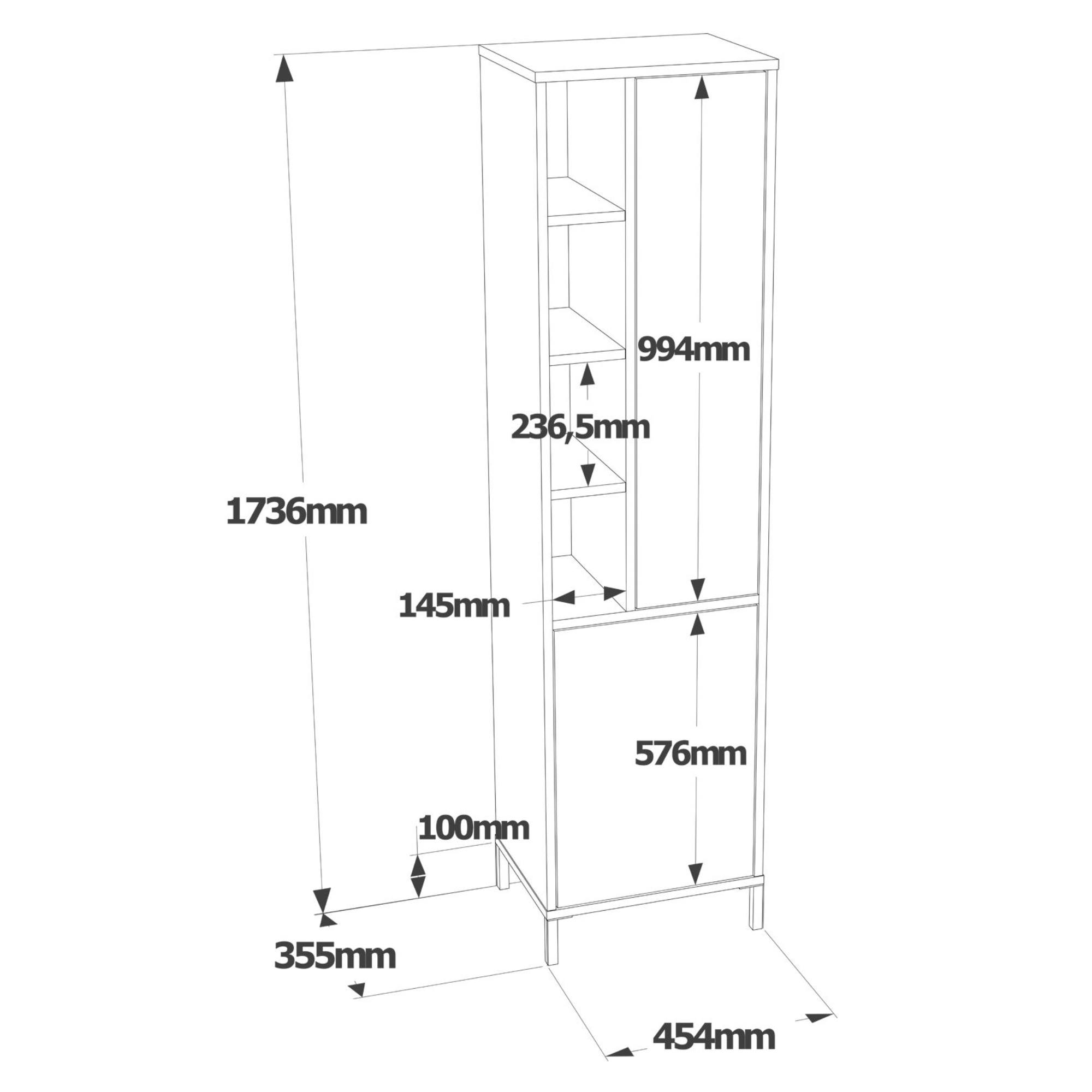 Skrinka ponúka dostatok úložného priestoru, a tak v nej svoje miesto nájdu nielen uteráky a hygienické a kozmetické potreby, ale aj toaletný papier alebo čistiace prostriedky. Skrinka disponuje 7 vloženými policami.