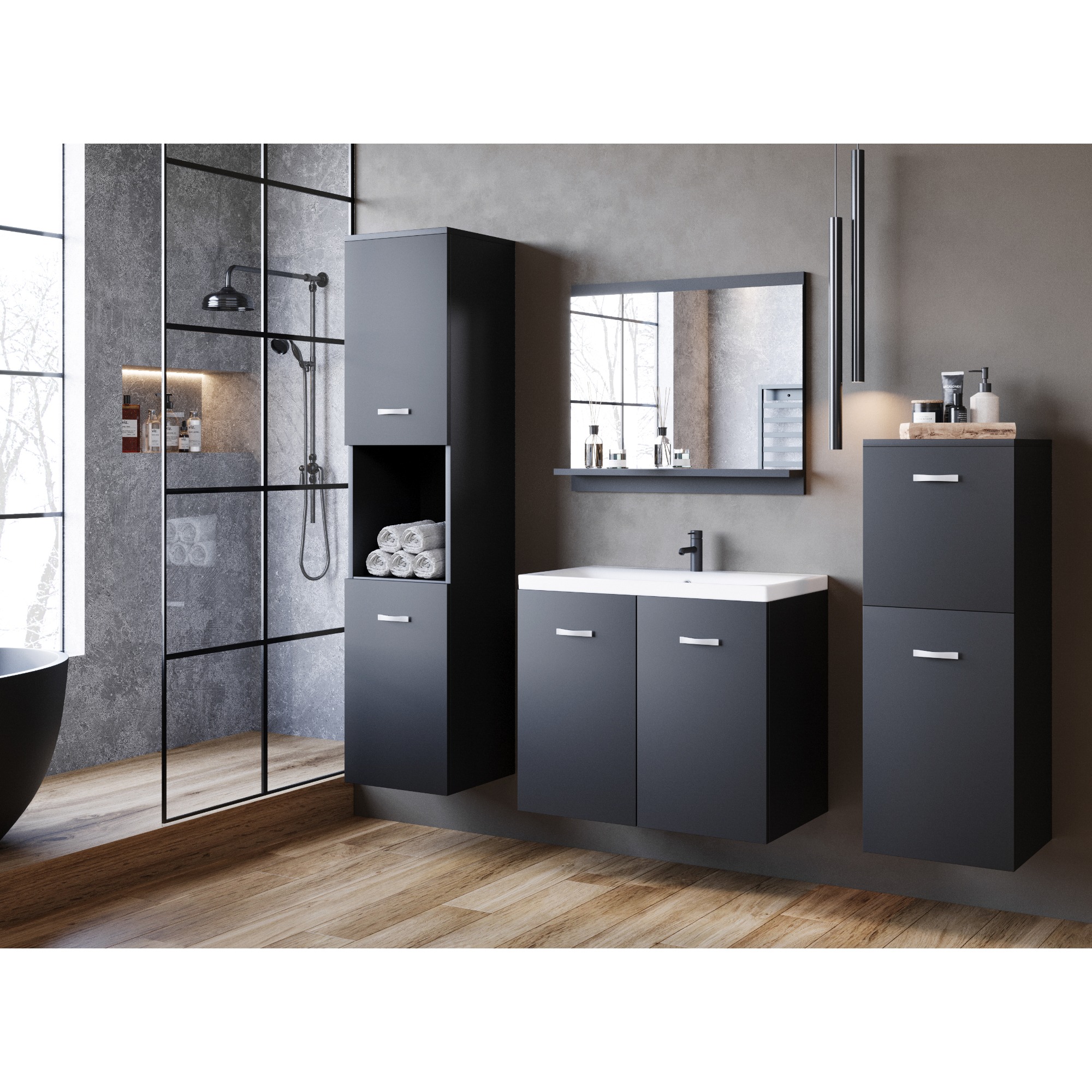 Kúpeľňová zostava MADDIE - čierna/grafitová