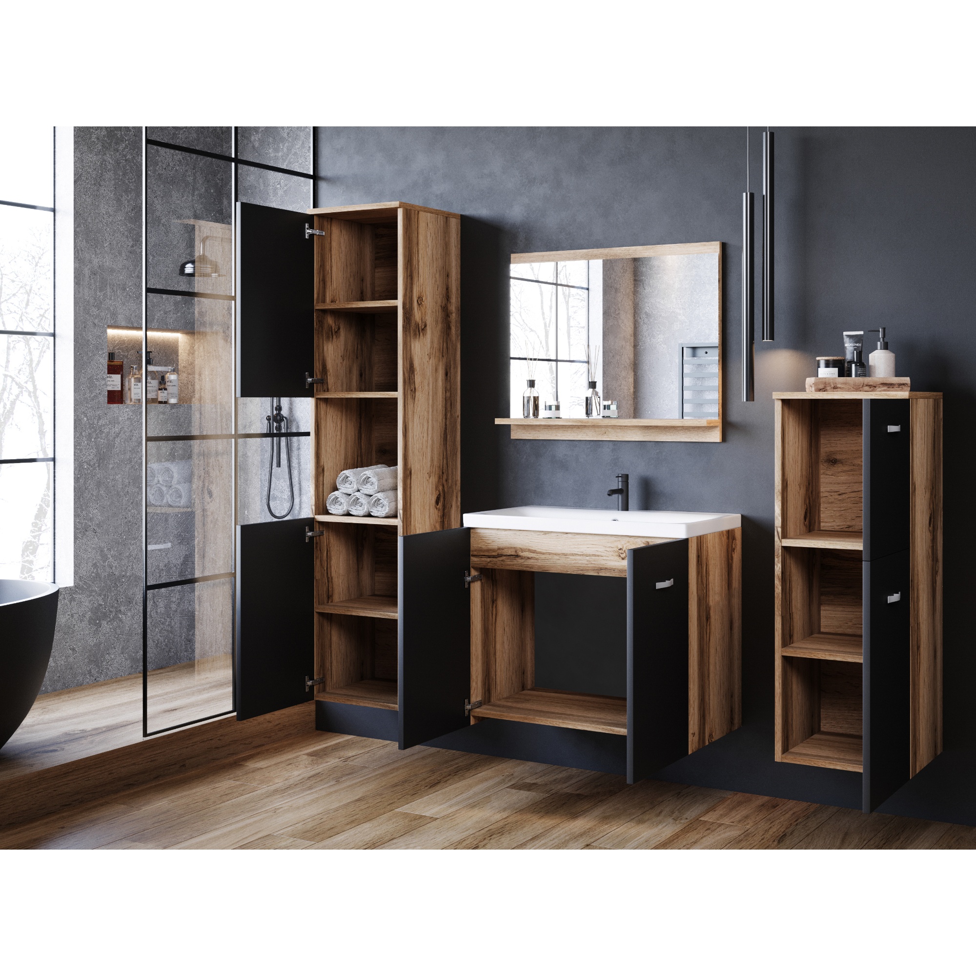 Kúpeľňová zostava MADDIE - dub wotan/čierna