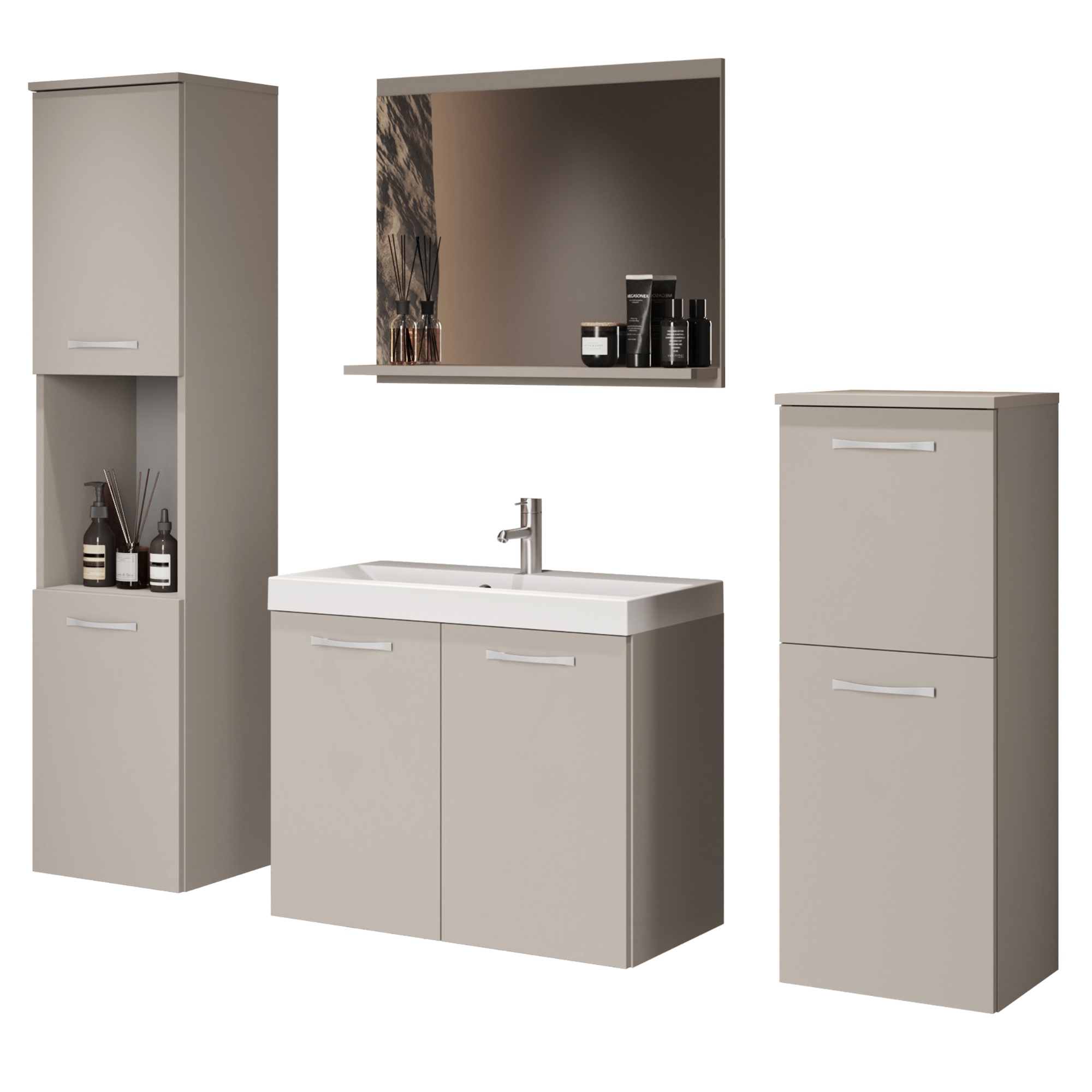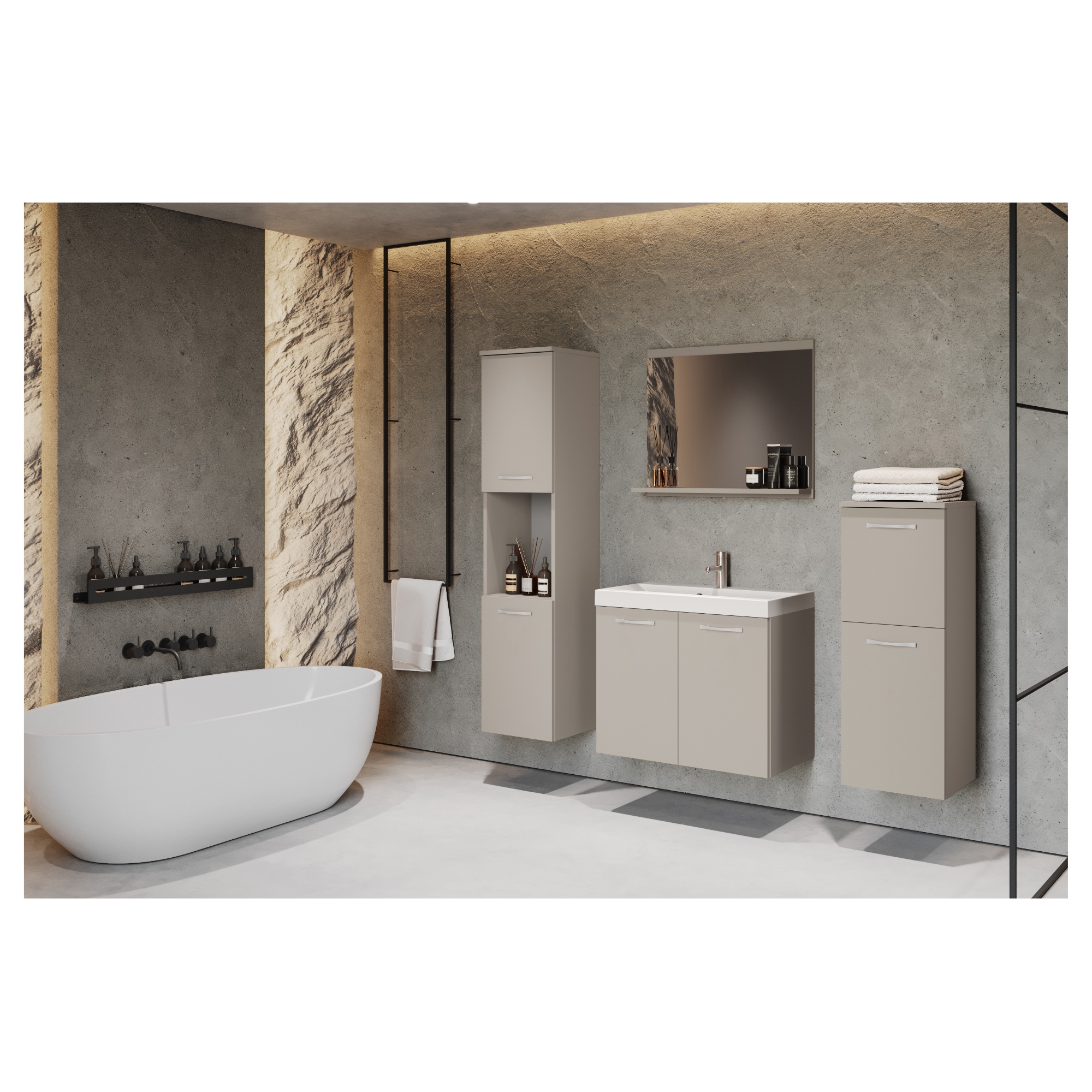 - Výbava: Kúpeľňová skrinka pod umývadlo, Kúpeľňová skrinka závesná, Umývadlo, Zrkadlo