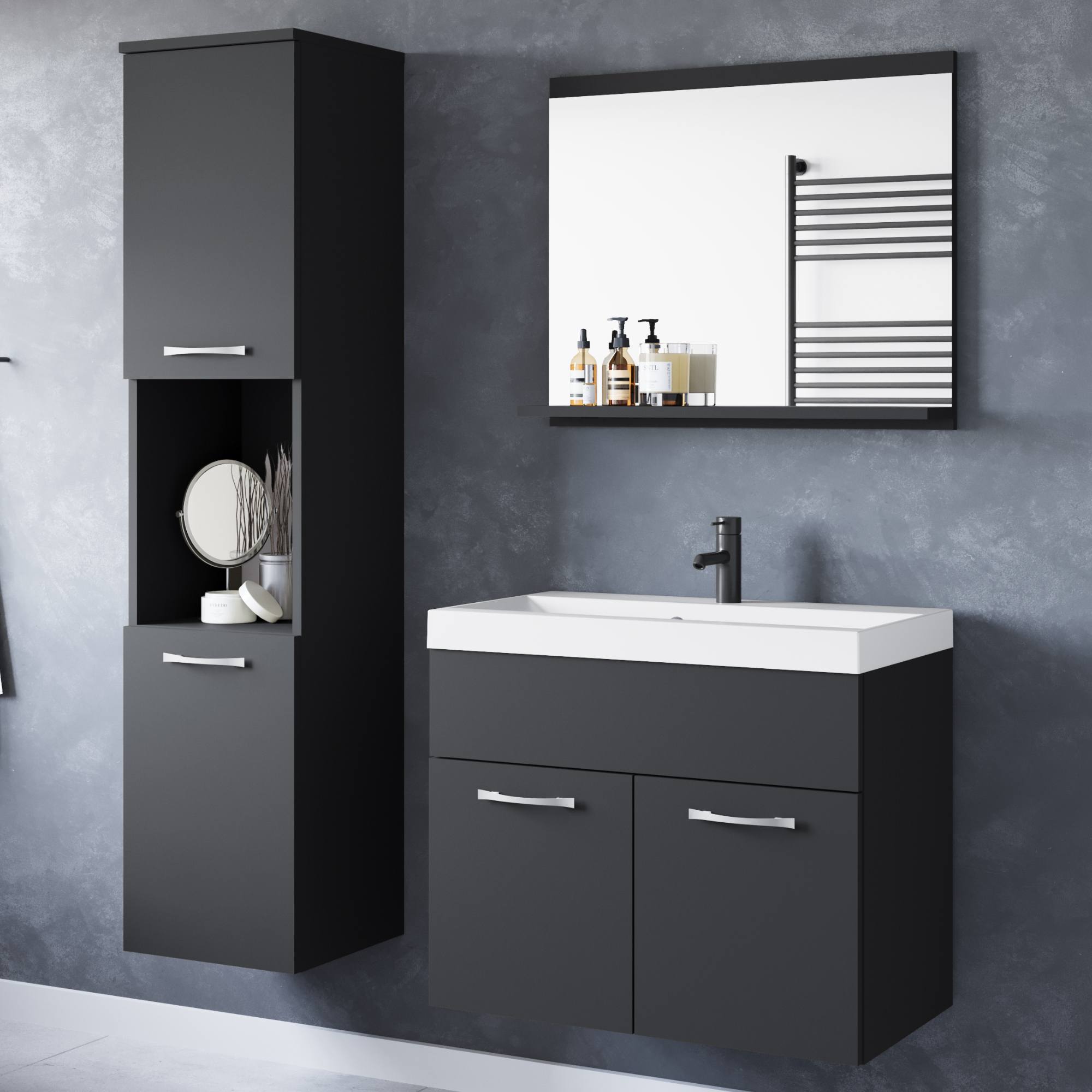 - Výbava: Kúpeľňová skrinka pod umývadlo, Kúpeľňová skrinka závesná, Umývadlo, Zrkadlo