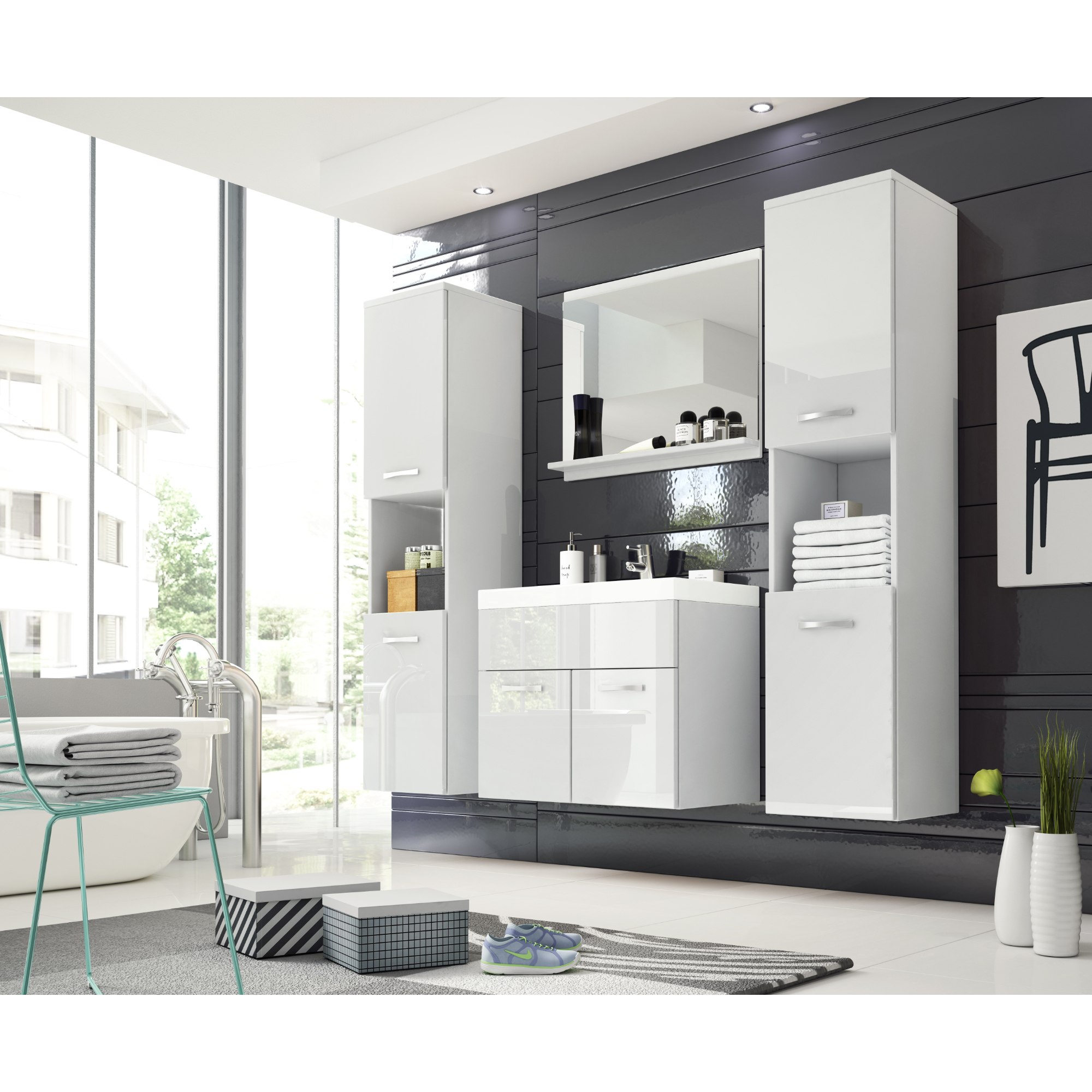 Kúpeľňová zostava MAEL XL - biela/biela lesklá