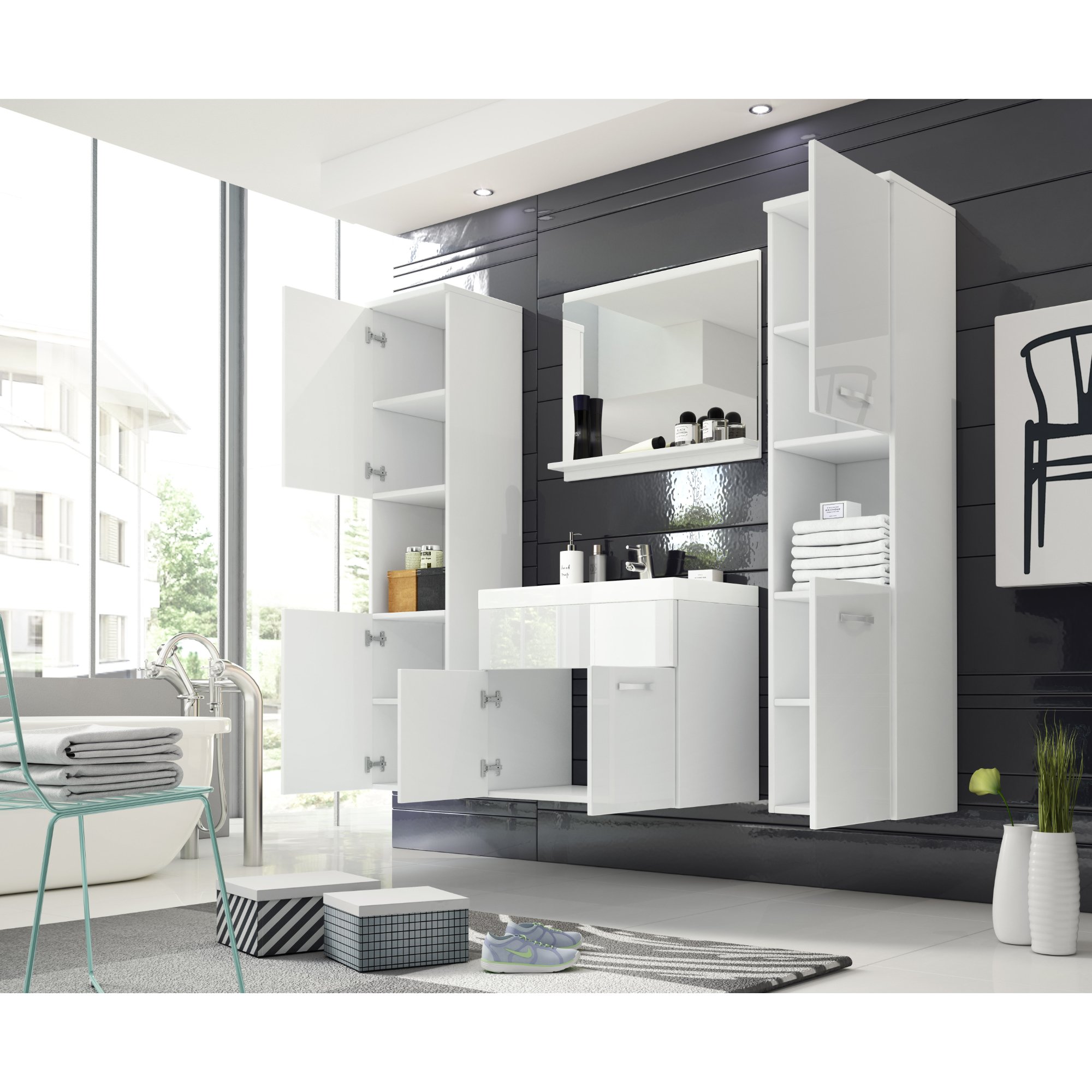 Vďaka kúpeľňovej zostave MAEL XL budete mať všetko prehľadne uložené a vaša kúpeľňa bude vyzerať stále uprataná.