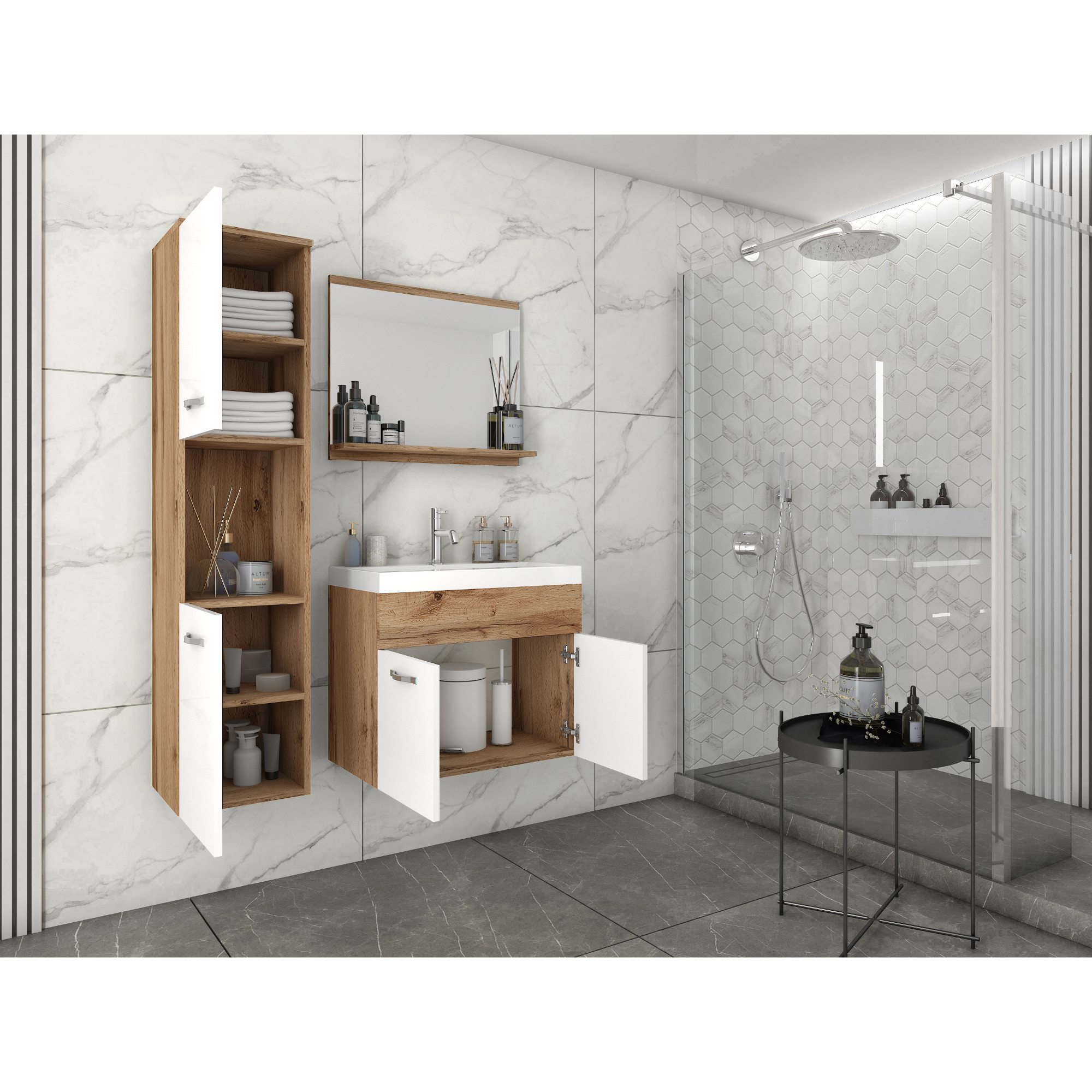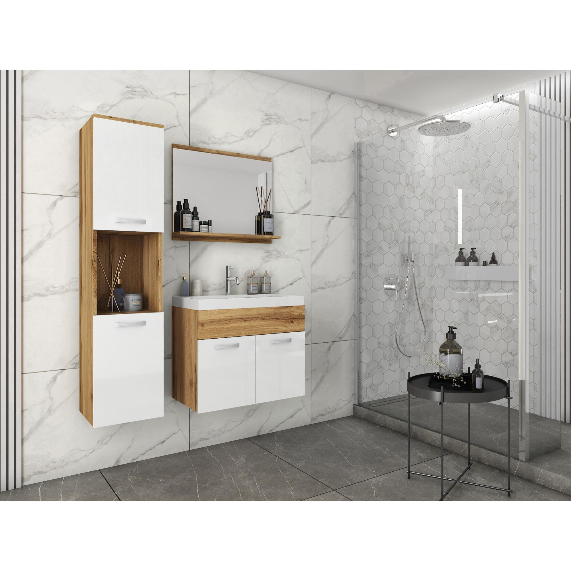 Kúpeľňová zostava MAEL XL - dub wotan/biela lesklá