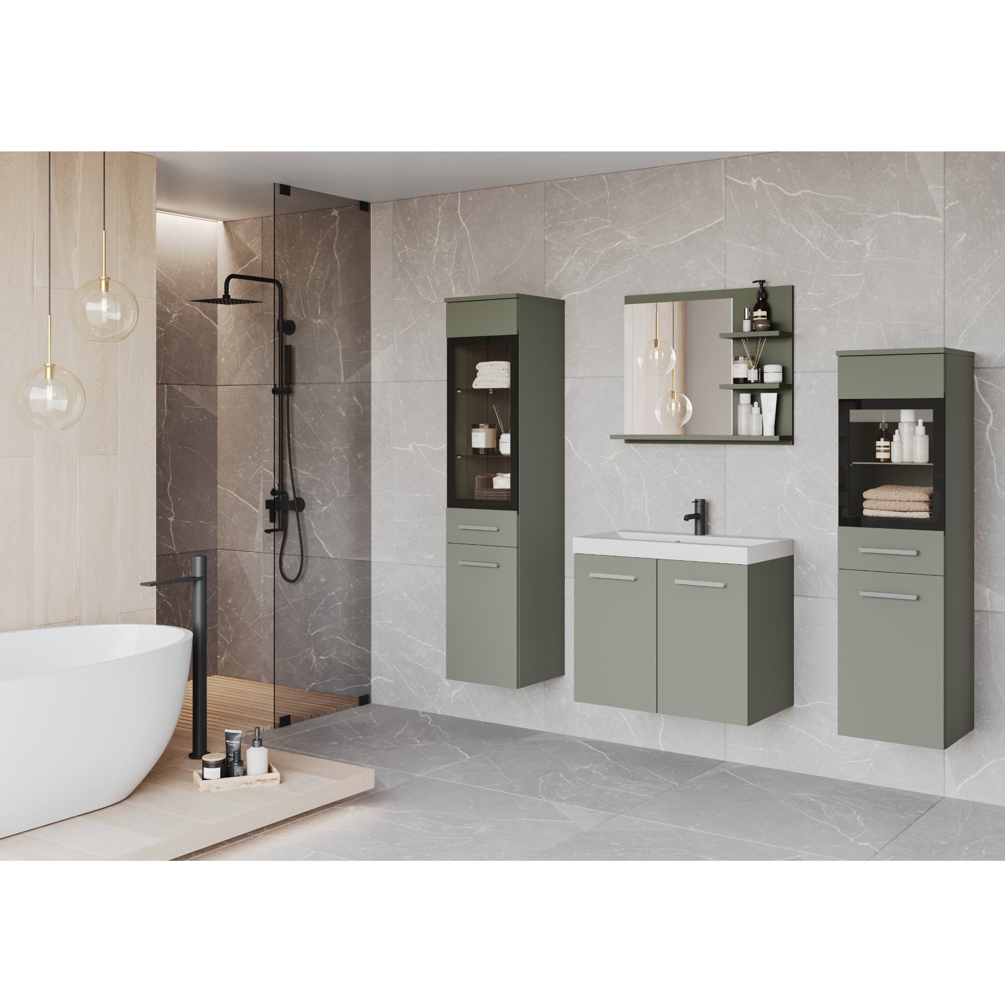 - Výbava: Kúpeľňová skrinka pod umývadlo, Kúpeľňová skrinka závesná, Umývadlo, Zrkadlo