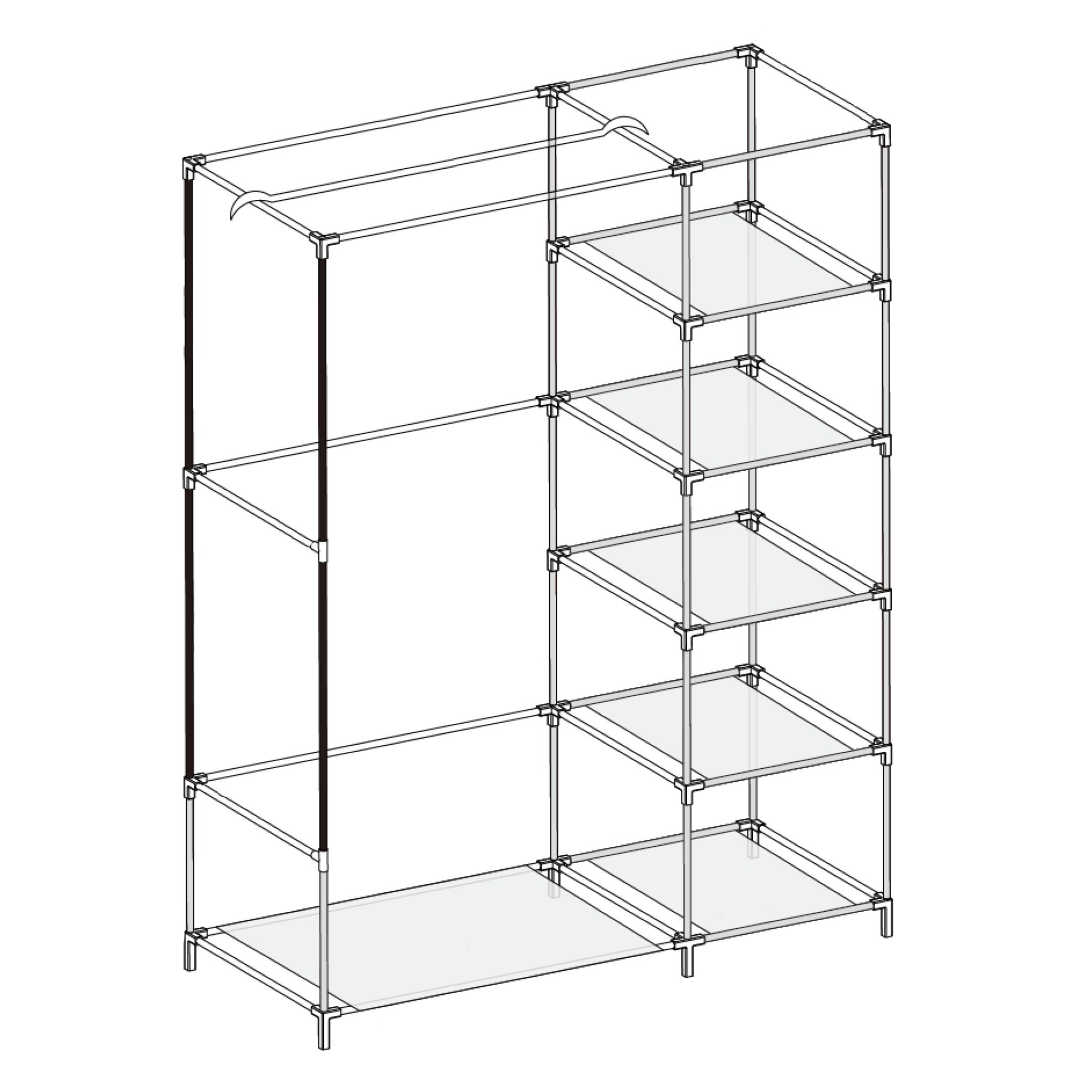 Látková šatníková skriňa LSF007 predstavuje ideálne funkčné riešenie úložného priestoru na chodbu, do predsiene, komory alebo tiež do spálne. Ľahká konštrukcia, ktorá je zostavená z oceľových rúrok s plastovými spojovacími časťami, sa vďaka nízkej hmotnosti ľahko prenáša z miesta na miesto. Úložný priestor sa skladá z celkom 4 políc a jednej šatníkovej tyče. Pri rovnomernom zaťažení unesie každá polica až do 5 kg a šatníková tyč je schopná uniesť až do 25 kg. Jednoduchý prístup k uloženým veciam umožňujú 2 rolovacie dvere so zapínaním na zips. Praktický textilný poťah je ľahko udržiavateľný. Postavenie skrine na nožičkách prispieva k celkovej stabilite.