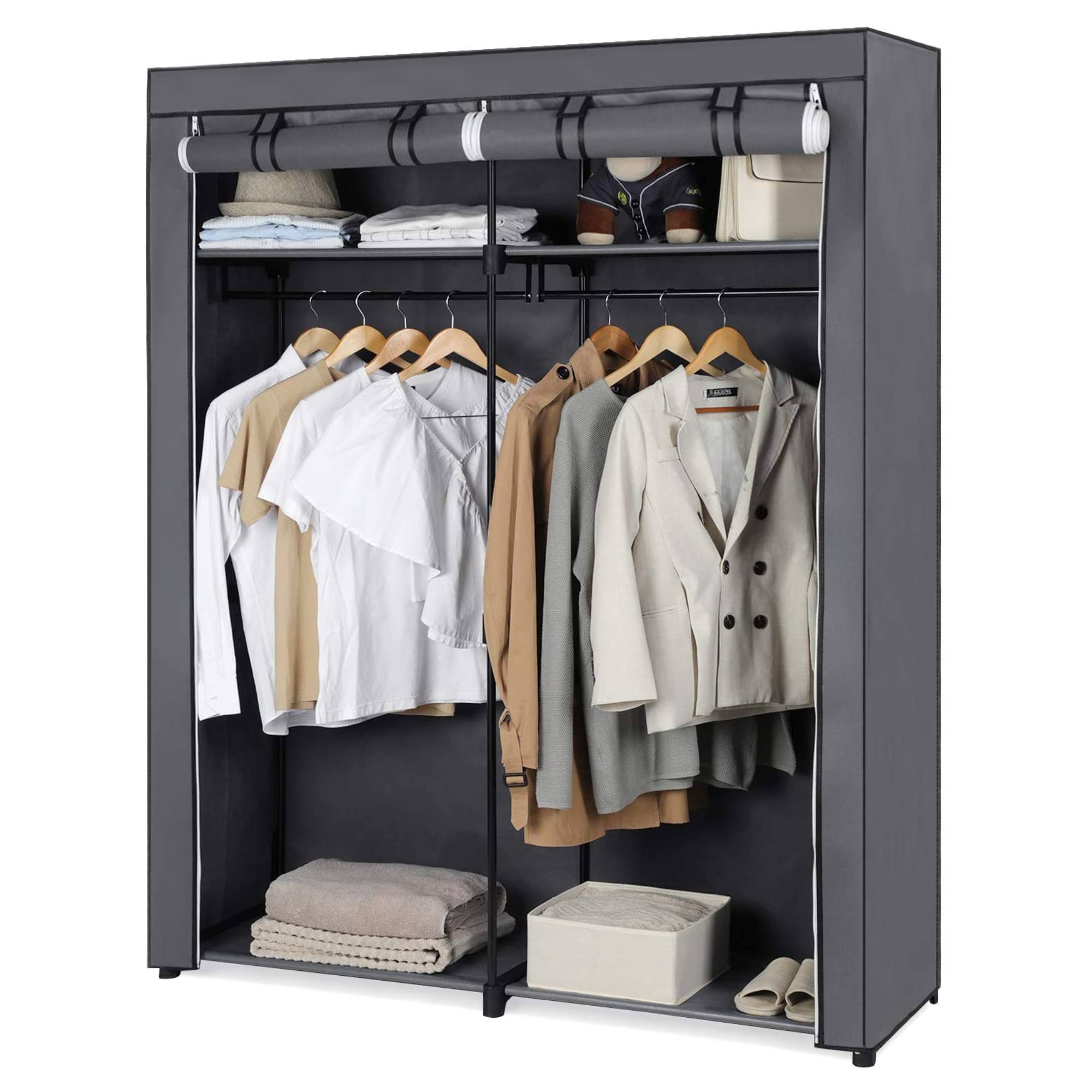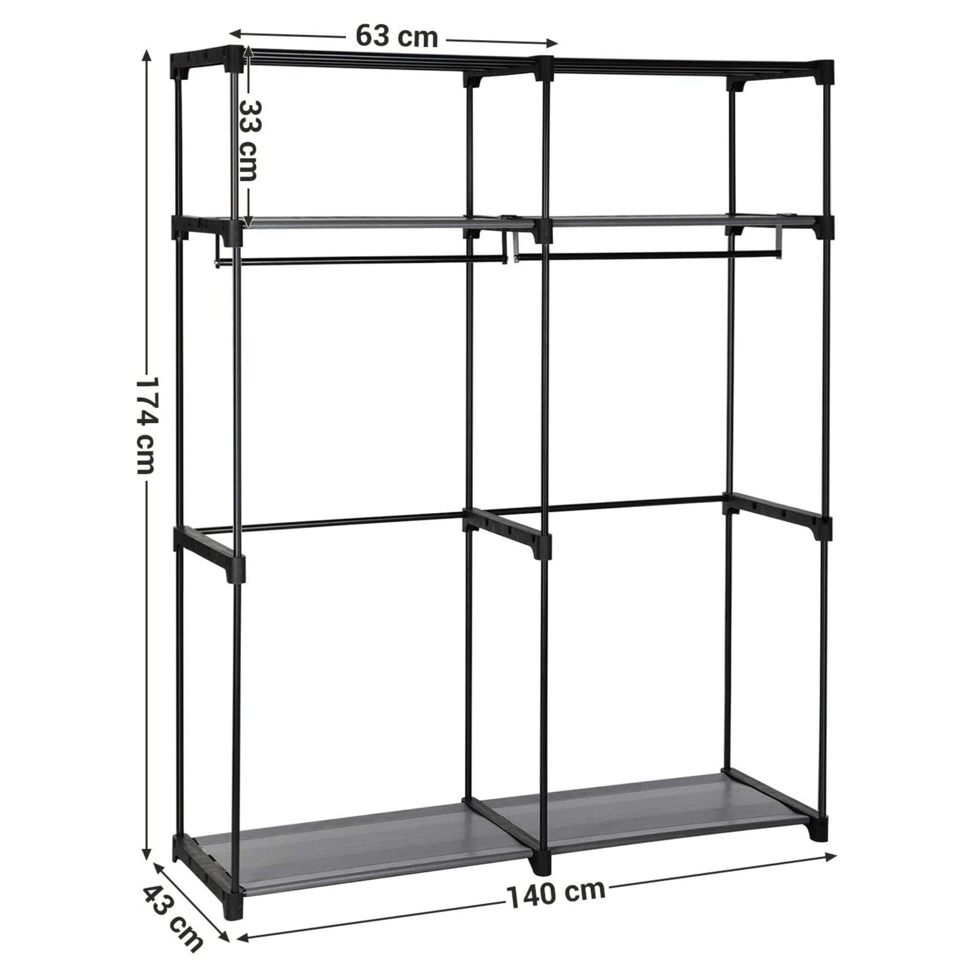 Prehľadne usporiadaná a zorganizovaná skriňa dokáže ušetriť veľa času, a to nielen ráno, kedy je každá minúta dobrá. Jednoduchá a funkčná skriňa RYG02 poskytne vášmu obľúbenému oblečeniu potrebný odkladací priestor. Môžete využiť tyče na zavesenie s nosnosťou až 30 kg aj police, ktoré môžete zaťažiť až 10 kg. Textilný poťah stojana, ktorý je vybavený zipsom a suchými zipsami nedá prachu šancu a vaše obľúbené kúsky budú pred ním chránené. Vďaka ľahkej kovovej konštrukcii sa so skriňou RYG02 ľahko manipuluje a vy si ju môžete postaviť prakticky kamkoľvek a starostlivosť o ňu vám tiež nezaberie príliš času.