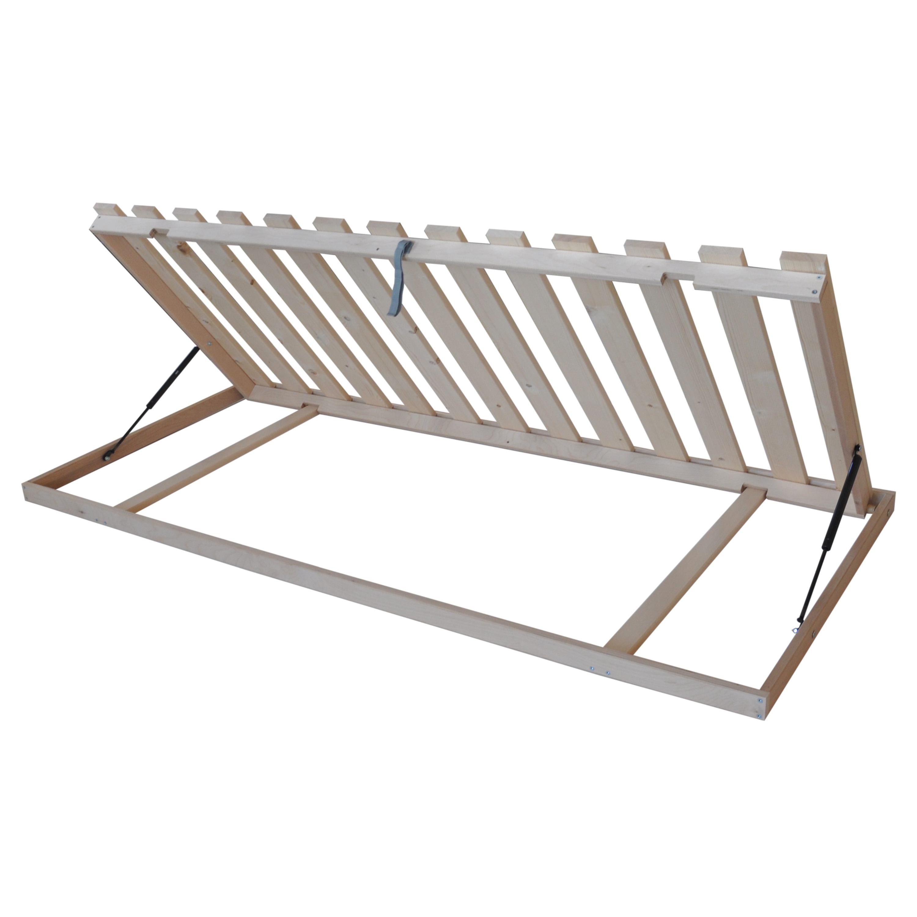 Pevný latkový rošt NATUR SMRK BVP 13L je vyrobený z masívneho smrekového dreva a je vhodný na každodenné spanie. Skladá sa z 13 latiek, ktoré sú zasadené do stabilného dreveného rámu s bočným výklopným mechanizmom. Ten umožňuje ľahký prístup do úložného priestoru postele.