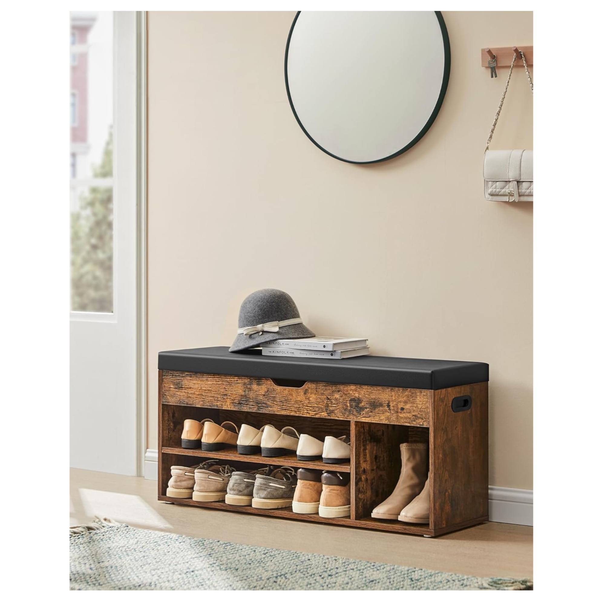 Pod sedákom sa nachádza priehradka s výškou 7 cm, do ktorej je možné si odložiť napríklad rukavice, knihy atď. Spodné otvorené priehradky ponúkajú priestor až na 8 párov topánok. Maximálna nosnosť lavice je 150 kg.