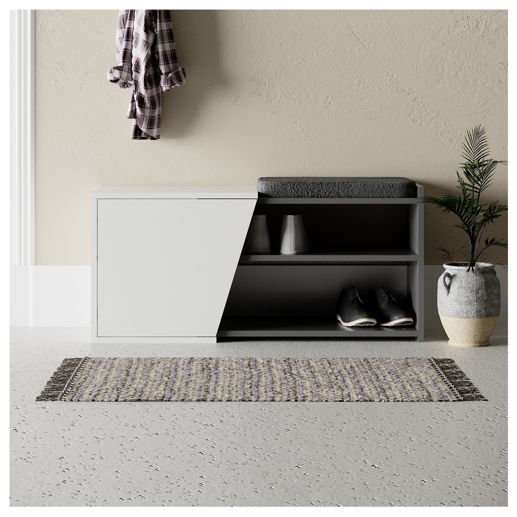 Lavica na topánky FIONA - biela/antracitová
