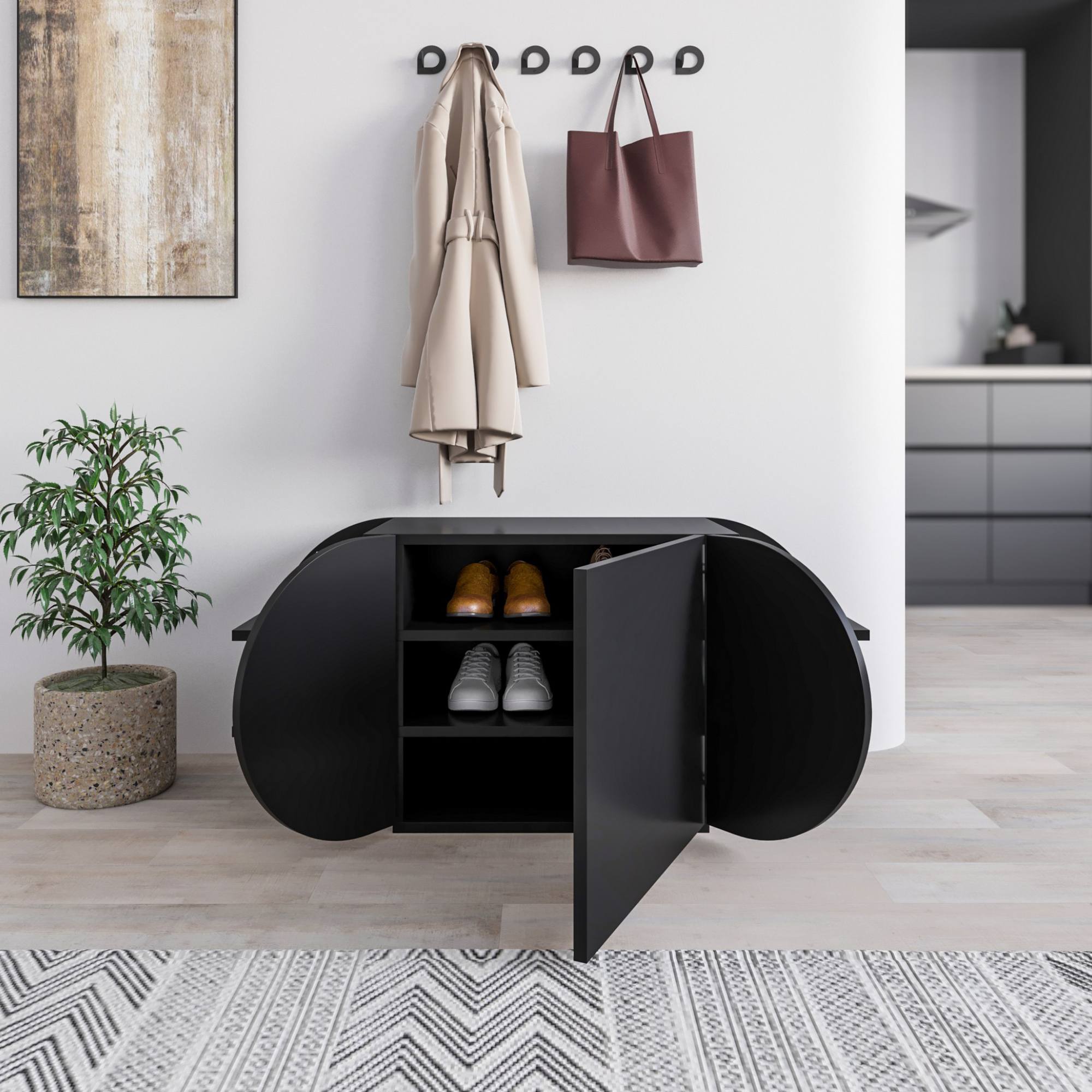 Moderná a štýlová lavica na topánky POZY je praktickým spojením miesta na sedenie a úložného priestoru.