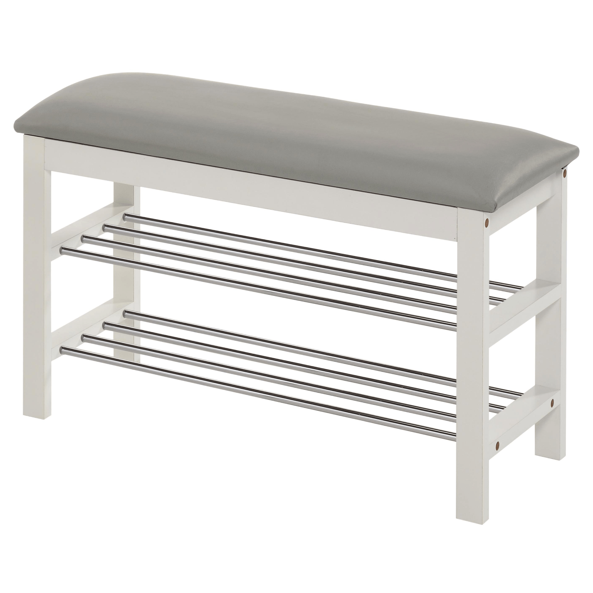 Konštrukcia lavice na topánky je vyrobená z dyhovanej, drevovláknitej dosky, ktorá sa vám bude ľahko udržiavať. Ponúka úložný priestor na menší počet obuvi v podobe 2 vložených políc z chrómovanej ocele. Komfortné sedenie alebo odloženie tašiek umožňuje sedák s poťahom zo syntetickej kože v krémovej farbe.