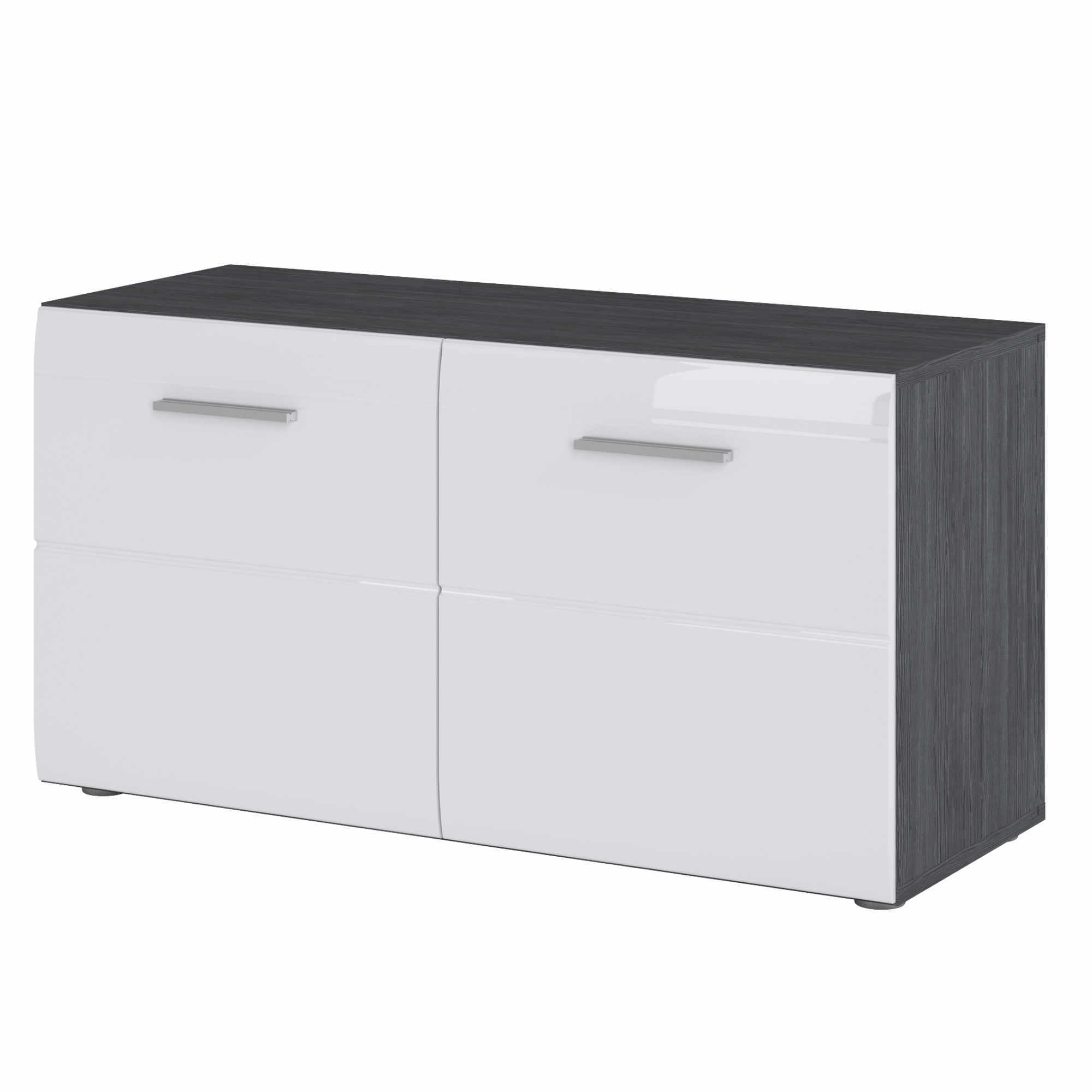 Lavica s úložným priestorom SAVIO - biela vysoký lesk/dymová sivá