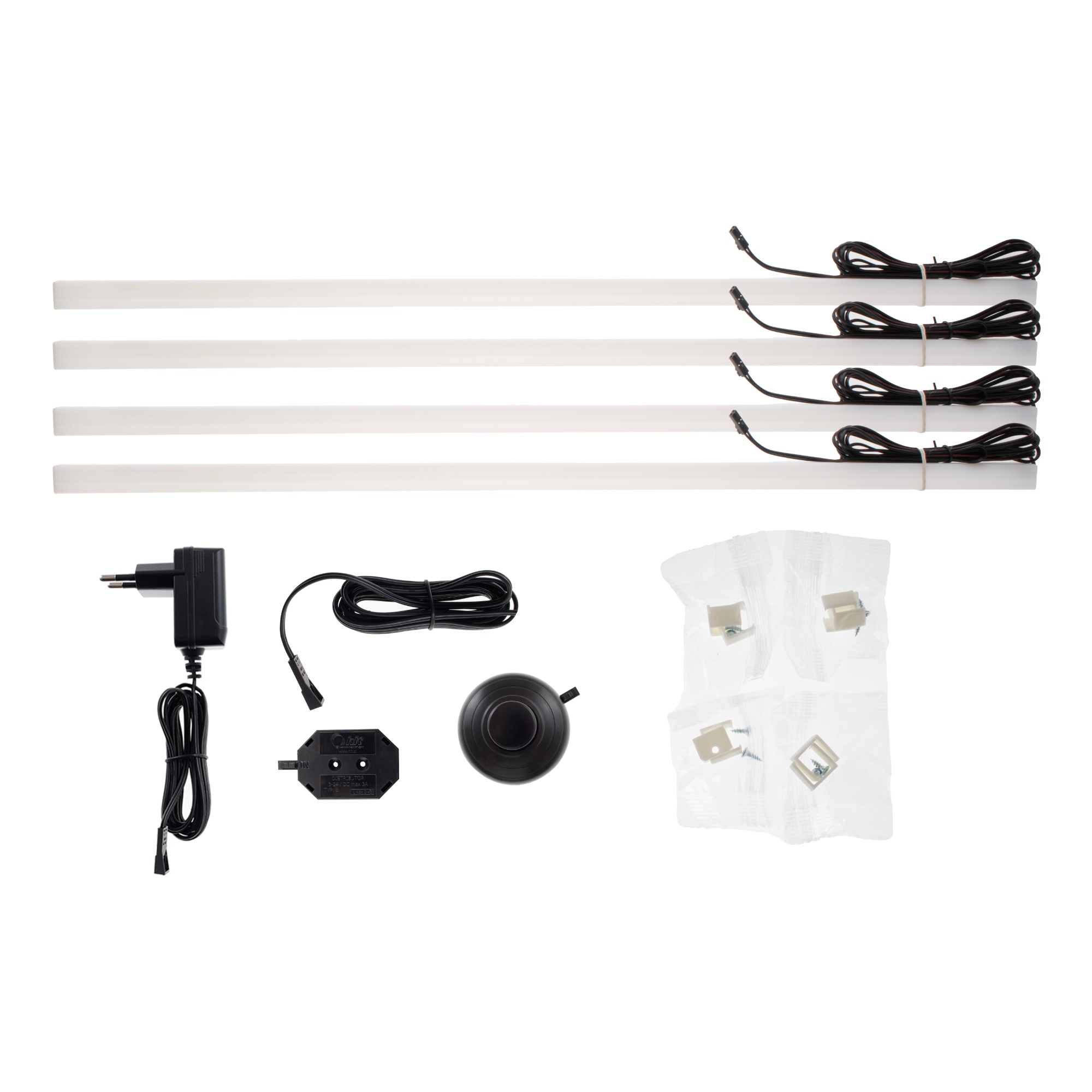 Chcete nechať predmety vystavené vo vitríne PONTYPOOL vyniknúť naplno? Zaobstarajte si k nej toto LED osvetlenie svietiace teplým bielym svetlom. Súprava obsahuje 4 ks, z ktorých každý má dĺžku 55 cm.