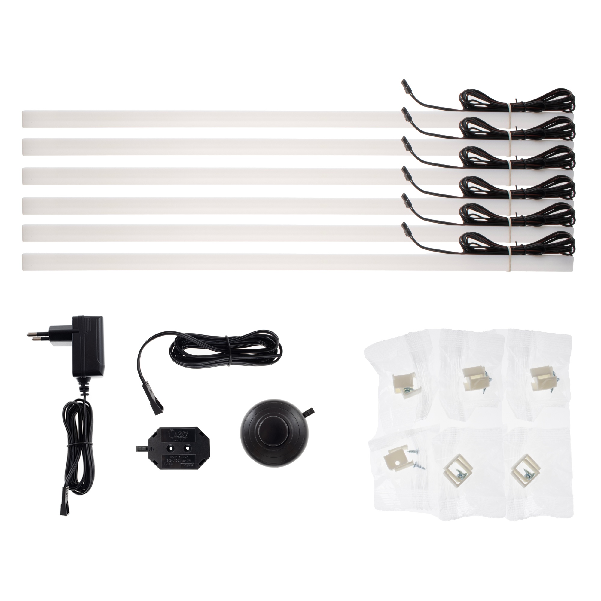 Chcete nechať predmety vystavené v knižnici PONTYPOOL vyniknúť naplno? Zaobstarajte si k nej toto LED osvetlenie svietiace teplým bielym svetlom. Súprava obsahuje 6 ks, z ktorých každý má dĺžku 43 cm.