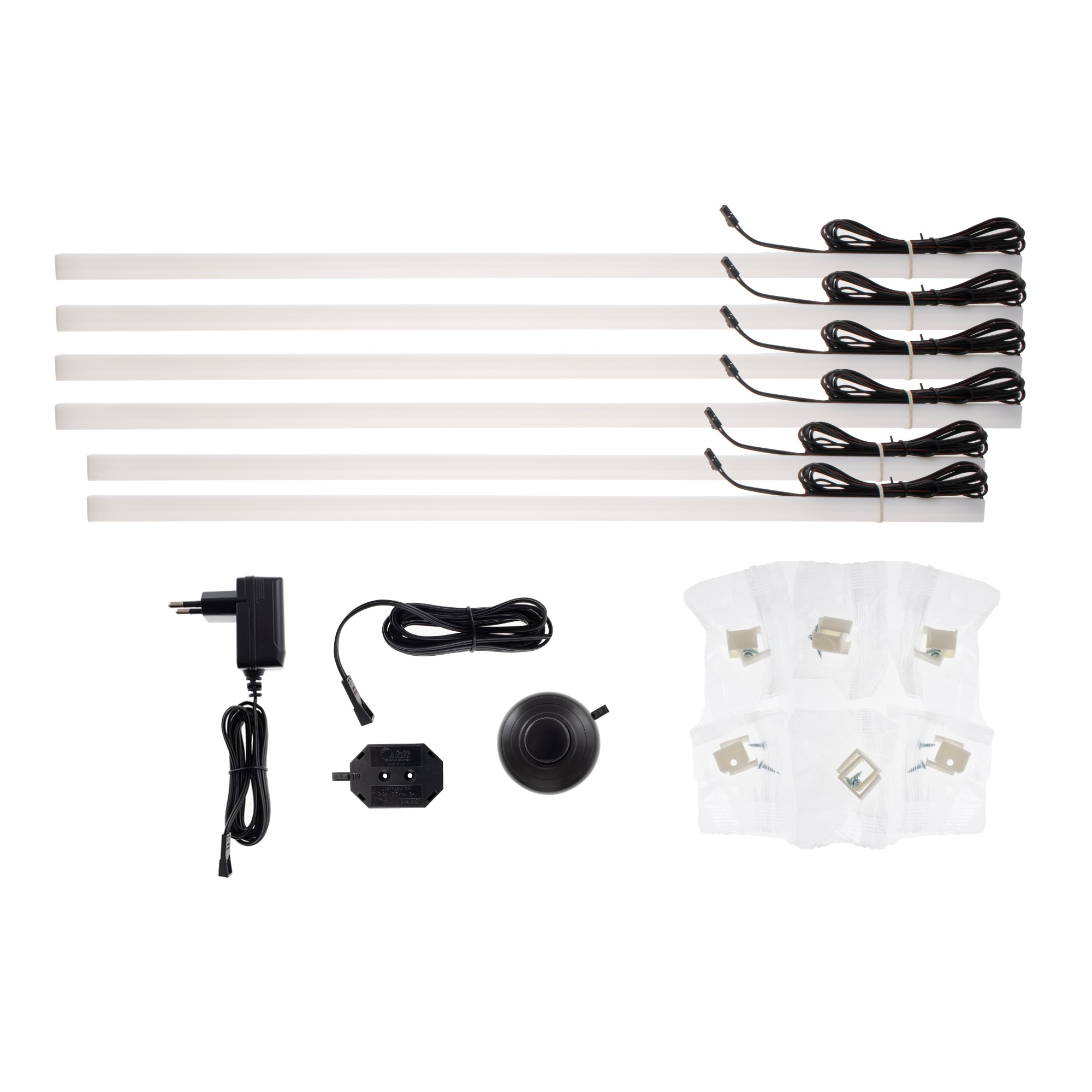 Chcete nechať predmety vystavené v príborníku PONTYPOOL vyniknúť naplno? Zaobstarajte si k nemu toto LED osvetlenie svietiace teplým bielym svetlom. Súprava obsahuje 6 ks, z ktorých 4 majú dĺžku 60 cm a 2 majú dĺžku 53 cm.