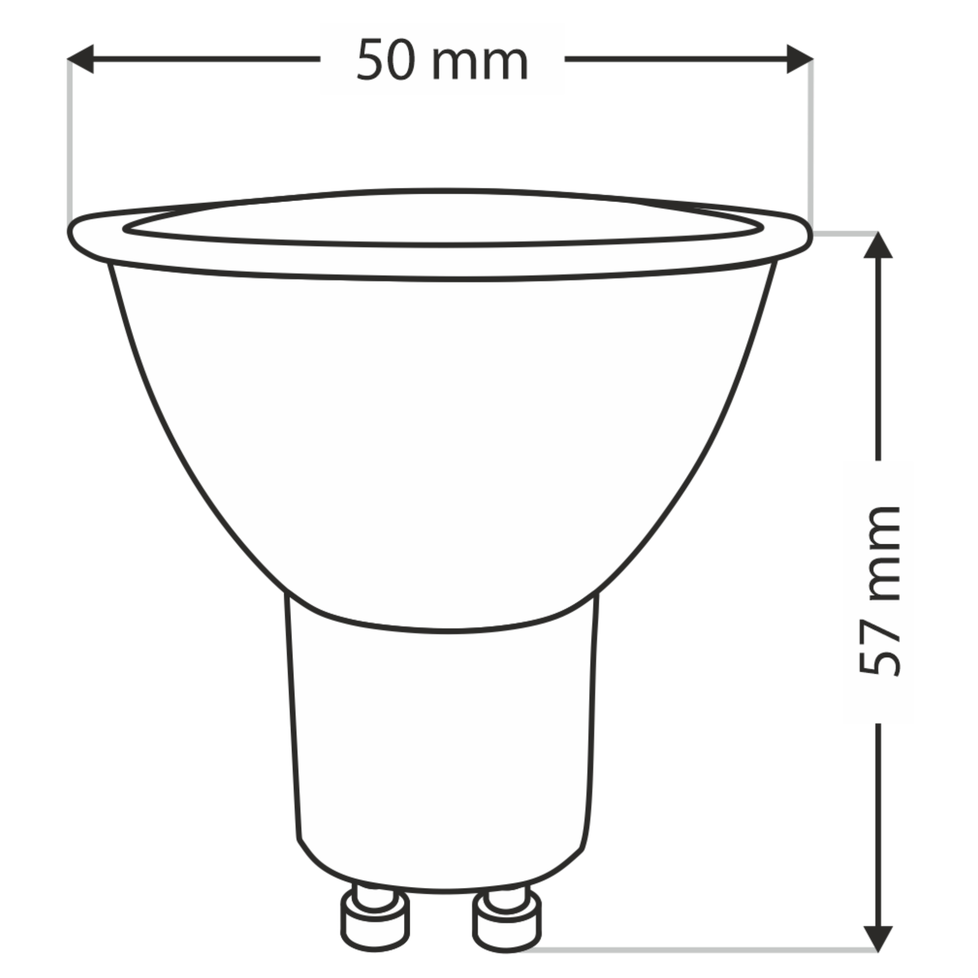 Disponuje päticou GU10 s maximálnym príkonom 7W. Má svetelný tok 630 lúmenov s teplotou svetla 2700 Kelvinov, ktorá sa označuje ako teplá biela. Teplá biela vám v miestnosti vytvorí útulnú atmosféru a nebude dráždivá pre vaše oči. Je vhodná do obývacej izby, spálne či jedálne.