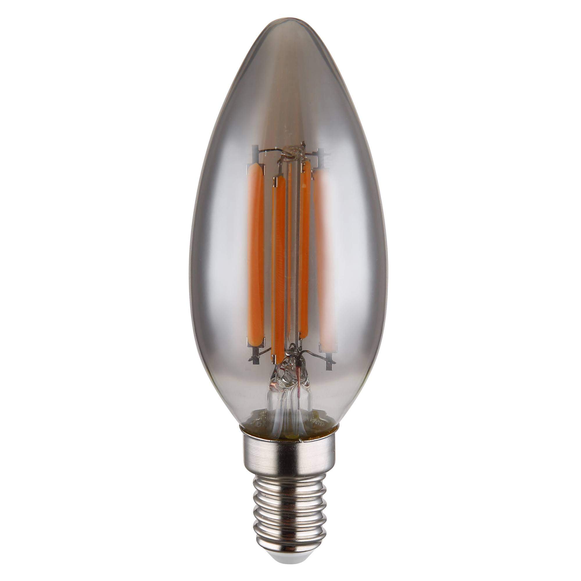 LED žiarovka 10588S má klasický sviečkový tvar s dymovým sklom, ktoré jej dodáva jemný retro nádych. Bude skvelým doplnkom do dizajnových svietidiel.