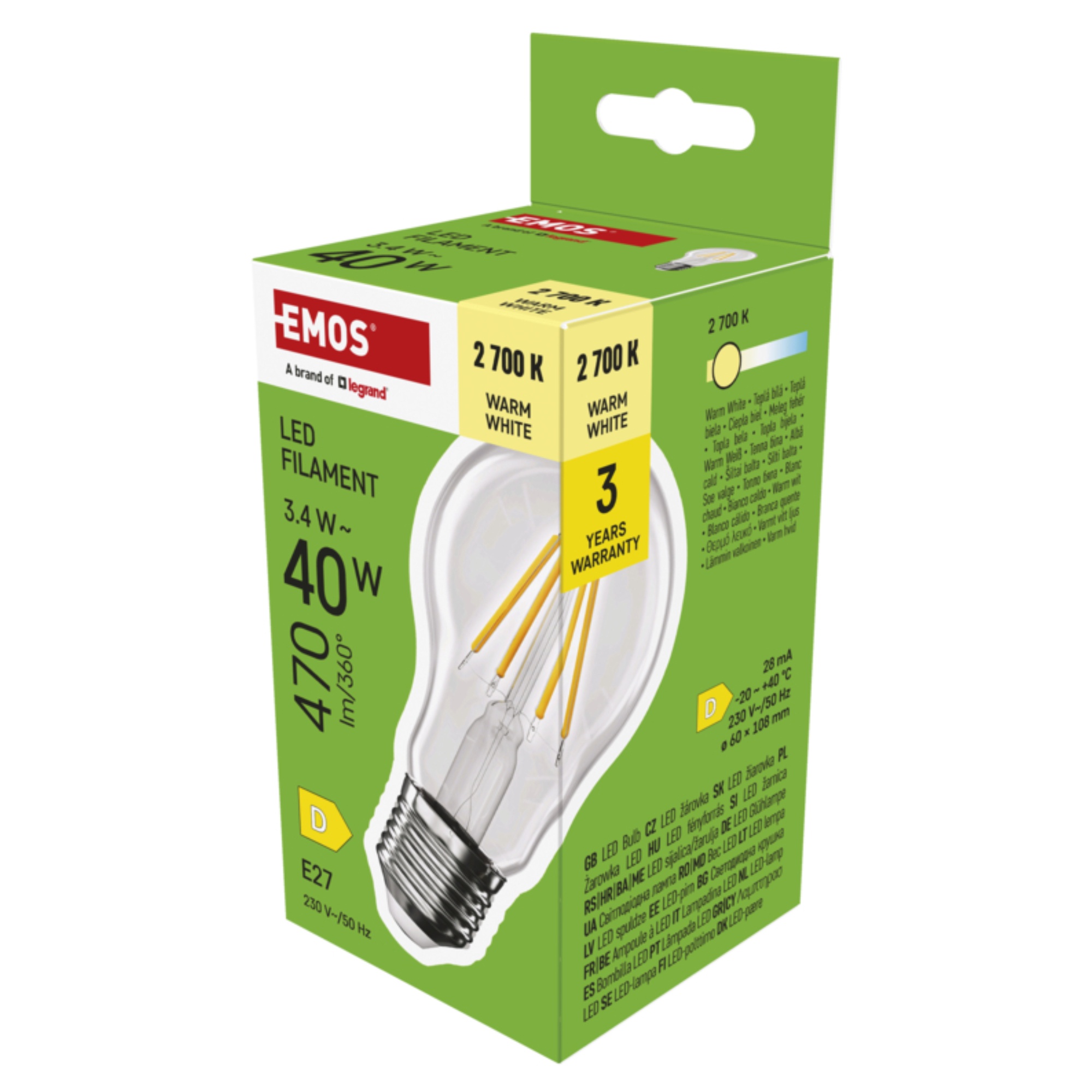 Disponuje objímkou E27 s maximálnym príkonom 3,4 W. Má svetelný tok 470 lúmenov s teplotou svetla 2700 Kelvinov, ktorá sa označuje ako teplá biela. Teplá biela vám v miestnosti vytvorí útulnú atmosféru a nebude iritujúca na vaše oči. Výhodnou vlastnosťou je jej životnosť, ktorá poskytuje až 25 000 hodín svietenia.