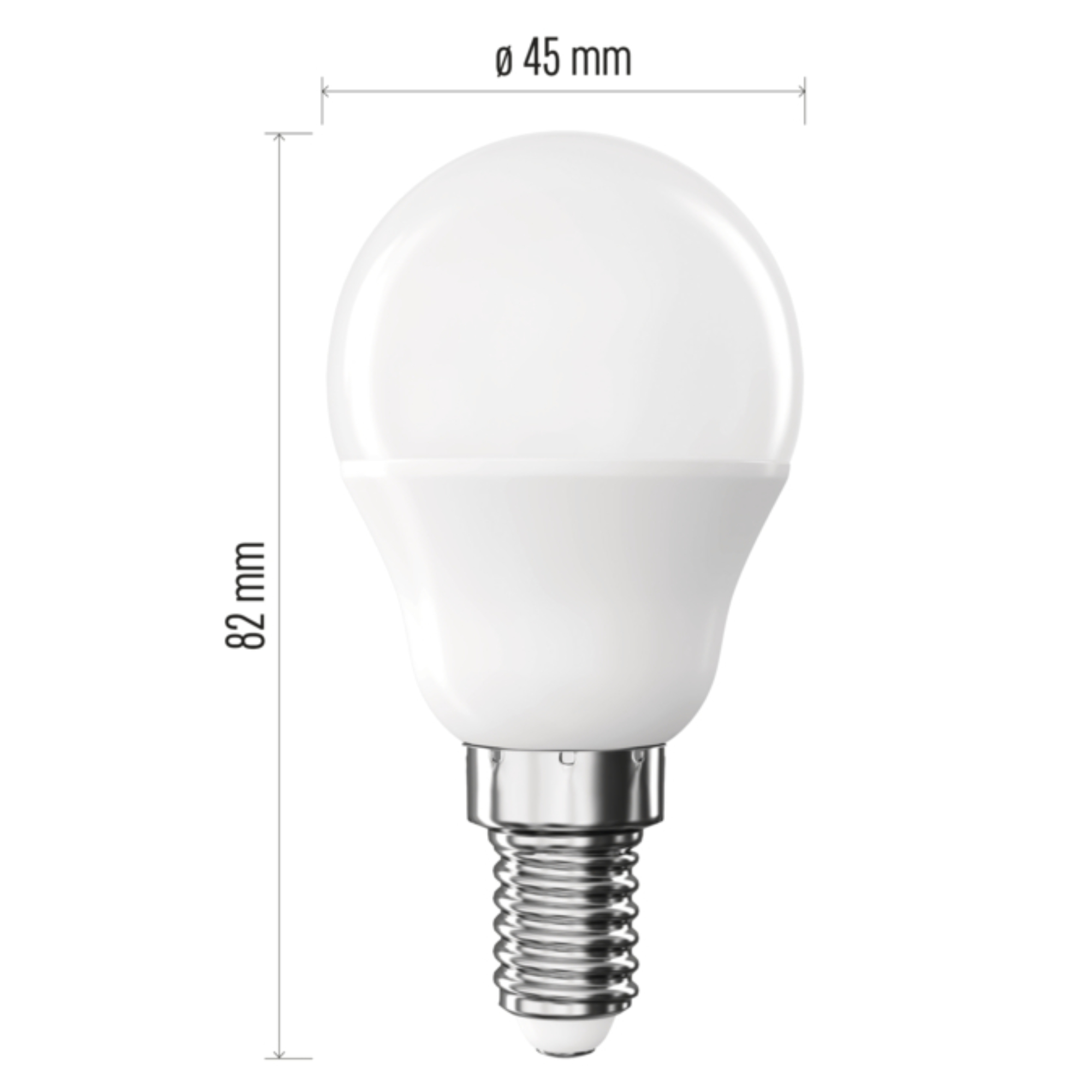 Disponuje objímkou E14 s maximálnym príkonom 4,2 W. Má svetelný tok 470 lúmenov s teplotou svetla 2700 Kelvinov, ktorá sa označuje ako teplá biela. Teplá biela vám v miestnosti vytvorí útulnú atmosféru a nebude iritujúca na vaše oči. Výhodnou vlastnosťou žiarovky je dlhá životnosť, ktorá poskytuje až 30 000 hodín svietenia.