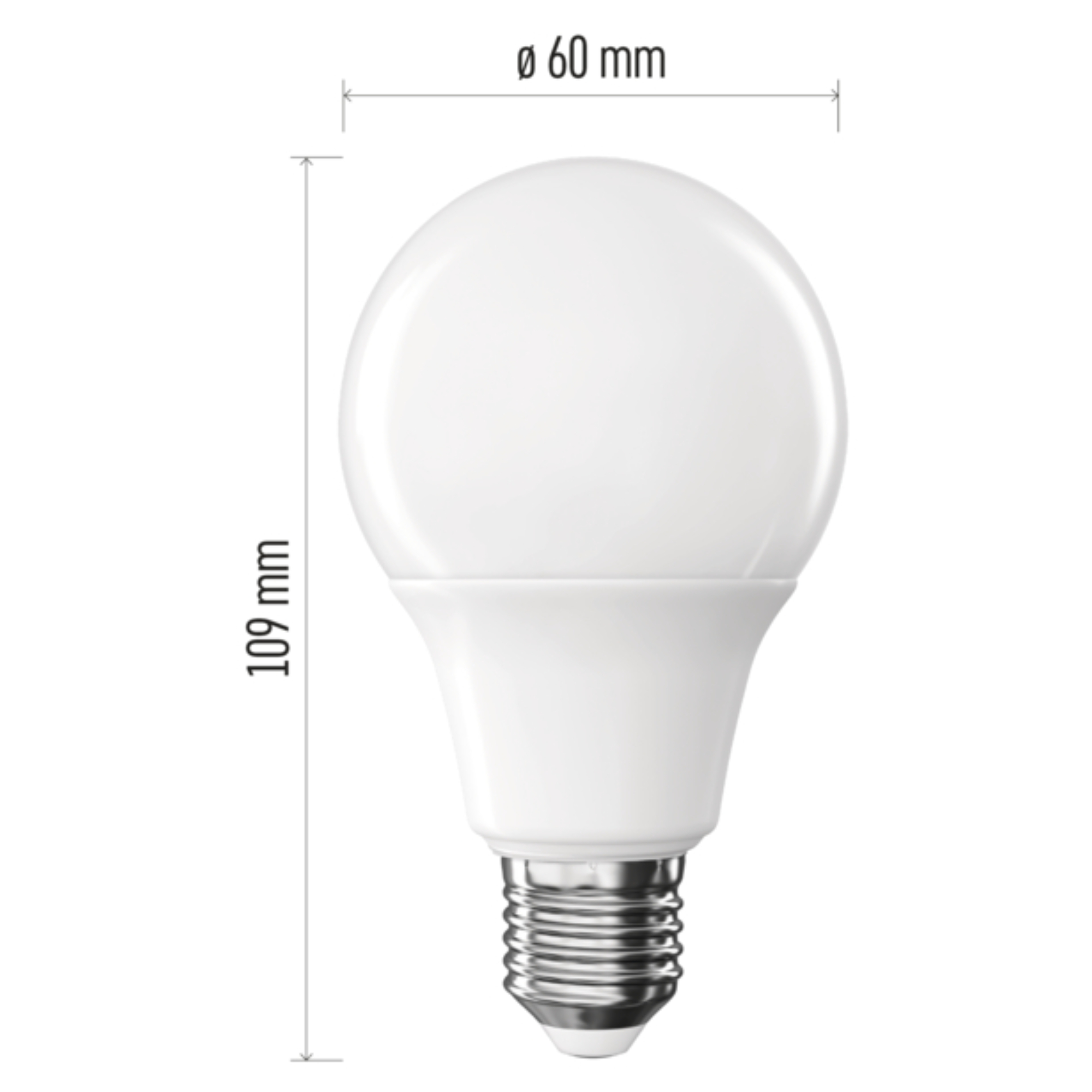 Disponuje objímkou E27 s maximálnym príkonom 9,5 W. Má svetelný tok 1055 lúmenov s teplotou svetla 2700 Kelvinov, ktorá sa označuje ako teplá biela. Teplá biela vám v miestnosti vytvorí útulnú atmosféru a nebude iritujúca na vaše oči. Výhodnou vlastnosťou žiarovky je dlhá životnosť, ktorá poskytuje až 30 000 hodín svietenia.