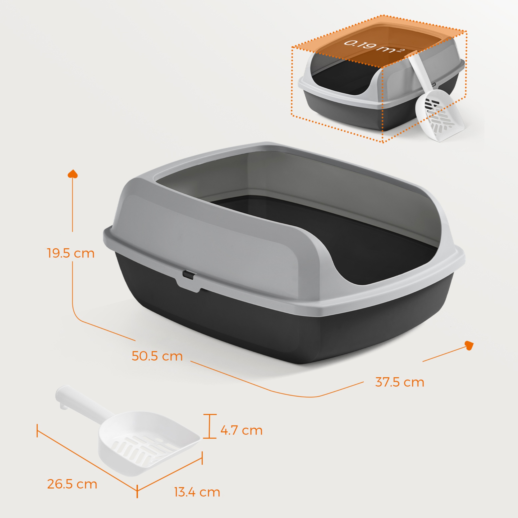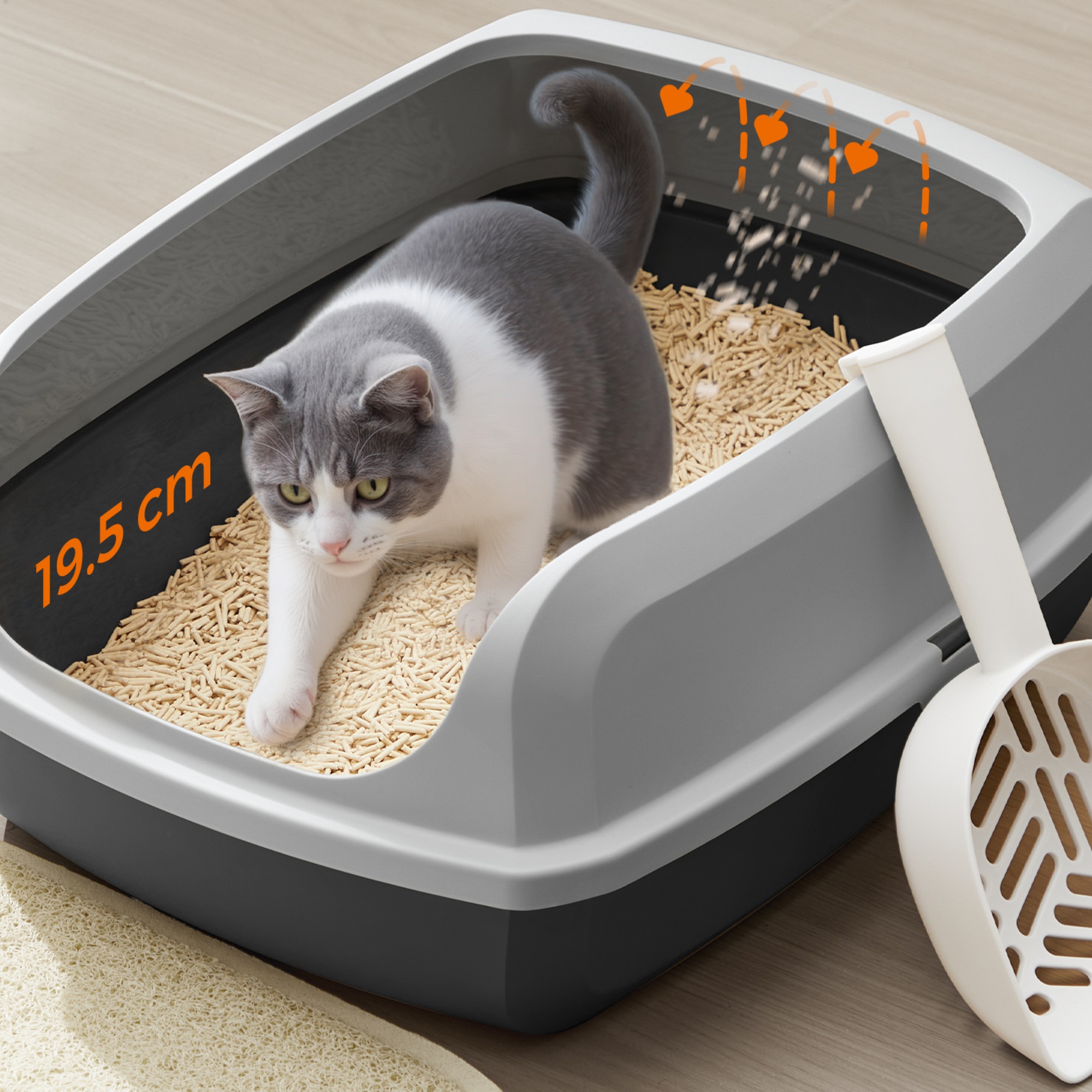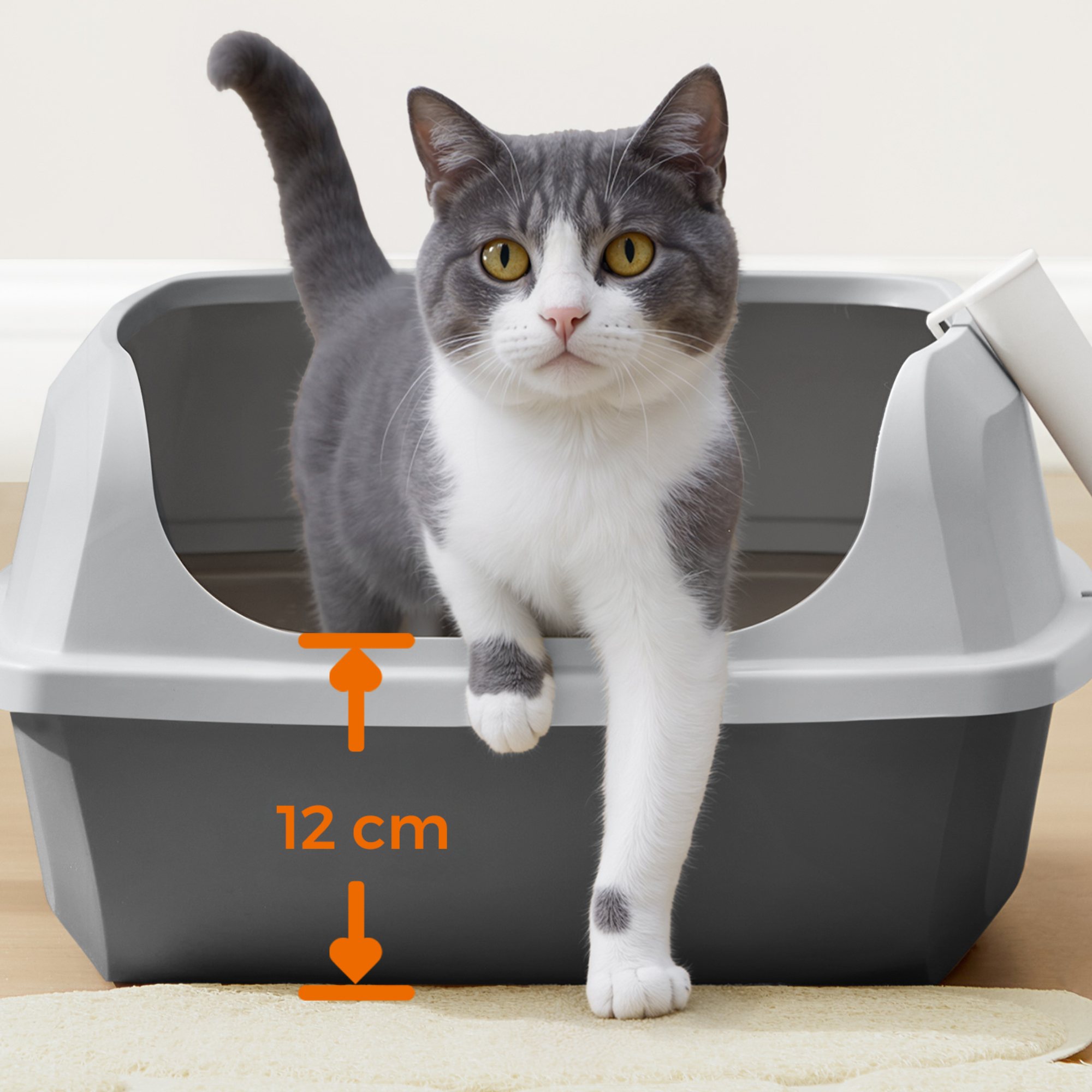 Spodná časť na umiestnenie steliva je vyhotovená v hladkom prevedení bez zbytočných okrajov pre jednoduché čistenie. Súčasťou je tiež väčšia lopatka pre rýchlejšie upratovanie. Zaoblená vrchná časť poskytuje ochranu pri hrabaní, ktorá zabraňuje vypadávaniu steliva mimo toalety. Vďaka nízkemu vstupu je vhodná pre mačiatka aj staršie mačky.